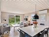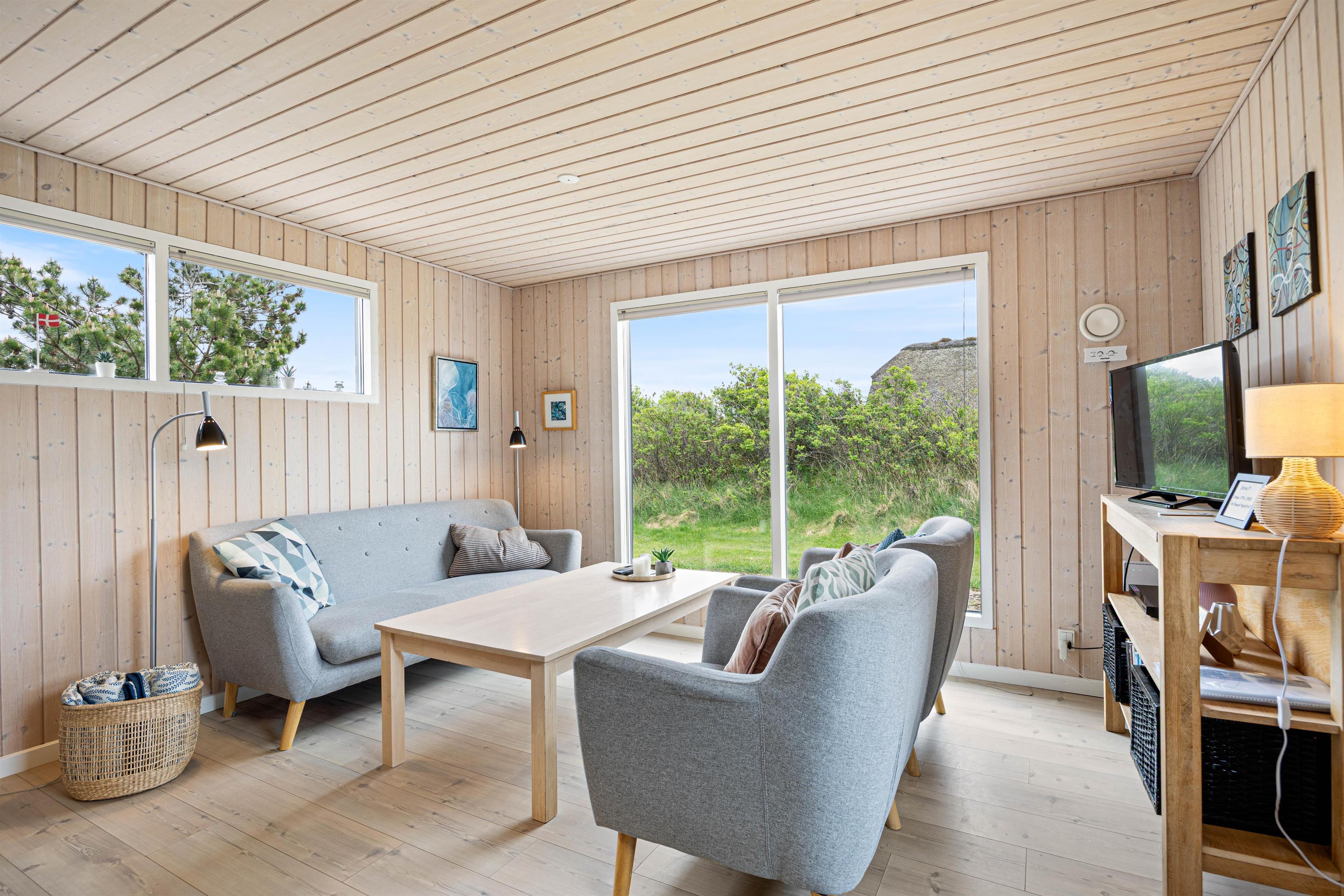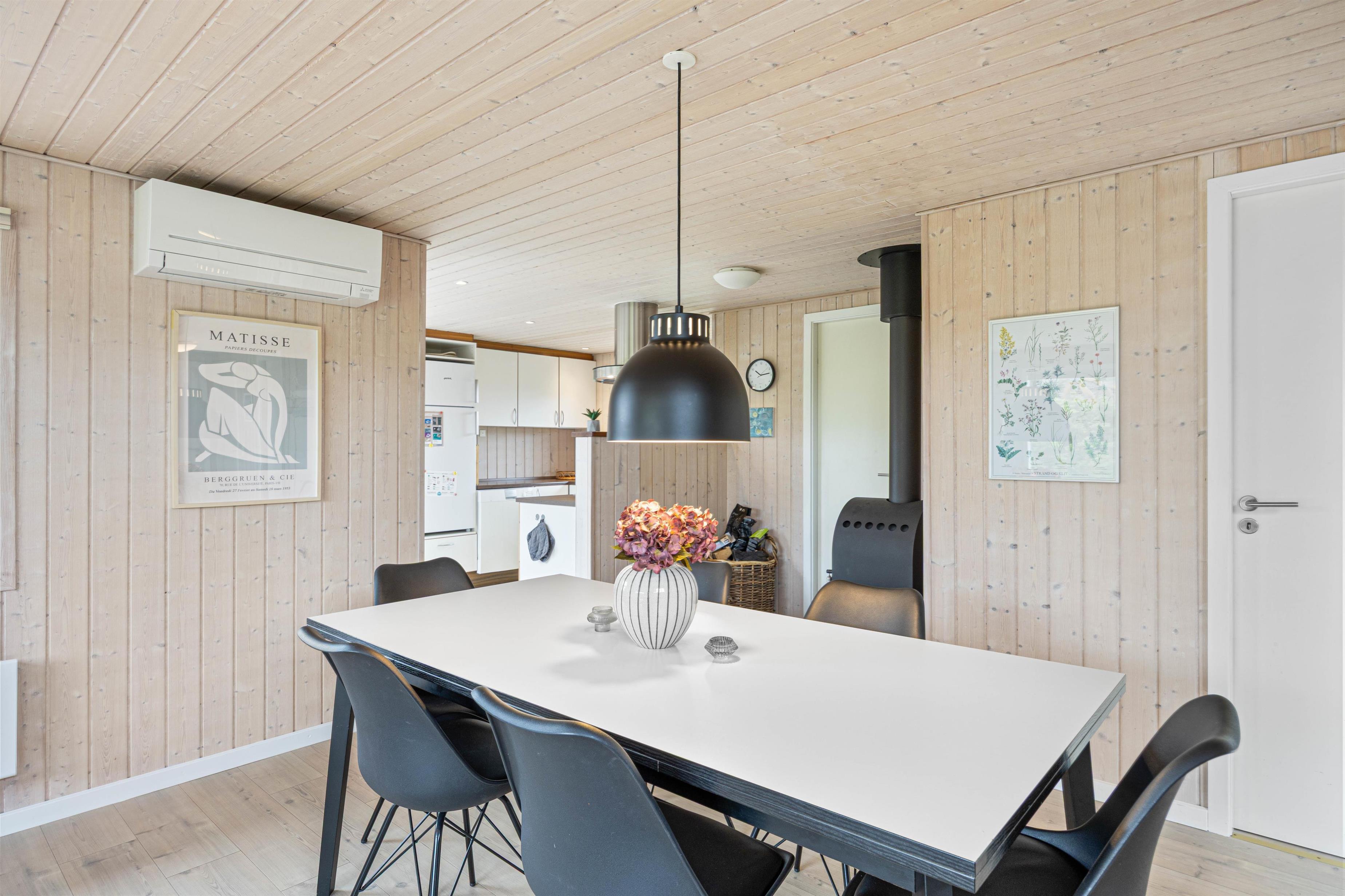 På Julianevej 10 er feriehusets samlingspunkt den hyggelige stue, hvor I straks møder feriestemningen med lysindfaldet gennem de mange vinduer og de naturlige farver. Her kan I slænge jer i sofaen, se en dvd sammen og nyde udsigten over naturgrunden. Den knitrende ild i brændeovnen bidrager med varme og hygge. Der er en energibesparende varmepumpe, som hurtigt og effektivt sørger for et behageligt indeklima og en god temperatur.
