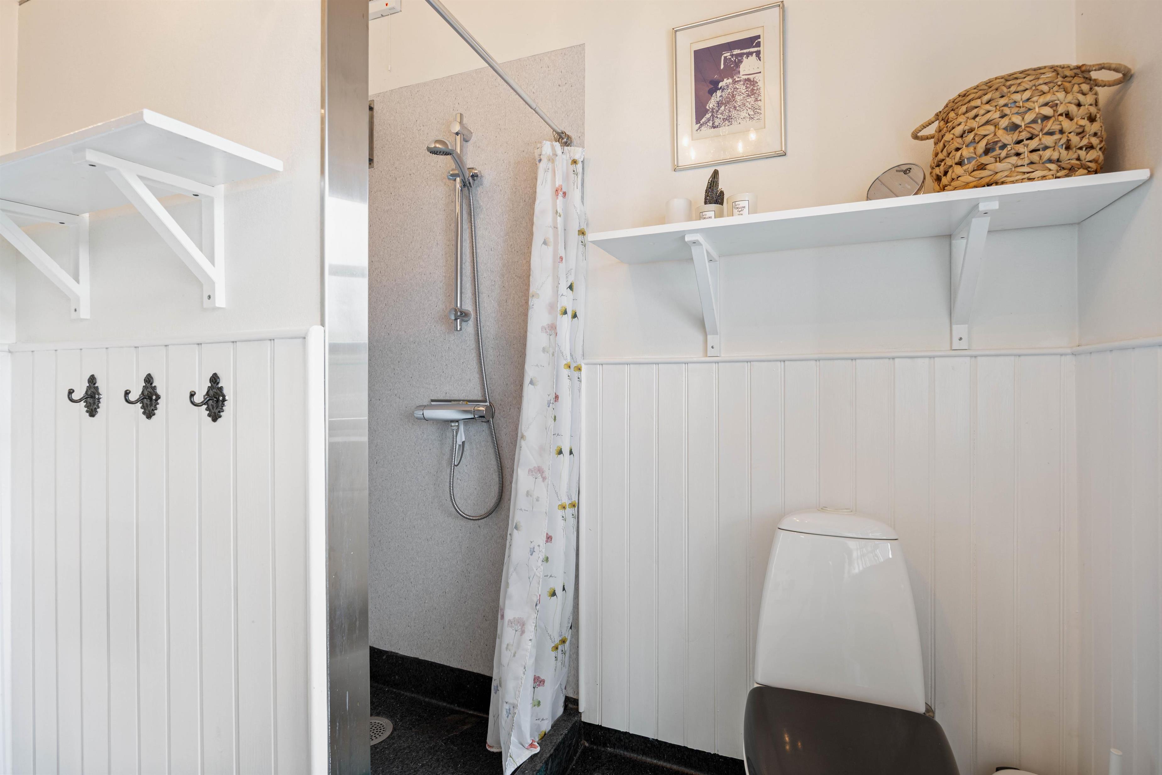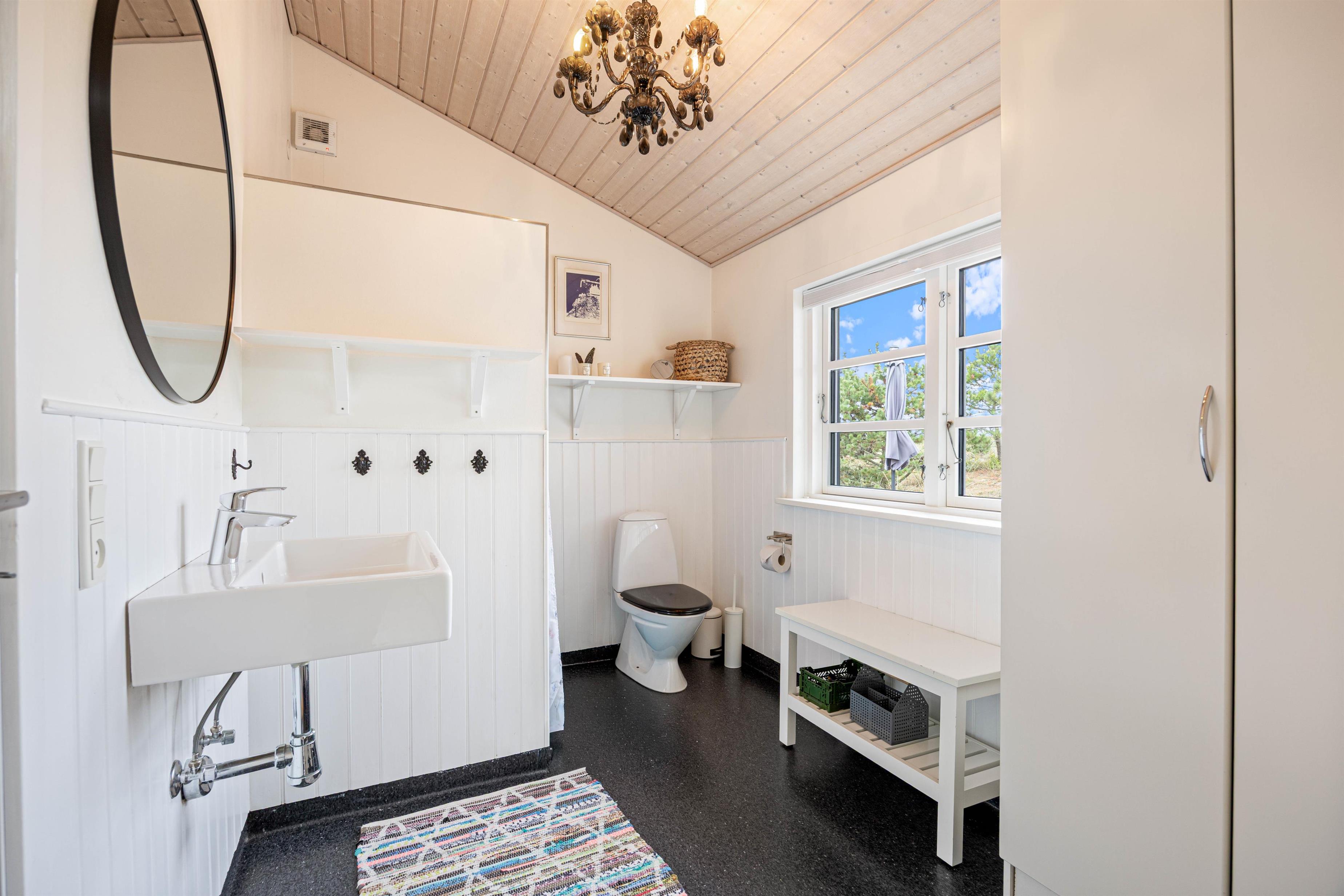 Omkring sommerhuset er der flere gode terrasser, så du har god mulighed for at sidde ude og nyde solen, den friske luft, og den smukke naturgrund. En del af terrasserne er afskærmede, så du nemt kan finde en plads med læ til en hyggelig grillaften.