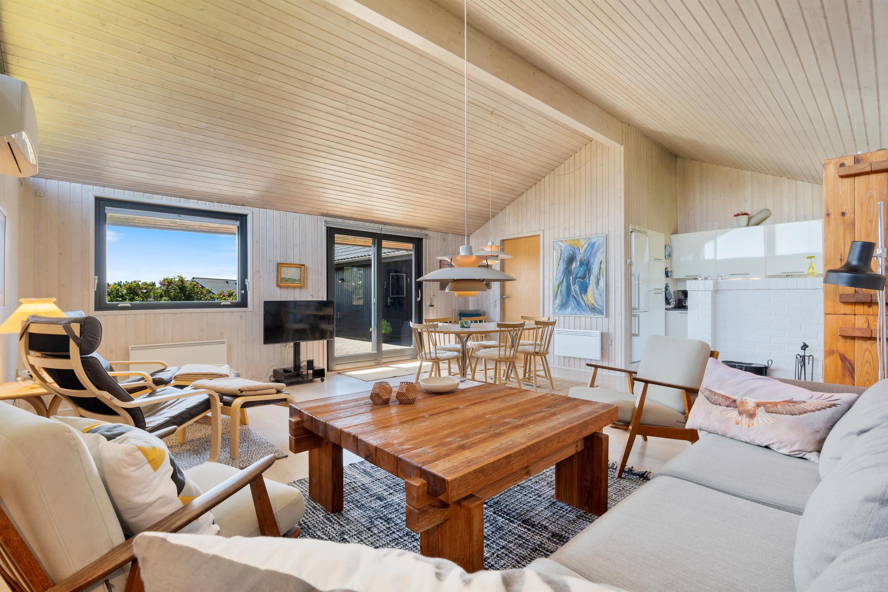 Fra hele sommerhuset har man udsigten til den storslåede natur i Bjerregaard, hvor der kun er få minutters gang til havet med den skønne badestrand, som indbyder til hyggelige stunder med familien på en varm sommerdag. Det brusende Vesterhav er dog et besøg værd året rundt, så hvis vejret ikke viser sig fra den bedste side, kan det alligevel klart anbefales at gå en tur til vandet.