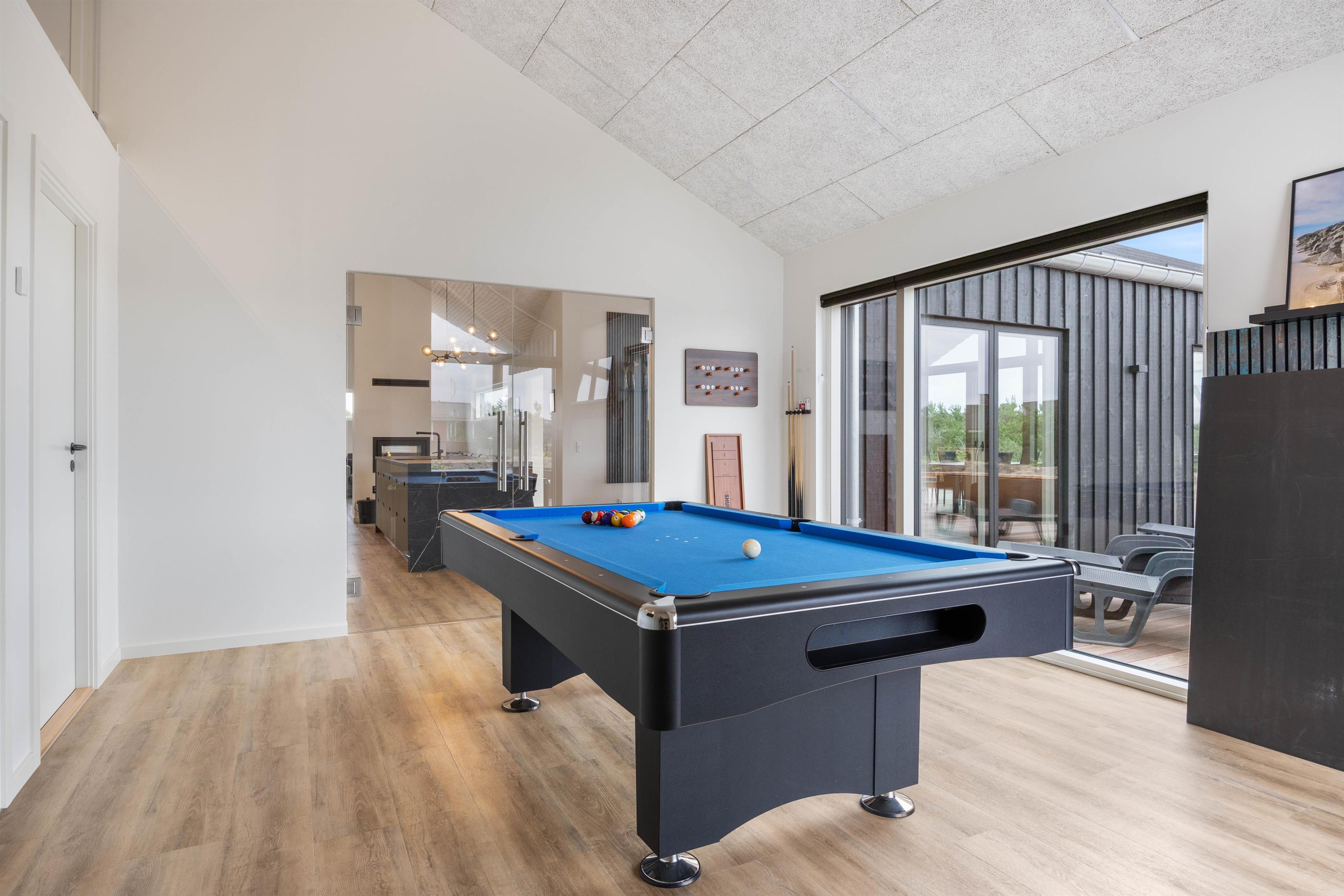 Et af sommerhusets highlights er det fine aktivitetsrum, hvor hele familien kan hygge sig og have det sjovt. I aktivitetsrummet er der både billard og bordtennis, som I kan udfordre hinanden i.