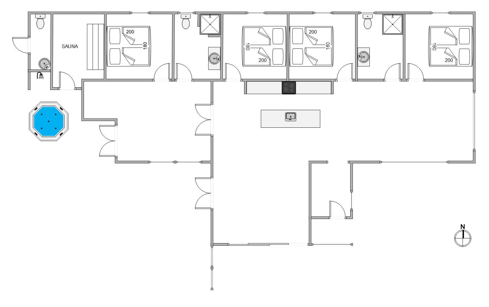 Efter en sjov og oplevelsesrig feriedag kan I fordele jer på de 4 rummelige soveværelser, der alle er indrettet med dobbeltsenge. Her kan I samle ny energi til morgendagens aktiviteter. Sommerhuset har 2 badeværelser med gulvvarme, og derudover finder I både vaskemaskine og tørretumbler i feriehuset.