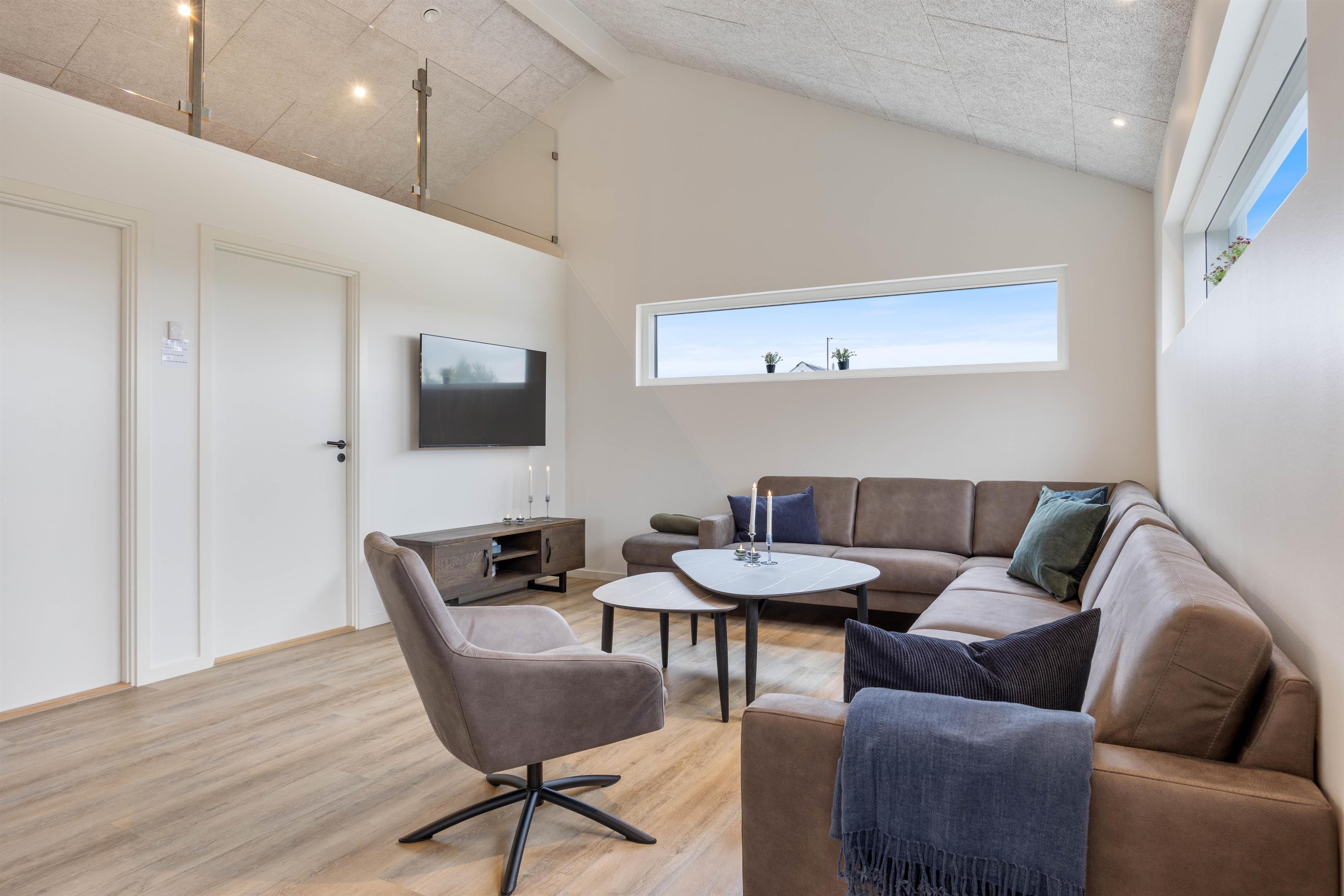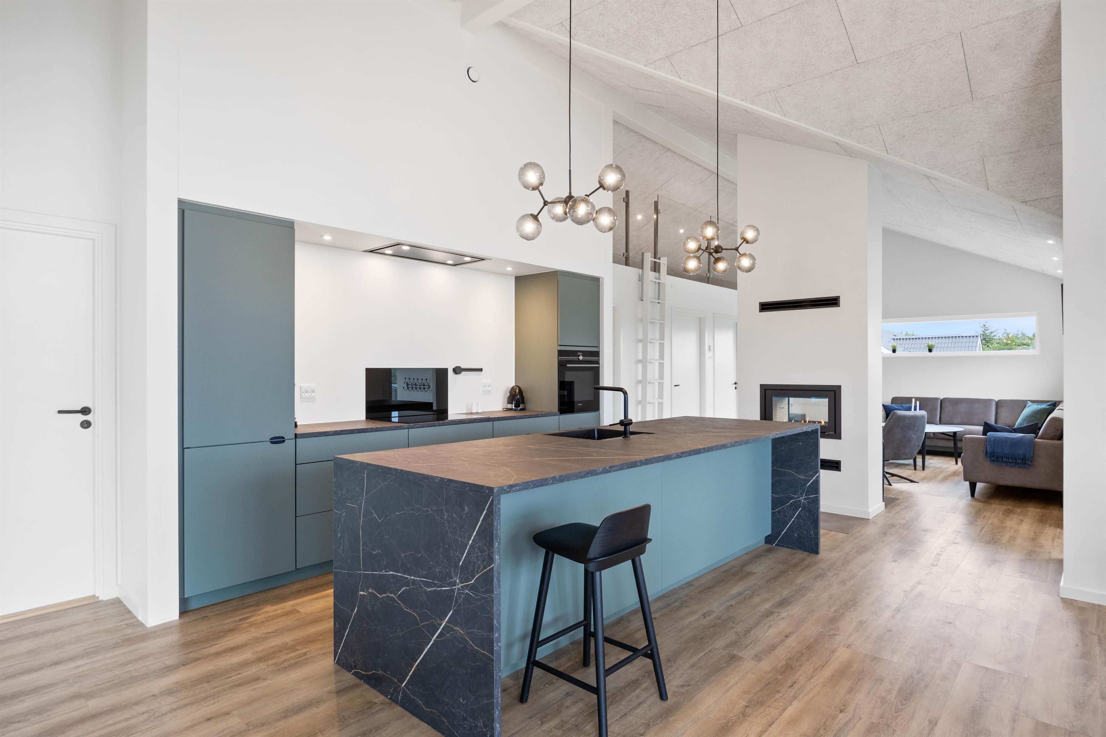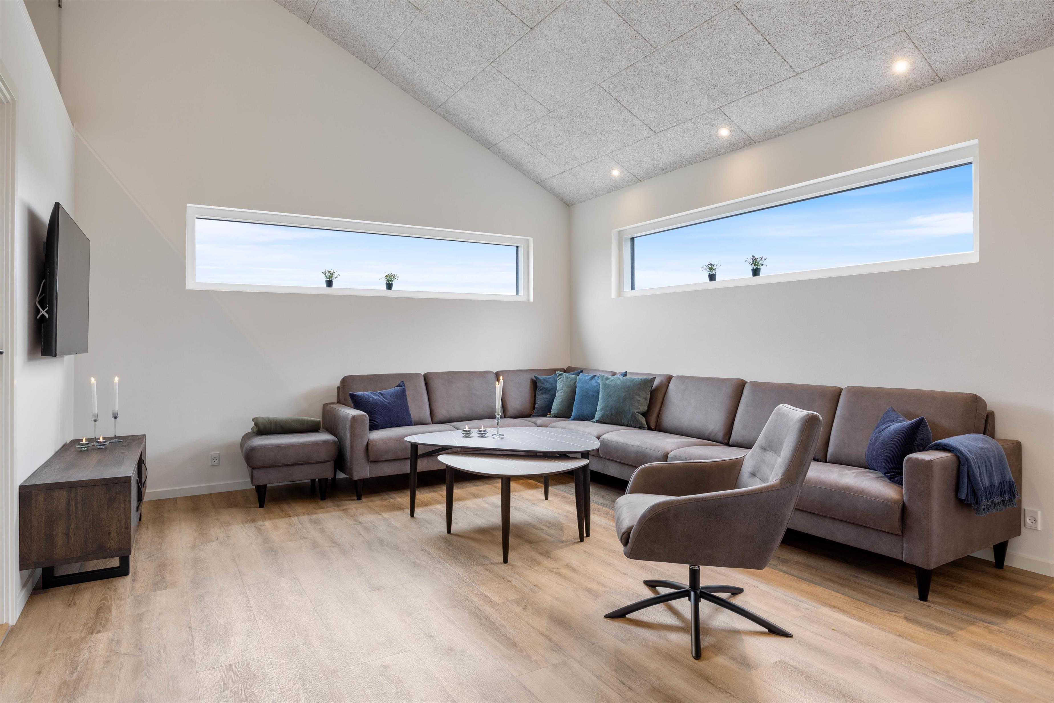 De store vinduespartier i køkkenalrummet giver et fantastisk lysindfald, hvilket skaber en lys og indbydende atmosfære, hvori I hurtigt vil føle jer godt tilpasse.