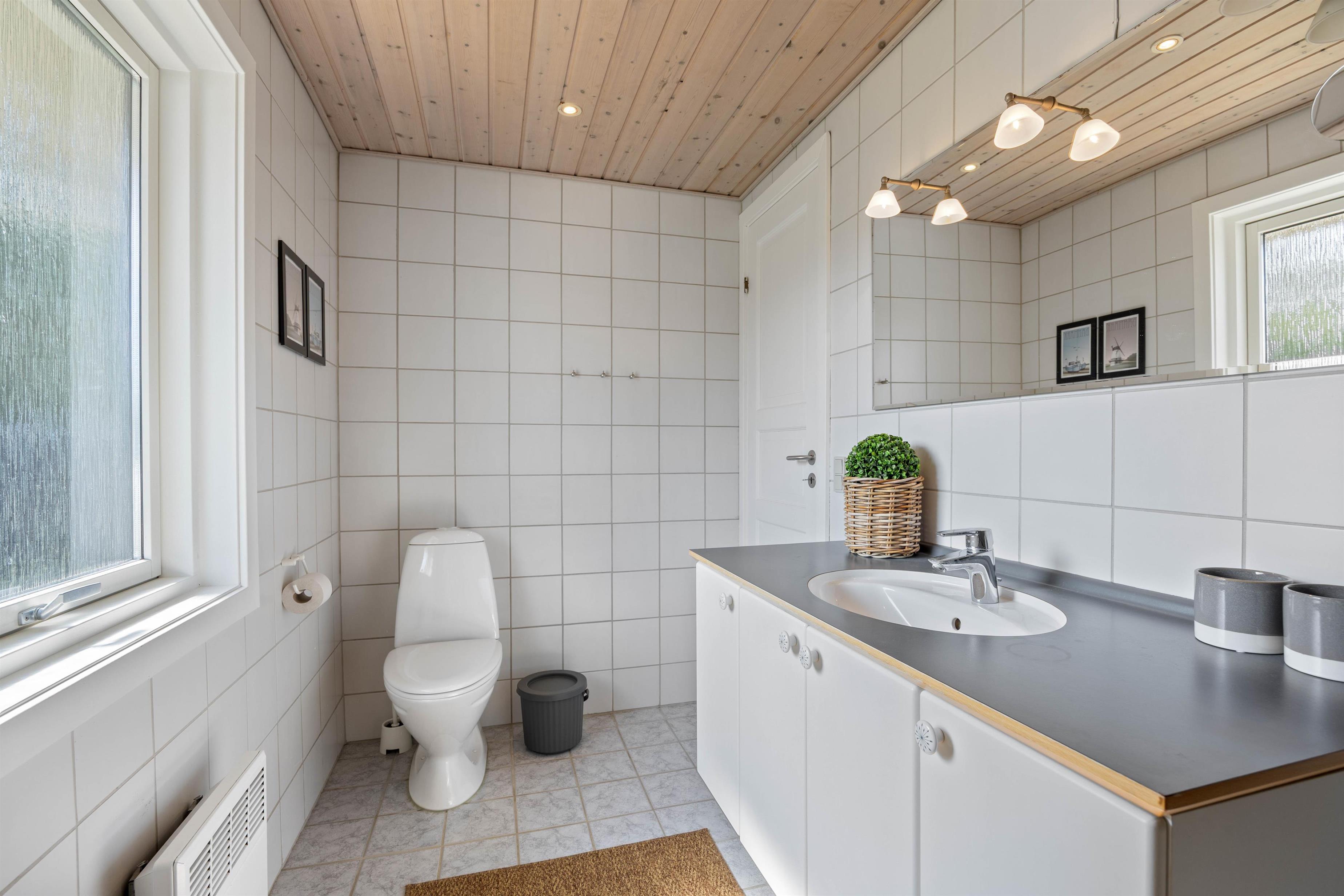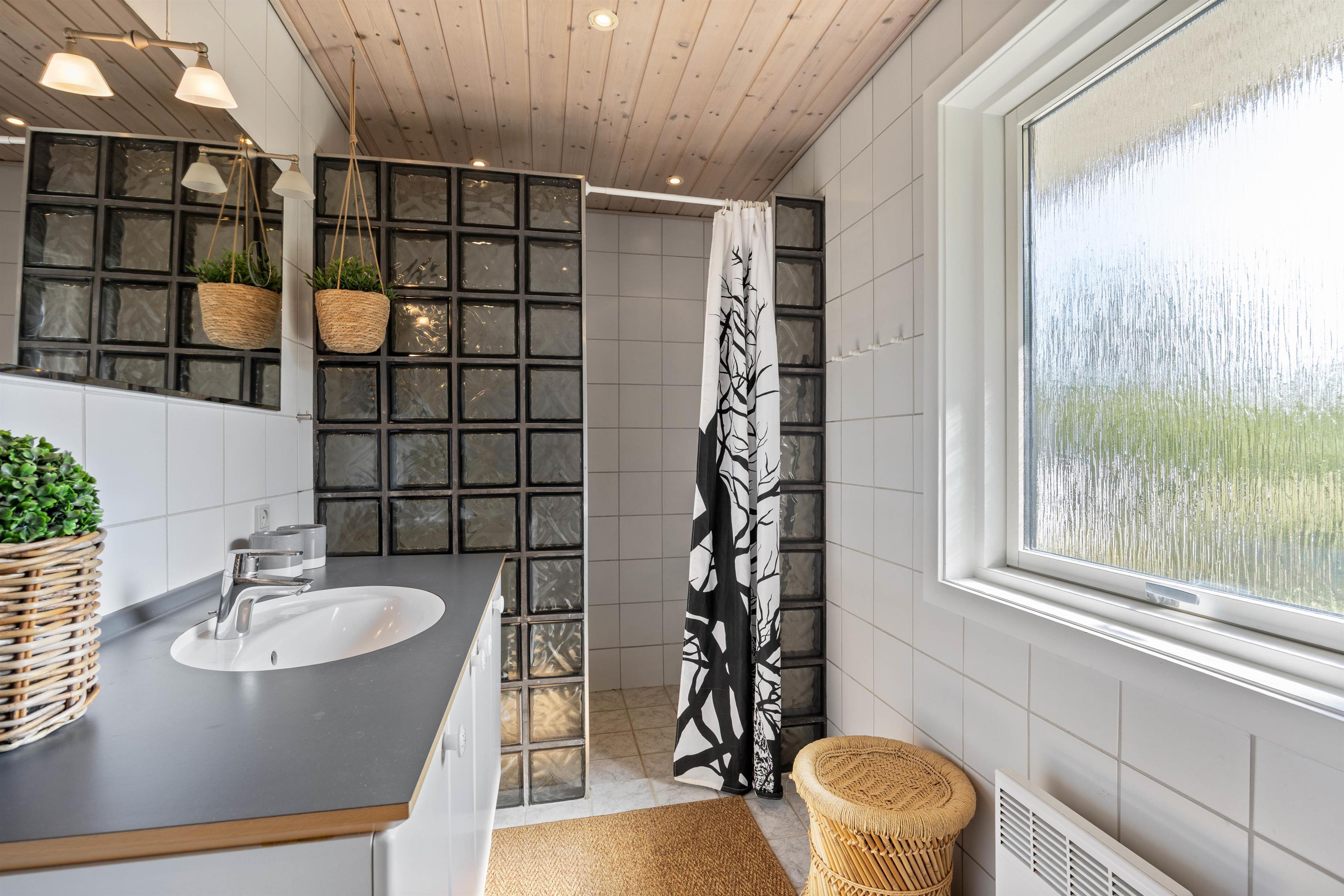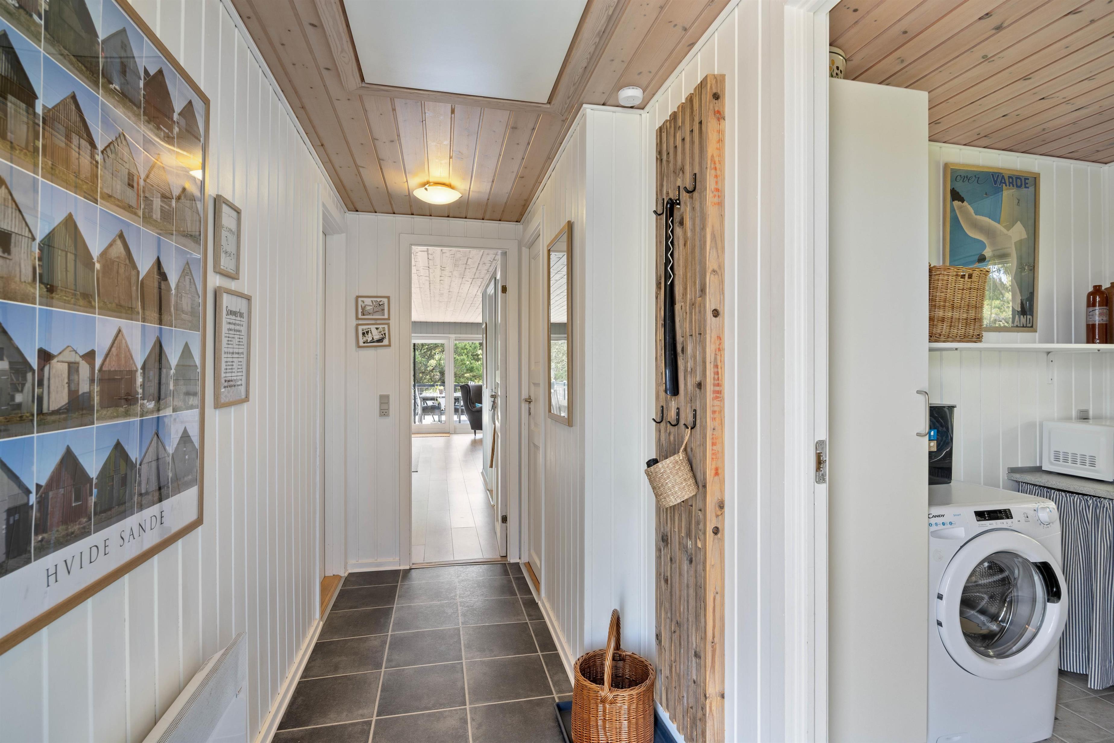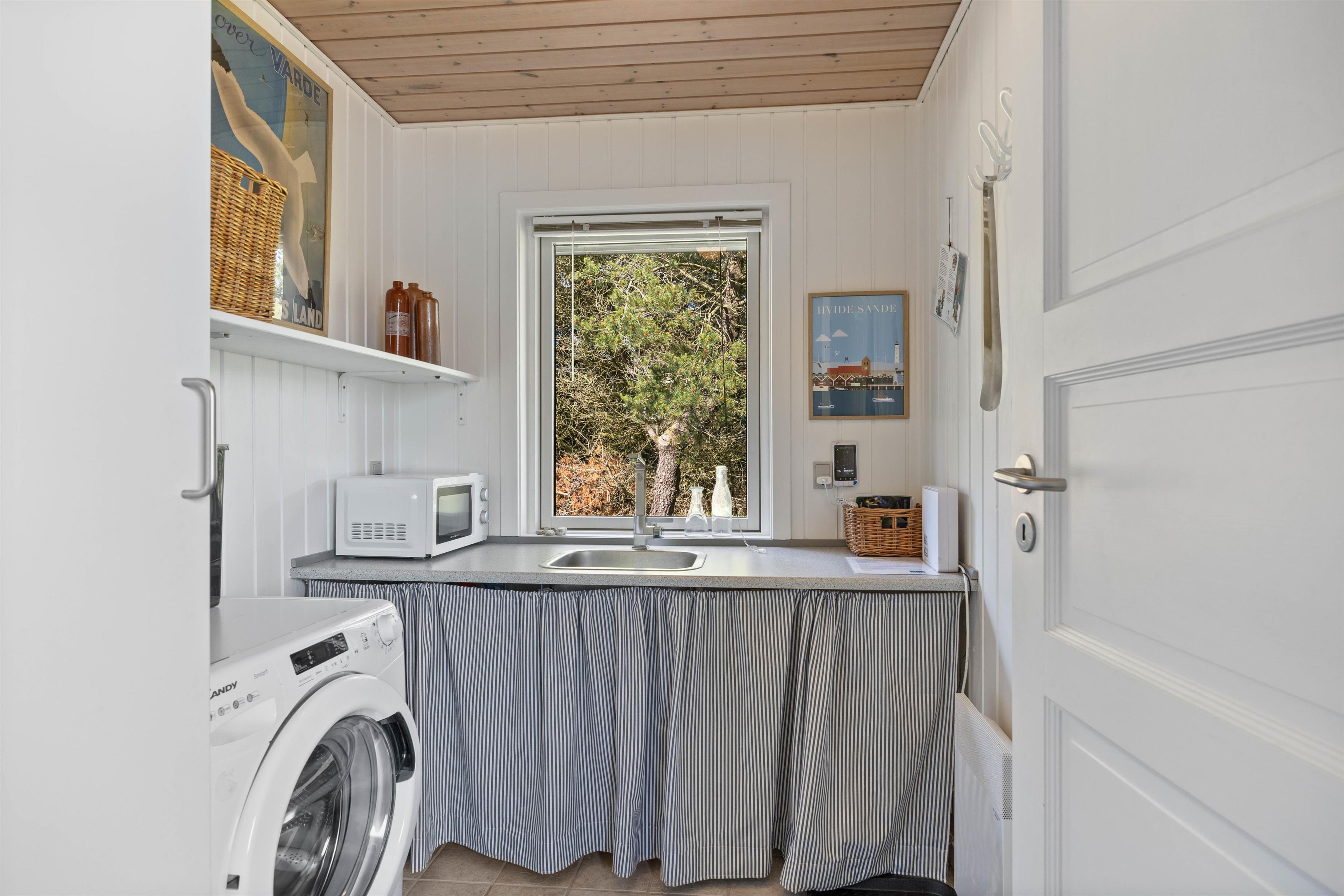 Der er gulvvarme på badeværelset, og sommerhuset råder også over en vaskemaskine.