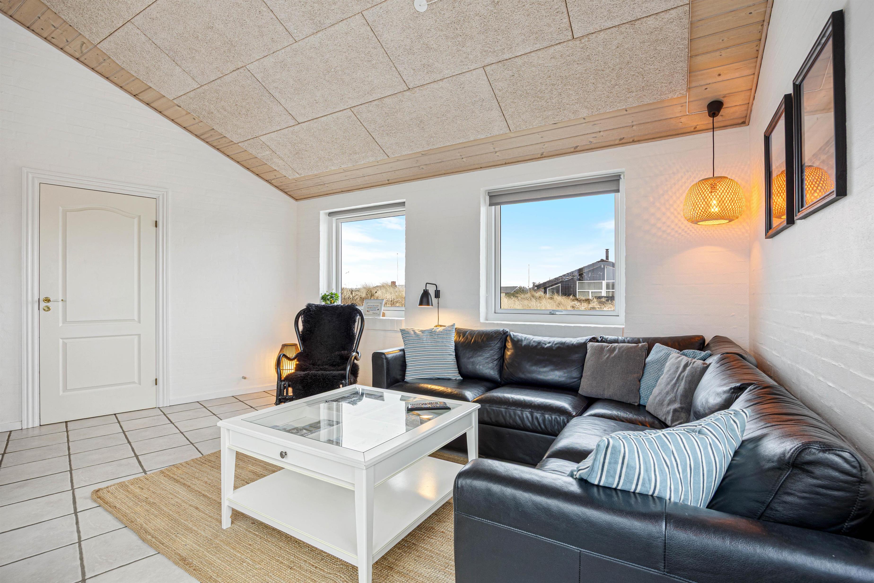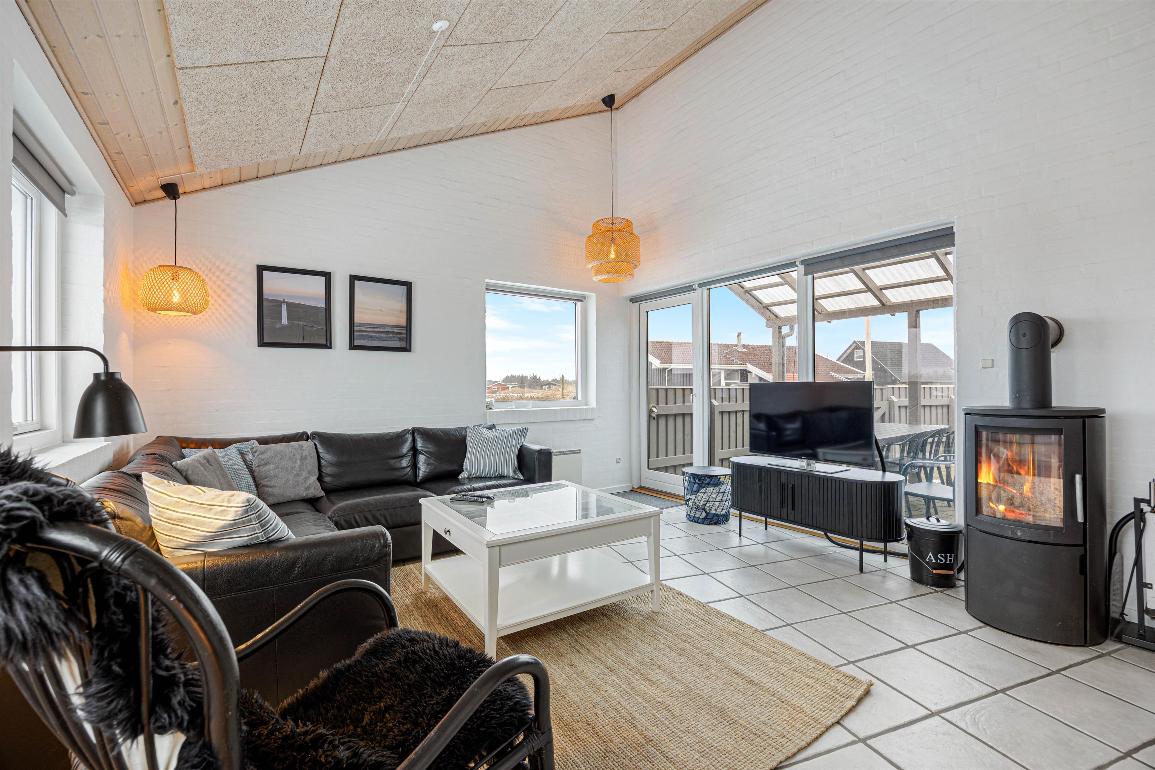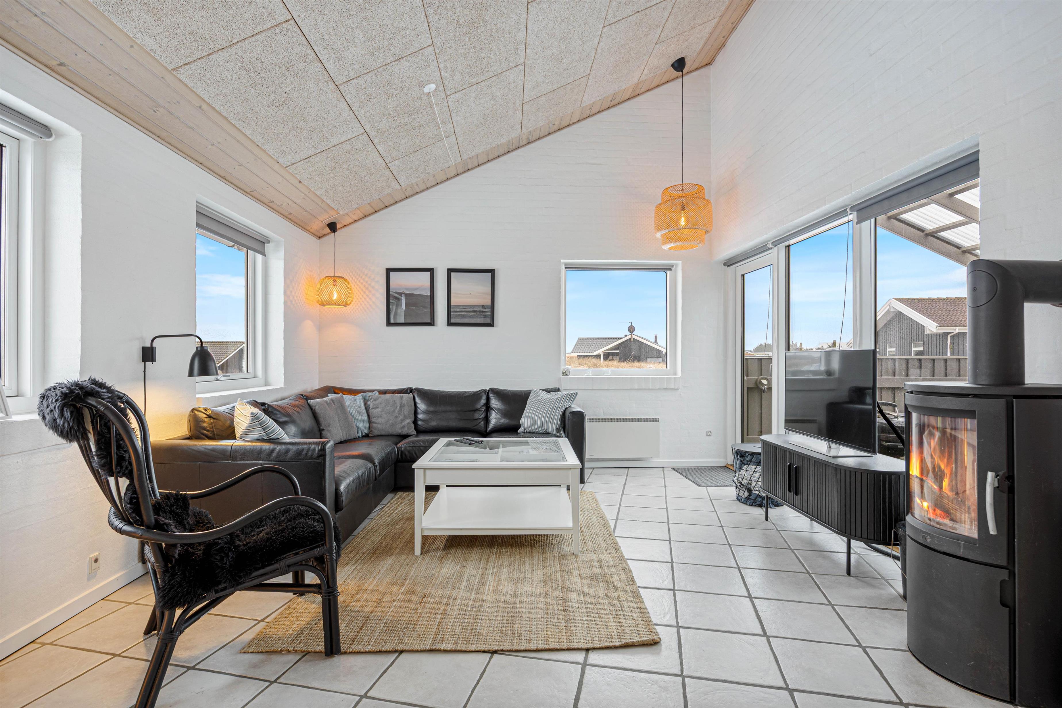 Èt af de steder, der skal samles på ferieminder, er i det åbne alrum, der ligger i forbindelse med stuen. Her kan hele flokken samles, uanset om det er til spisning eller brætspilshygge. Efter maden klarer opvaskemaskinen let opvasken, således I kan rykke i stuen og bruge tiden sammen. Her kan I slænge jer i sofaen, se film eller læse en god bog foran den knitrende brændeovn – dét er ægte ferie.