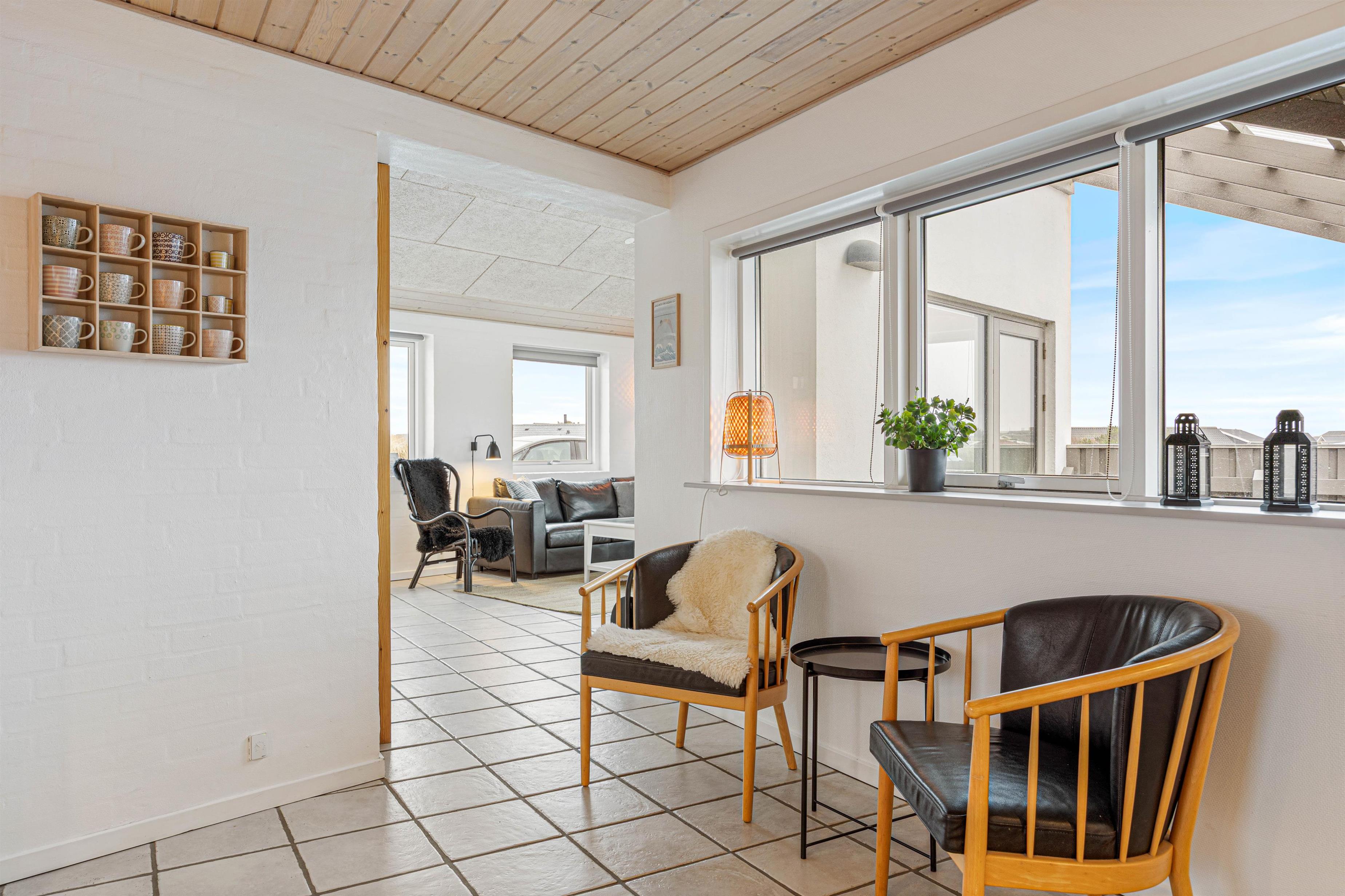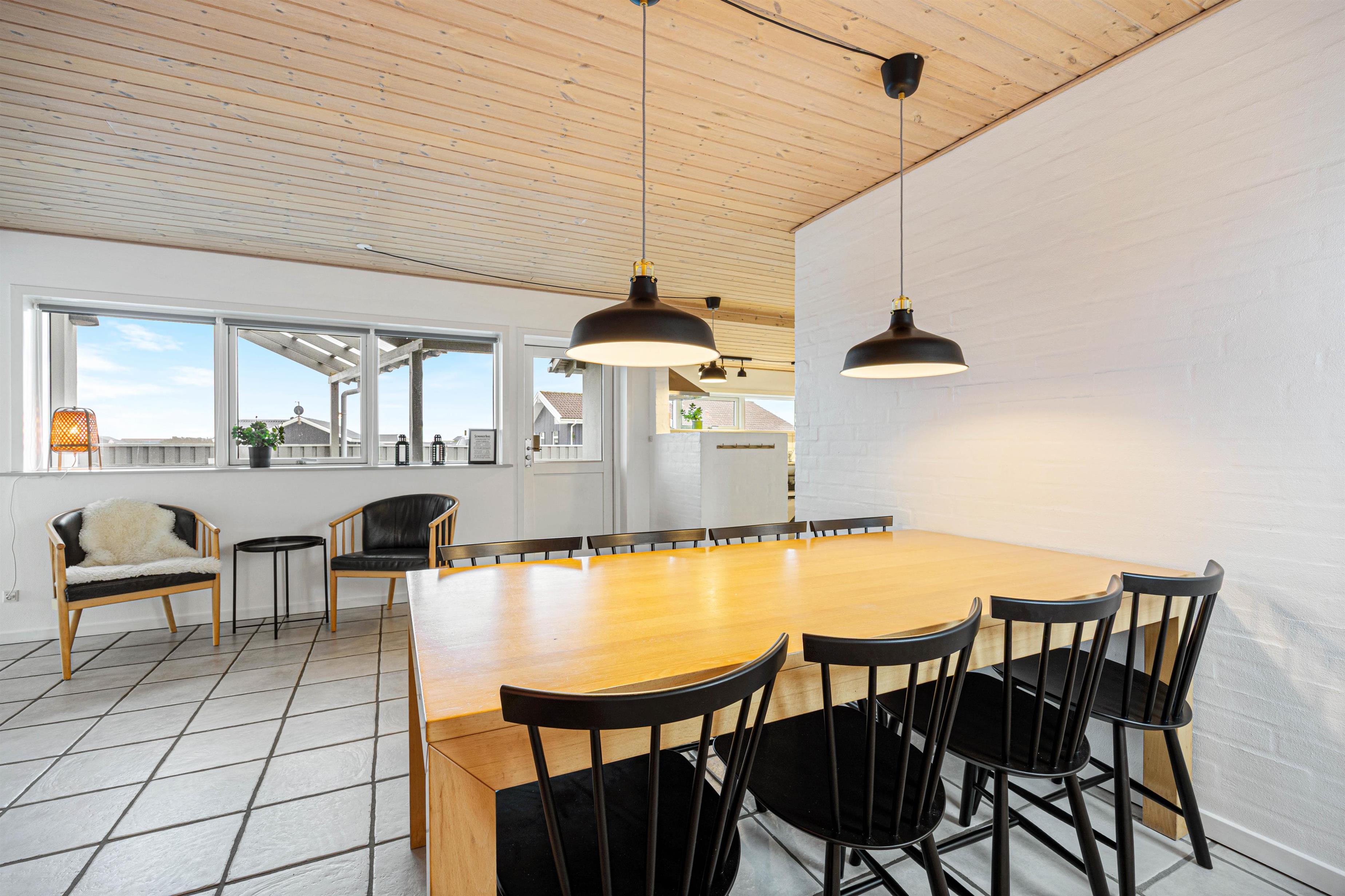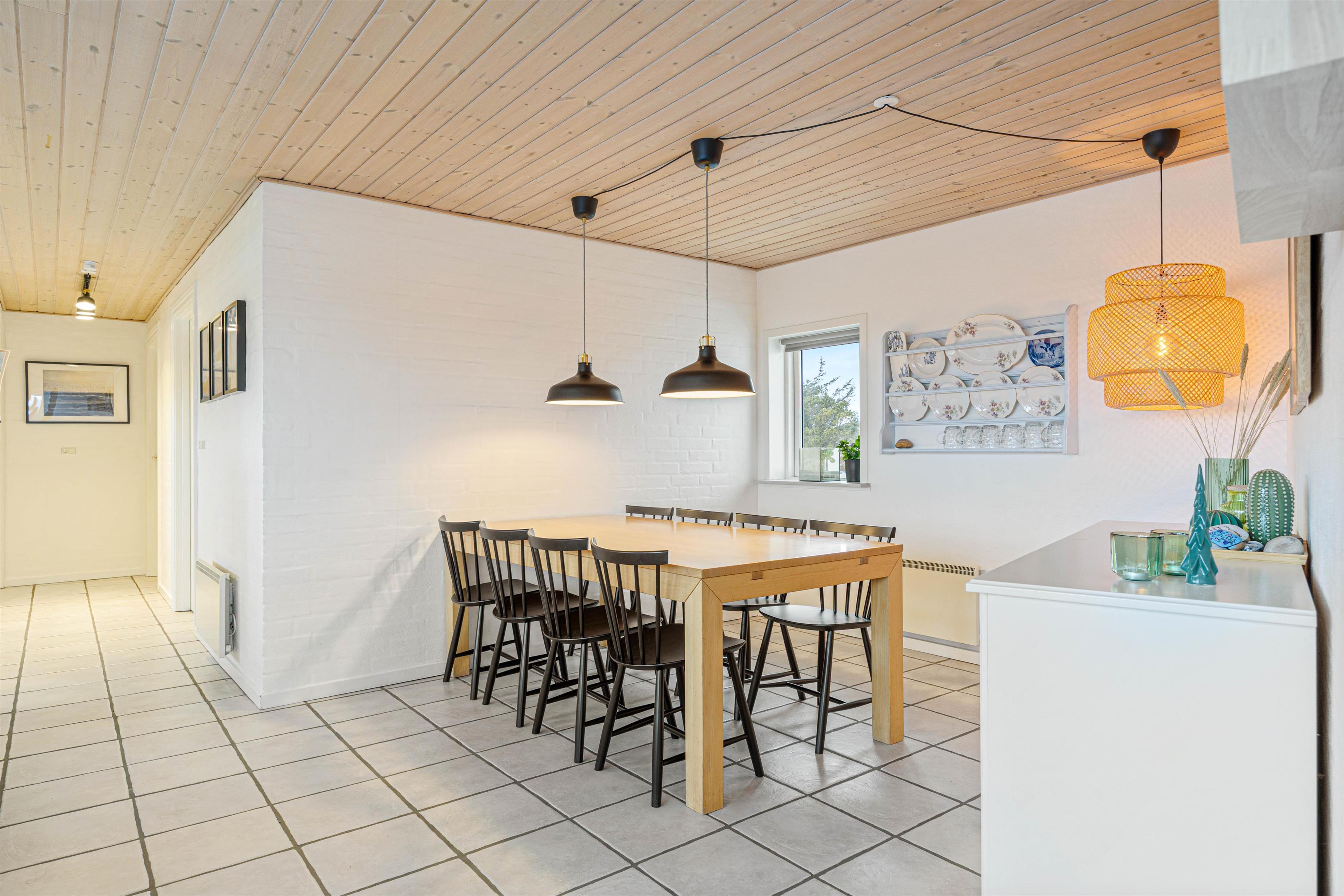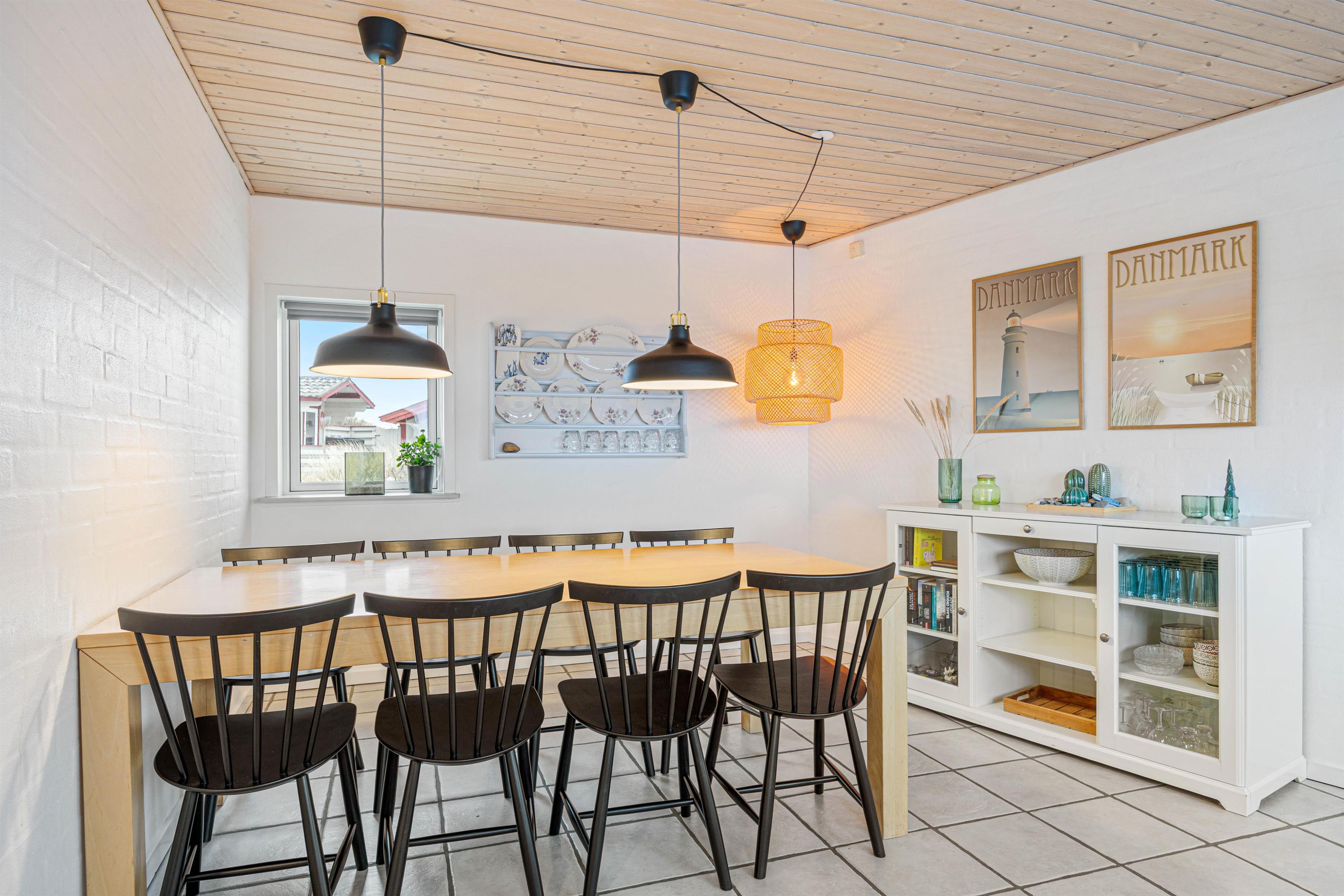 Èt af de steder, der skal samles på ferieminder, er i det åbne alrum, der ligger i forbindelse med stuen. Her kan hele flokken samles, uanset om det er til spisning eller brætspilshygge. Efter maden klarer opvaskemaskinen let opvasken, således I kan rykke i stuen og bruge tiden sammen. Her kan I slænge jer i sofaen, se film eller læse en god bog foran den knitrende brændeovn – dét er ægte ferie.