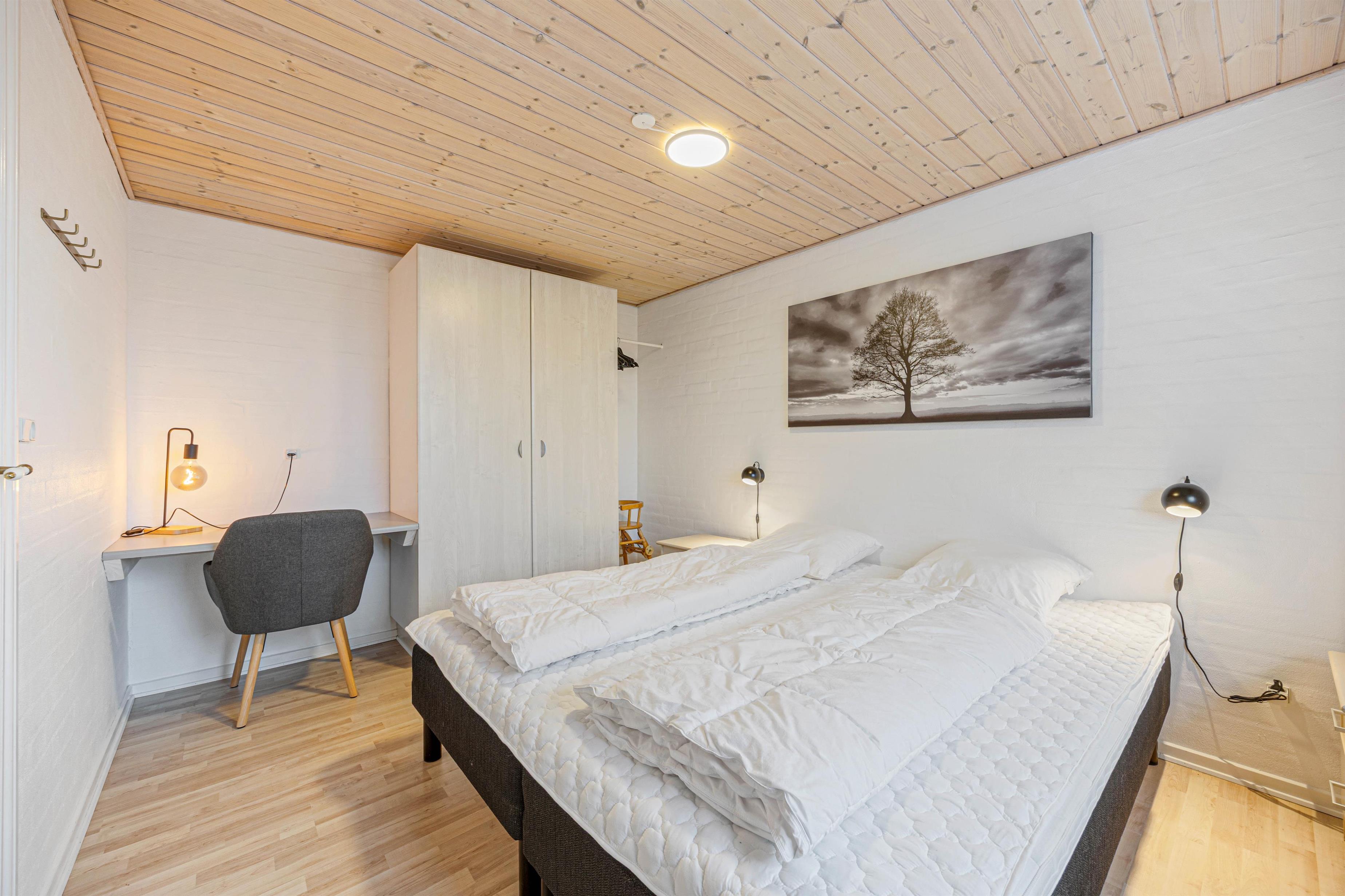 Når I har parkeret bilen, bliver I budt velkommen i dette klassiske sommerhus. Her er lyst og en venlig afslappende atmosfære med plads til hygge og gode minder med venner og familie. Feriehuset på 113 m2 har 3 rummelige soveværelser samt en hems. Hemsen er udstyret med madrasser og giver børnene en spændende og hyggelig oplevelse. Her kan I lade op og samle energi til de mange gode feriestunder.