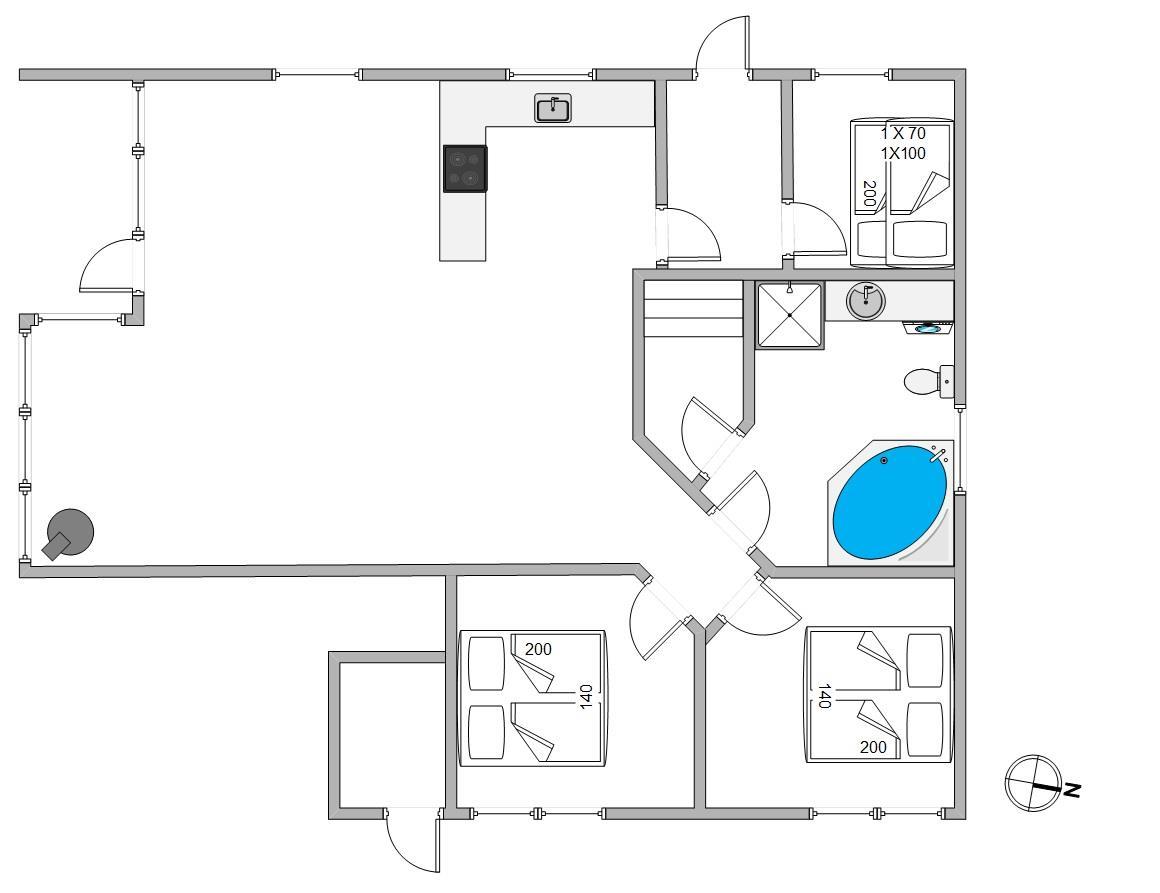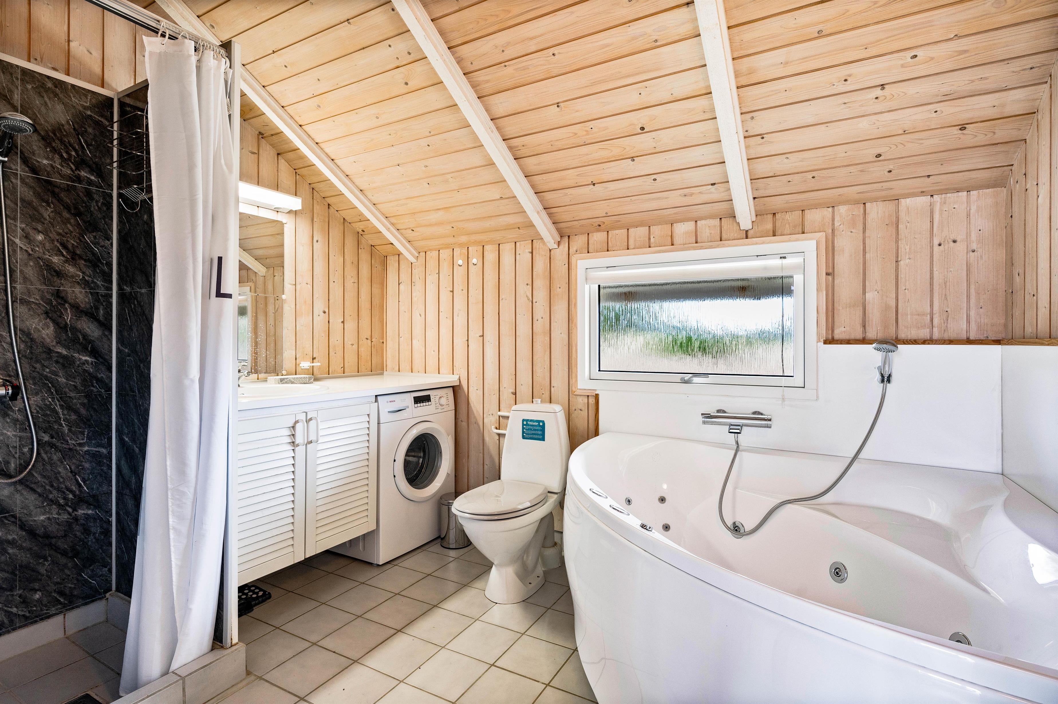 Badeværelset har gulvvarme, sauna og spabad, så I kan slappe af i fuldstændig ro. De 3 soveværelser tilbyder afslappende nætter – 2 med dobbeltsenge (140 cm brede) og 1 med køjesenge. Med vaskemaskine til rådighed kan I opfriske garderoben i løbet af ferien, og en energibesparende varmepumpe sørger for behagelige temperaturer året rundt.