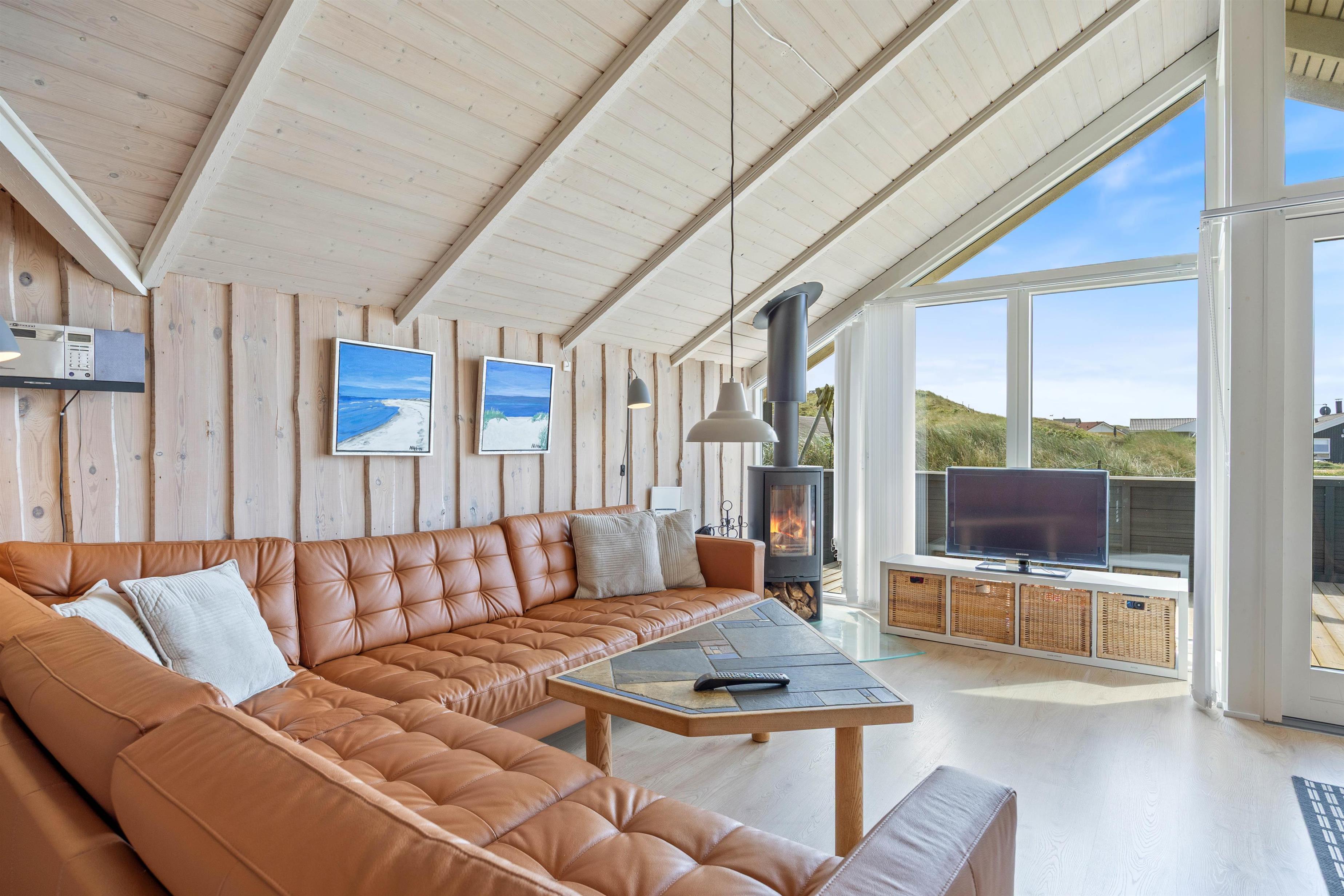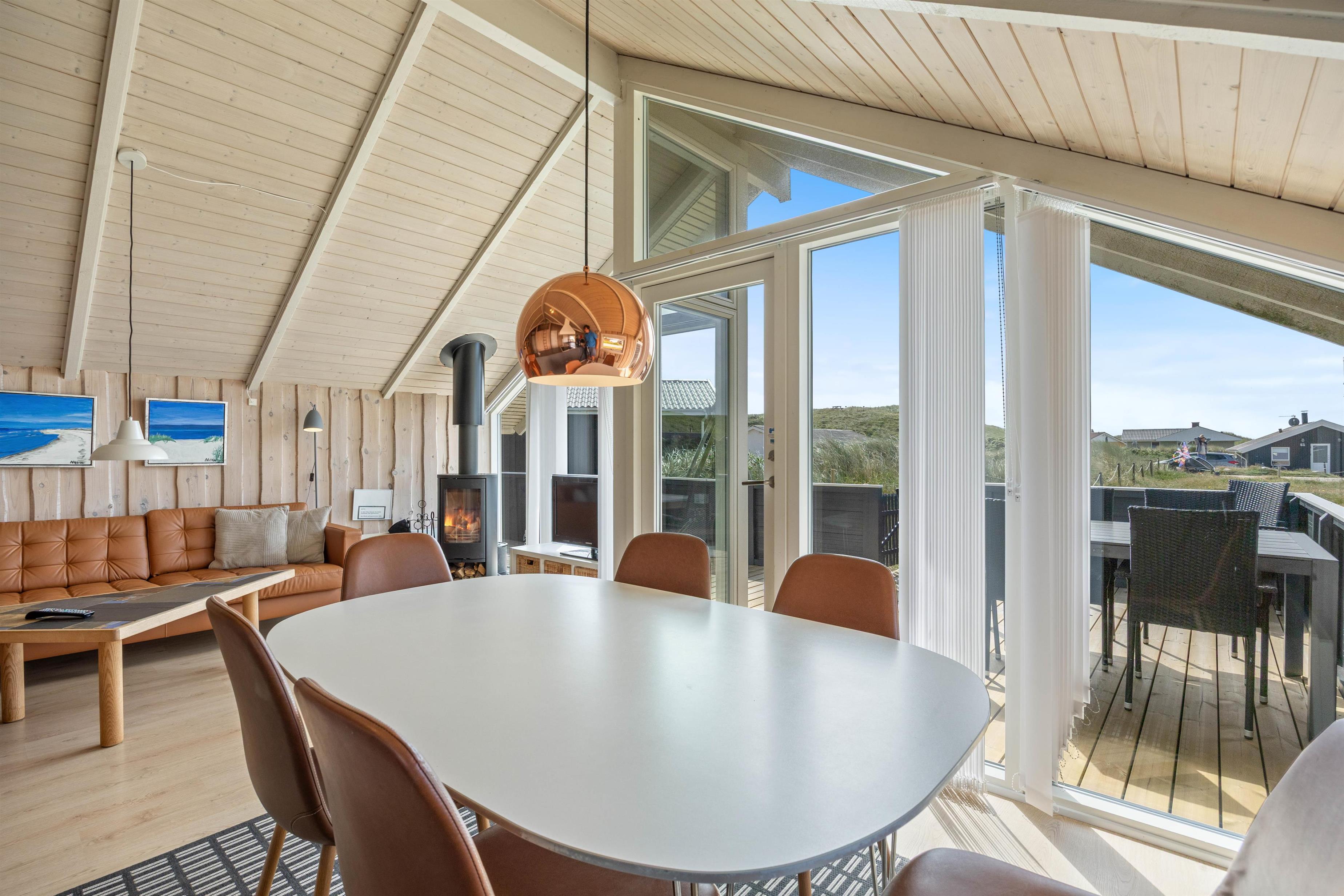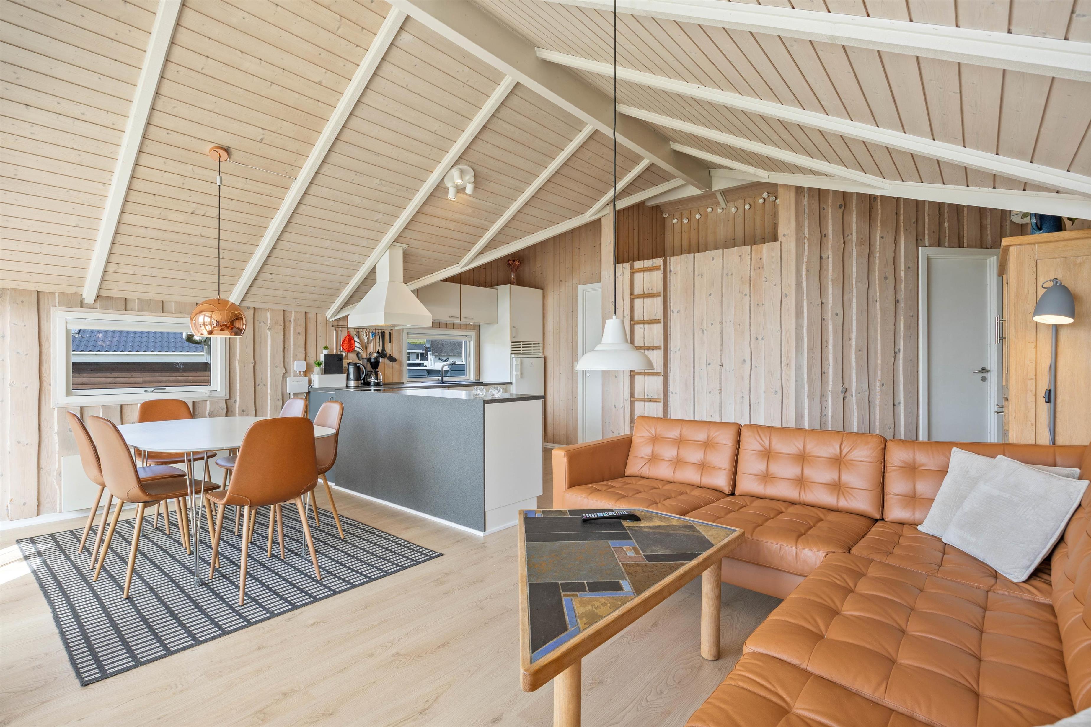 Feriehusets lyse indretning og fine lysindfald giver sammen med brændeovnen en dejlig feriestemning. Opholdsstuen indbyder til hyggelige aftener med knitrende ild i brændeovnen. Det åbne køkken er moderne udstyret med alt, hvad I behøver for at gøre madlavningen til en fornøjelse, herunder opvaskemaskine.