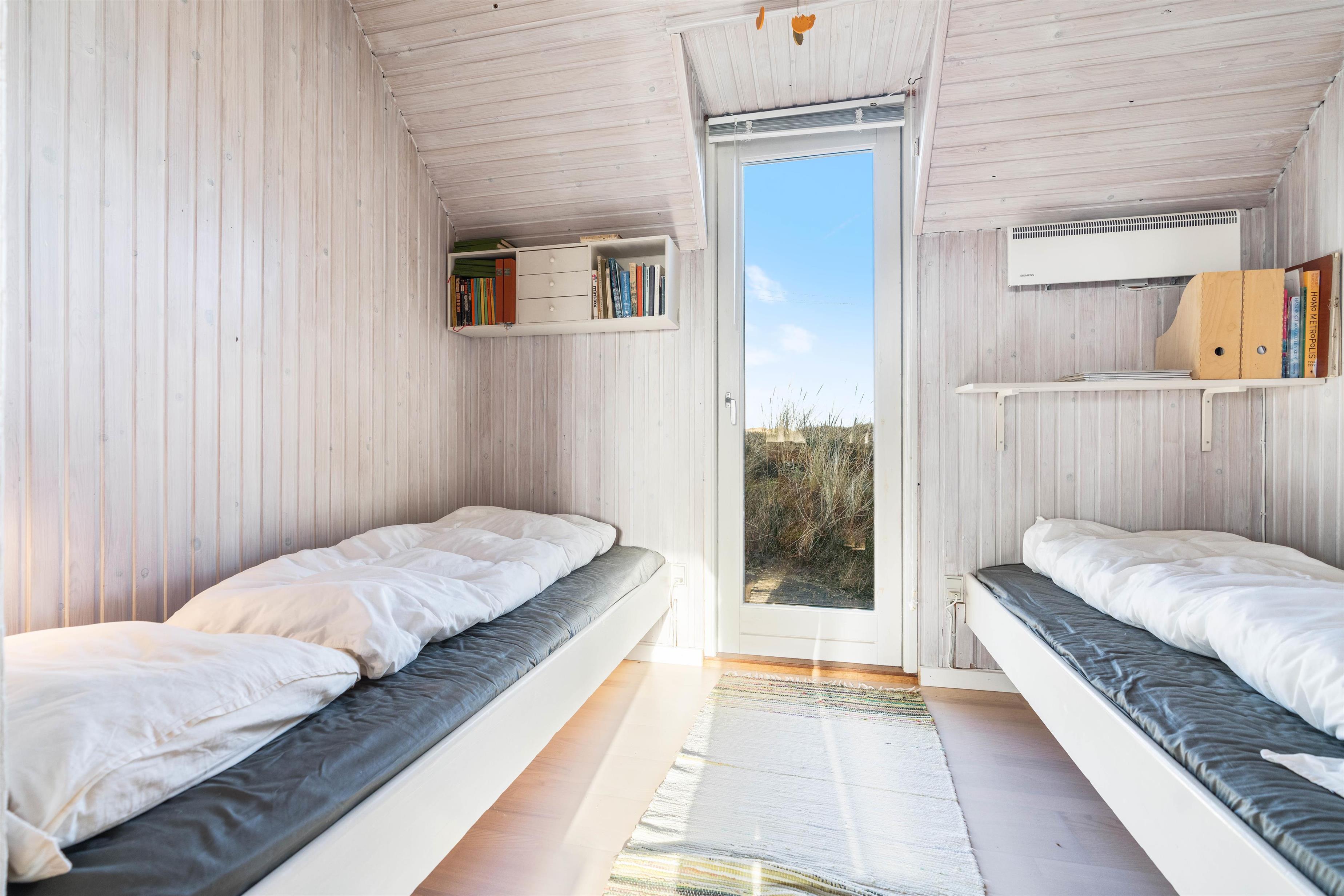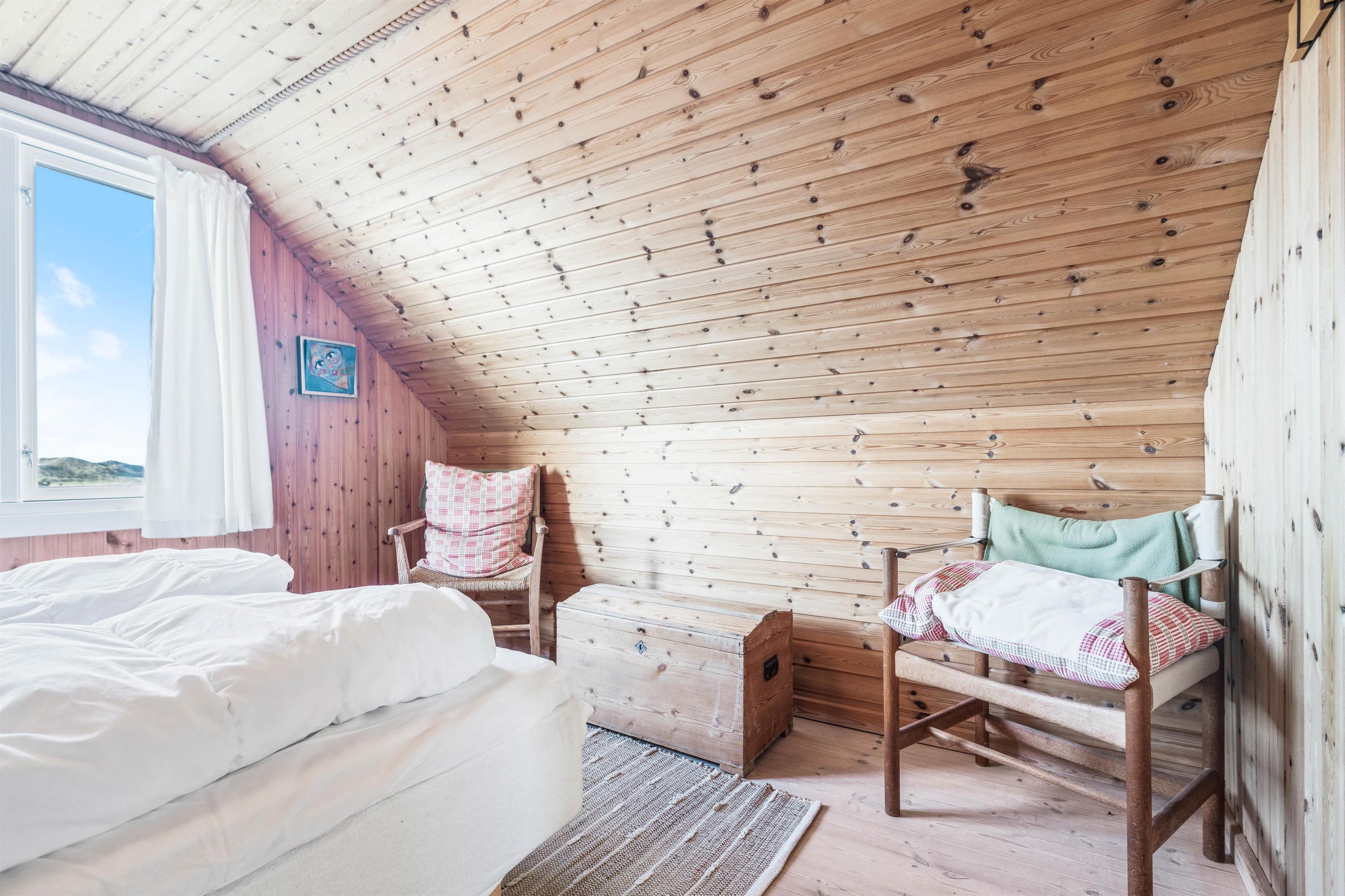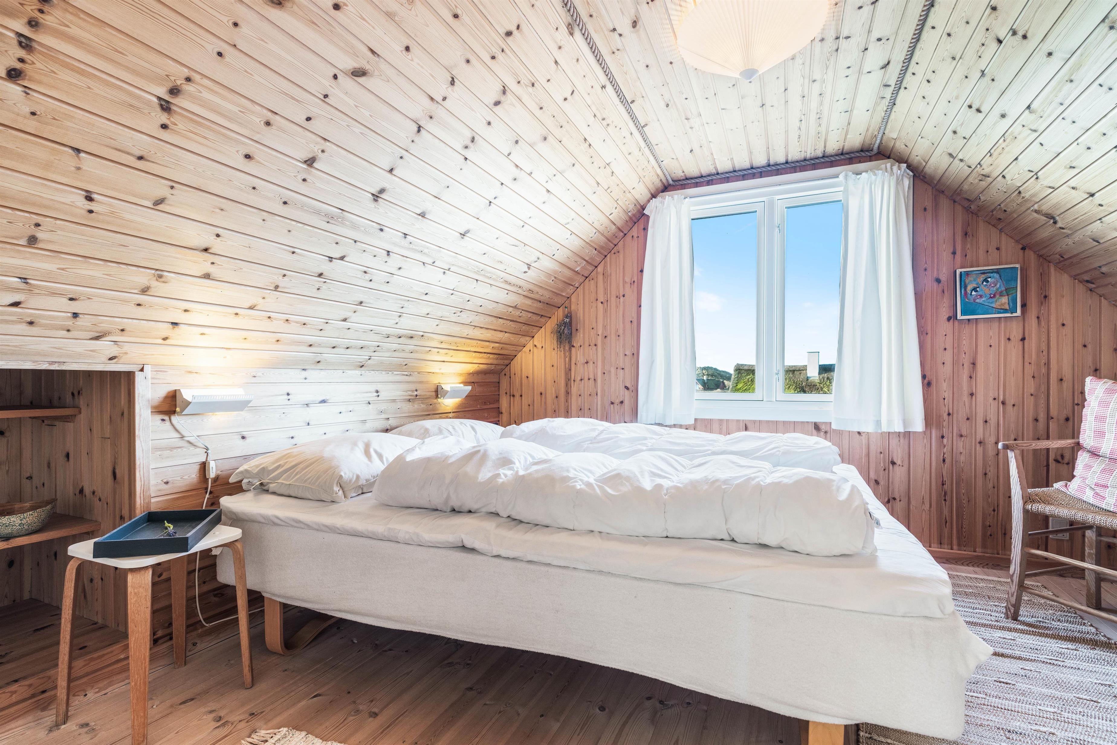 Her kan I holde ferie i et 2-stjernet sommerhus fra 1968 med skøn beliggenhed i Bjerregård tæt på Vesterhavet og direkte op til et stort fredet hedeområde. På 1. sal er der 2 store soveværelser med dobbeltsenge. Sommerhuset kan rumme 6 personer fordelt i 3 soverum, og udendørs finder I både sandkasse og gyngestativ til at underholde de små. Fra 1. sal er der udgang til en altan, hvor I kan nyde udsigten ud over den flotte naturgrund, som sommerhuset er beliggende på.