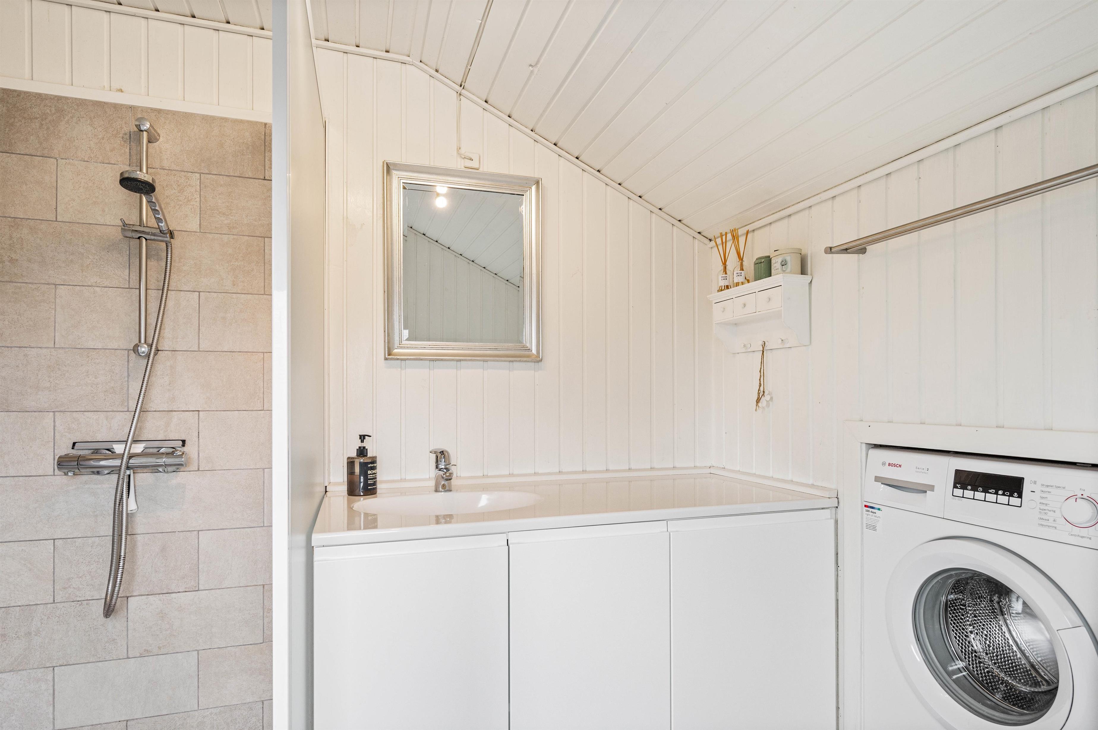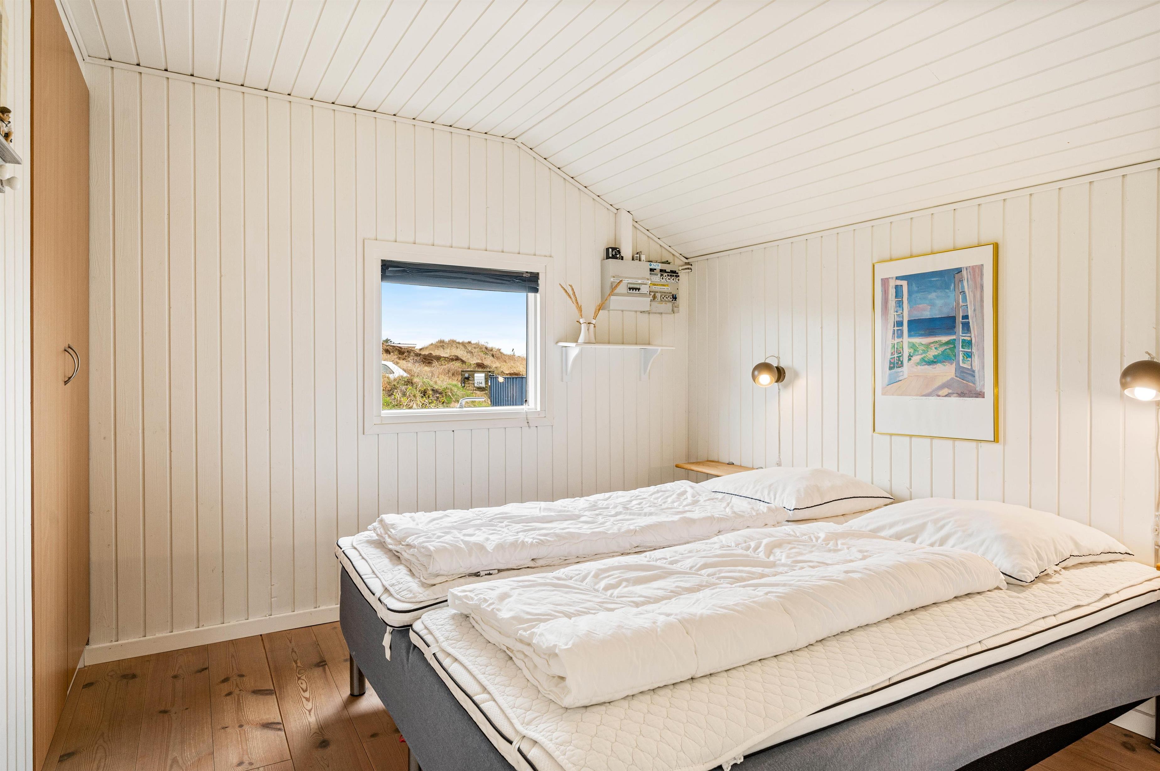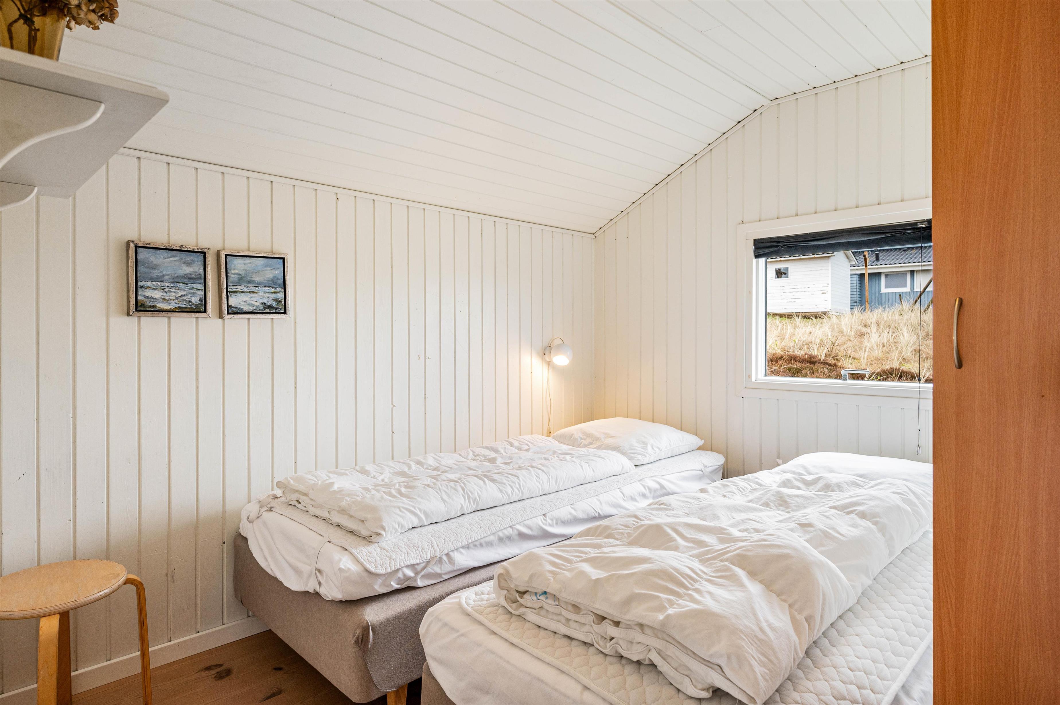 Der er 3 hyggelige soveværelser: Ét værelse med 1 dobbeltseng og de øvrige 2 værelser med henholdsvis én og 2 enkeltsenge, hvilket gør sommerhuset velegnet til familien med børn eller et par. Badeværelset er lyst og gulvvarmen skaber en behagelig komfort, selv på de køligere dage. Badeværelset er desuden udstyret med vaskemaskine, så I har mulighed for at få vasket tøj i løbet af opholdet.