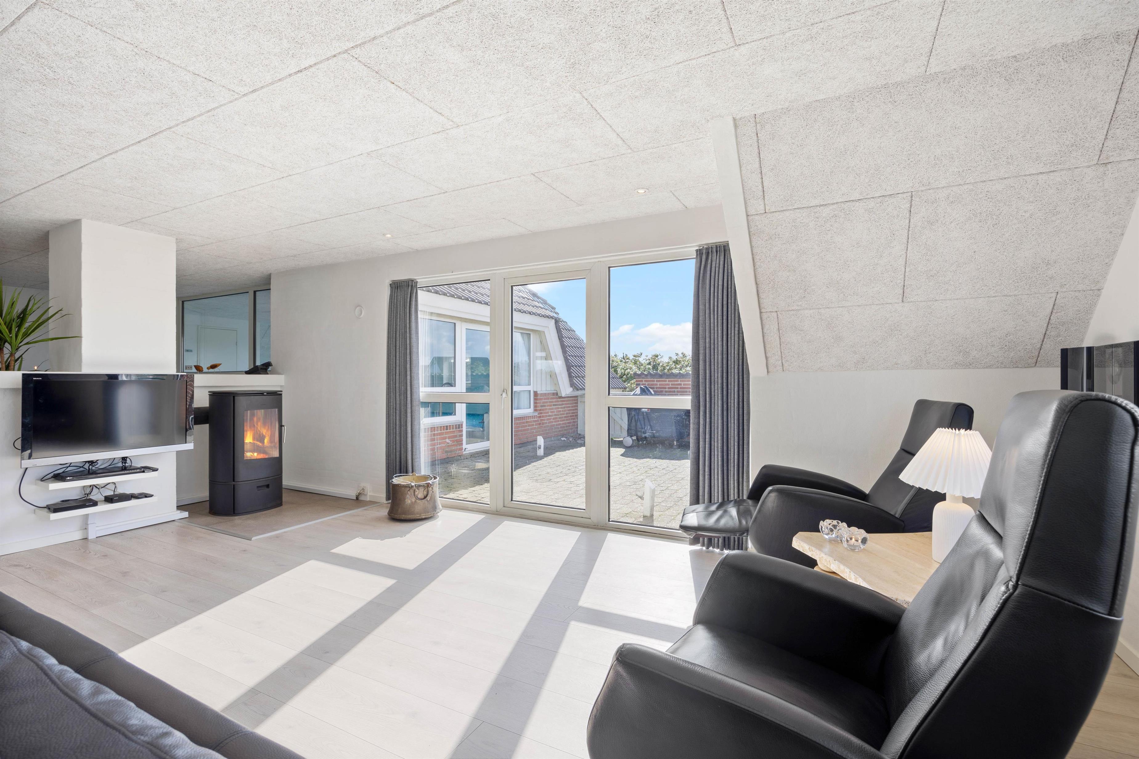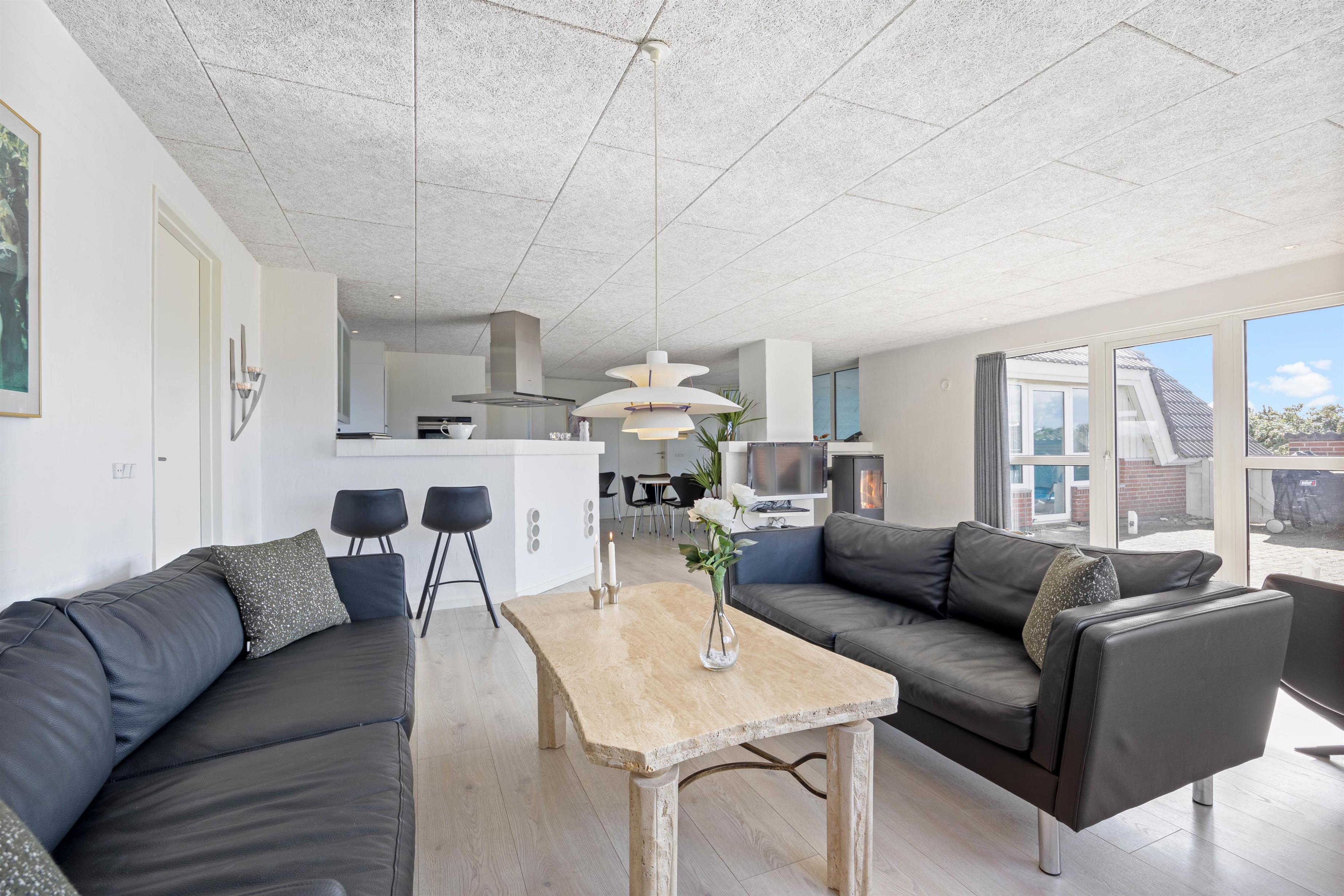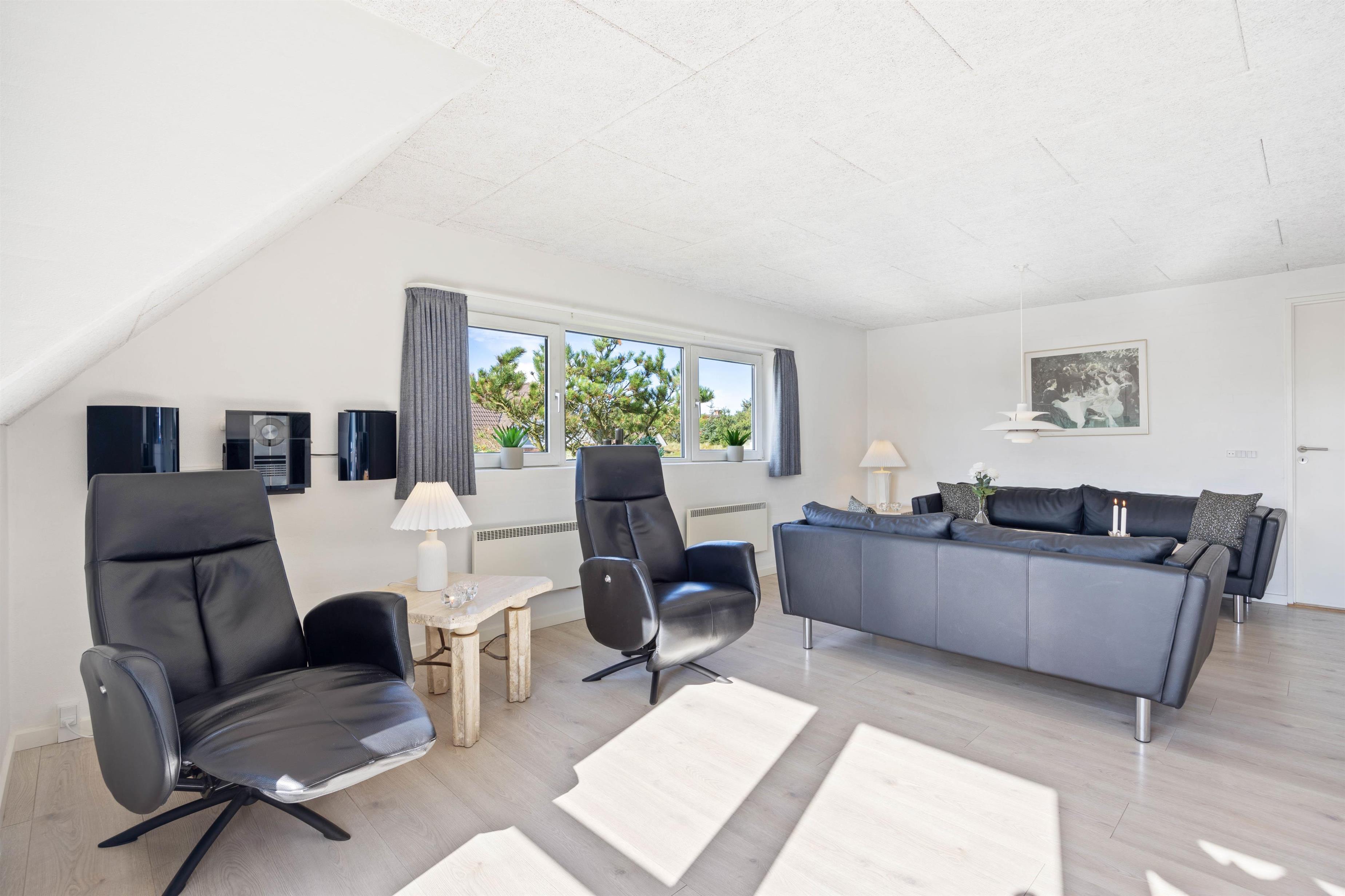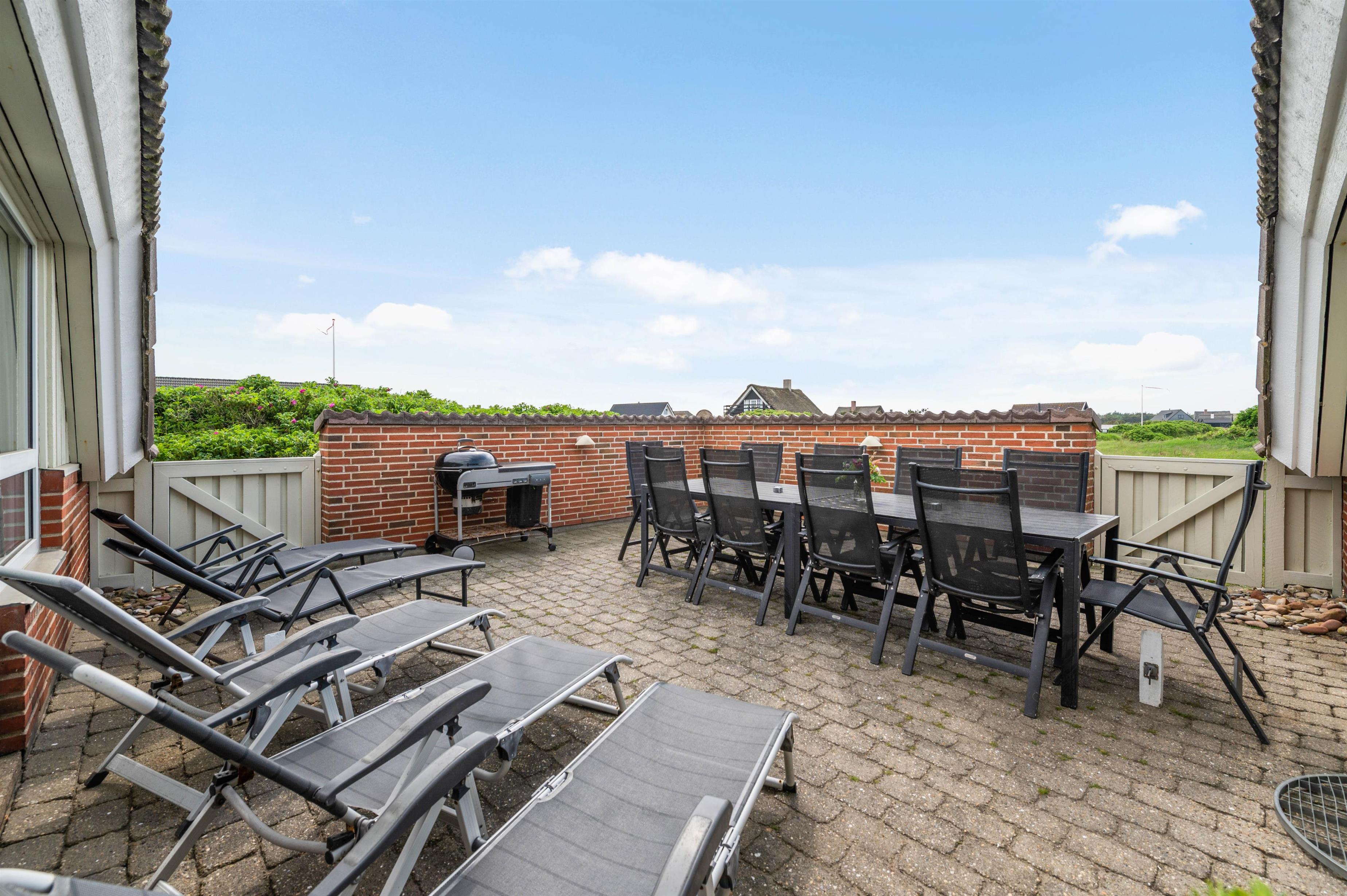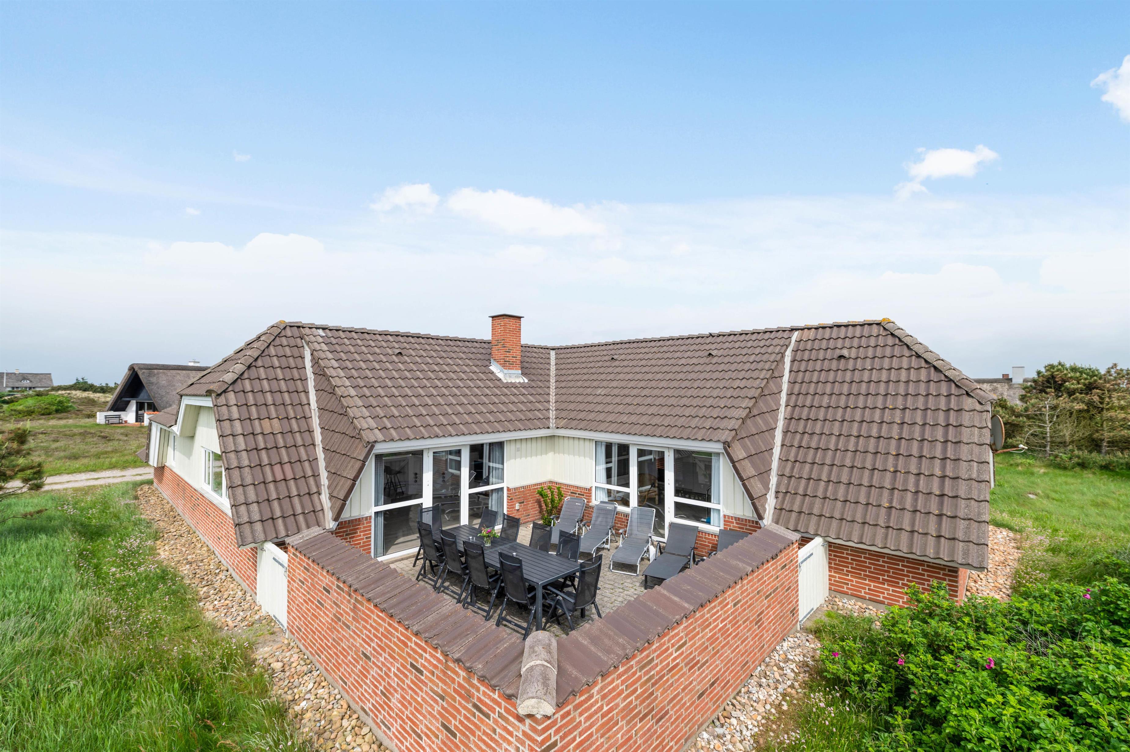 Sommerhuset ligger på en stor naturgrund kun 450 meter fra Vesterhavet. Den friske havluft kan også nydes på den sydvendte terrasse, som er lukket. Her kan hunden gå frit rundt, mens I spiser et lækkert grillmåltid i det gode vejr. Midt på dagen kan I også lægge jer til rette i liggestolene og læse en god bog.