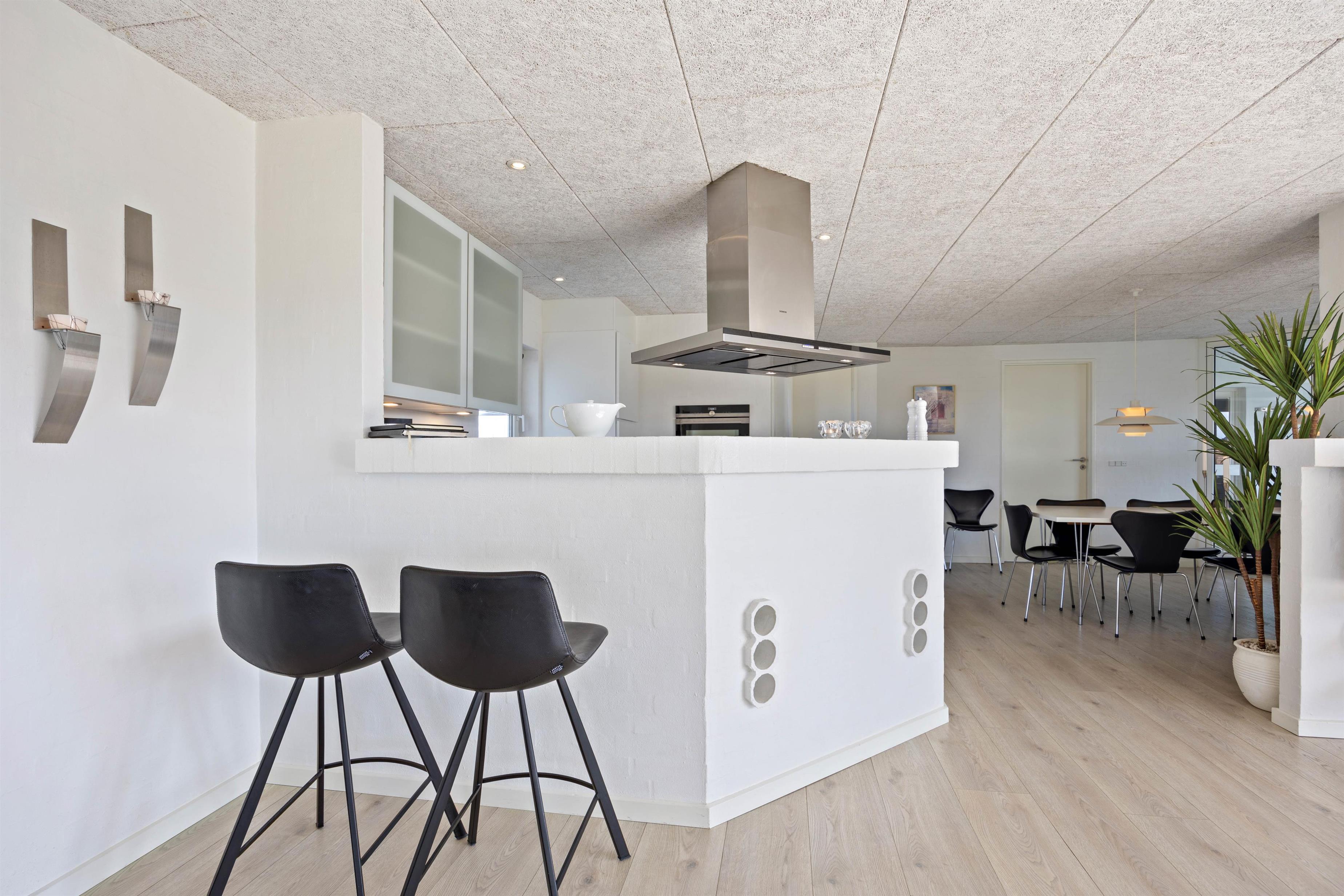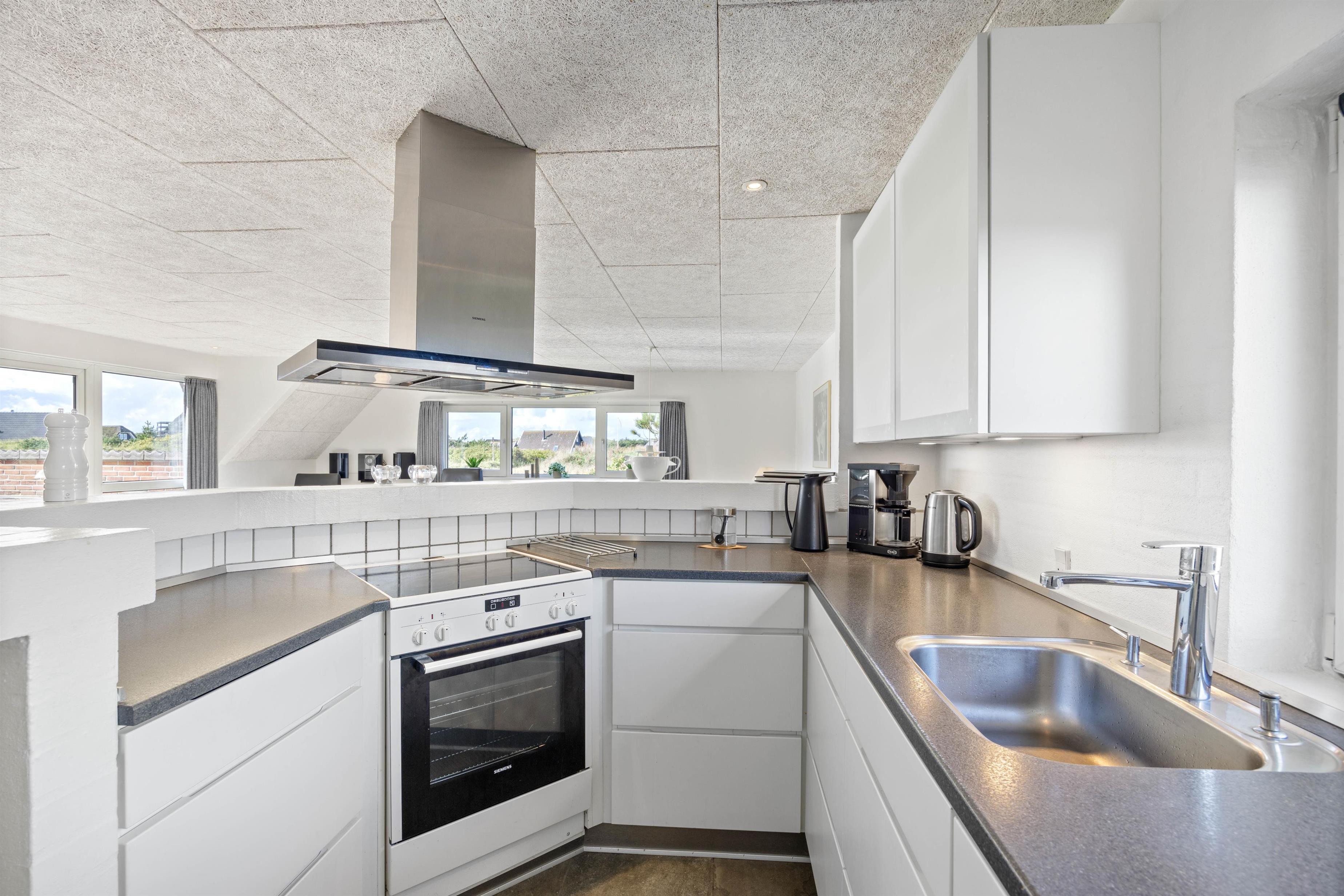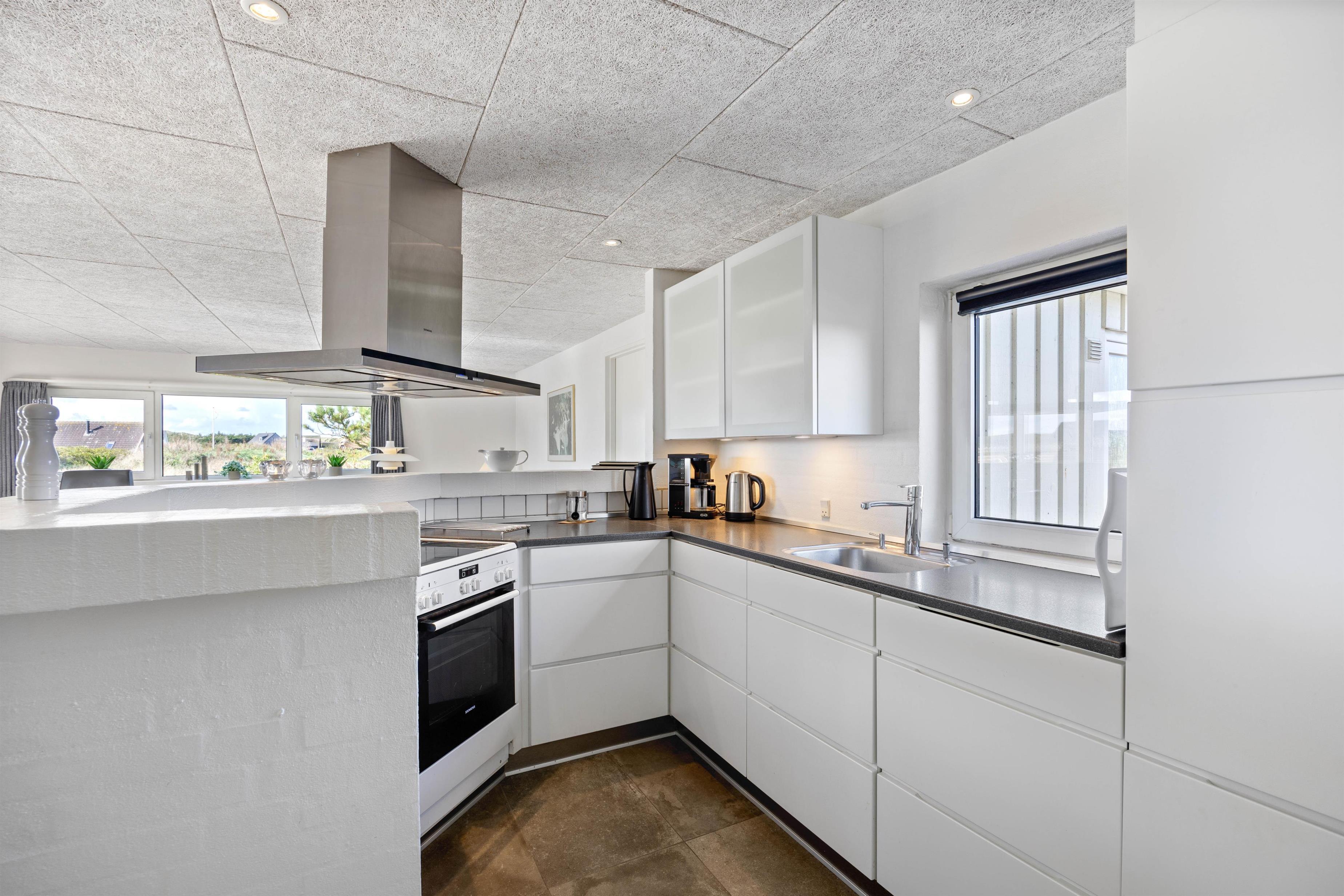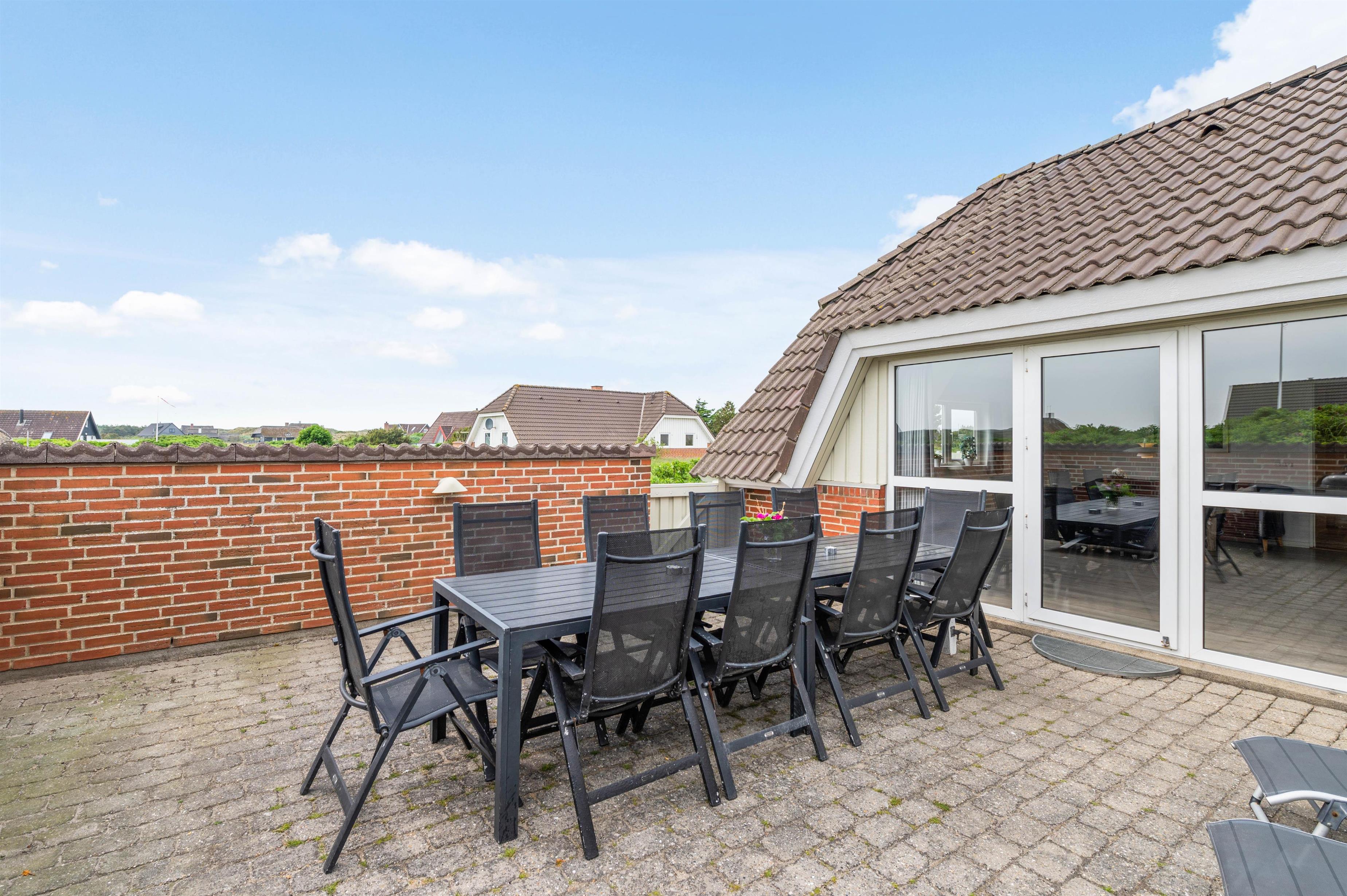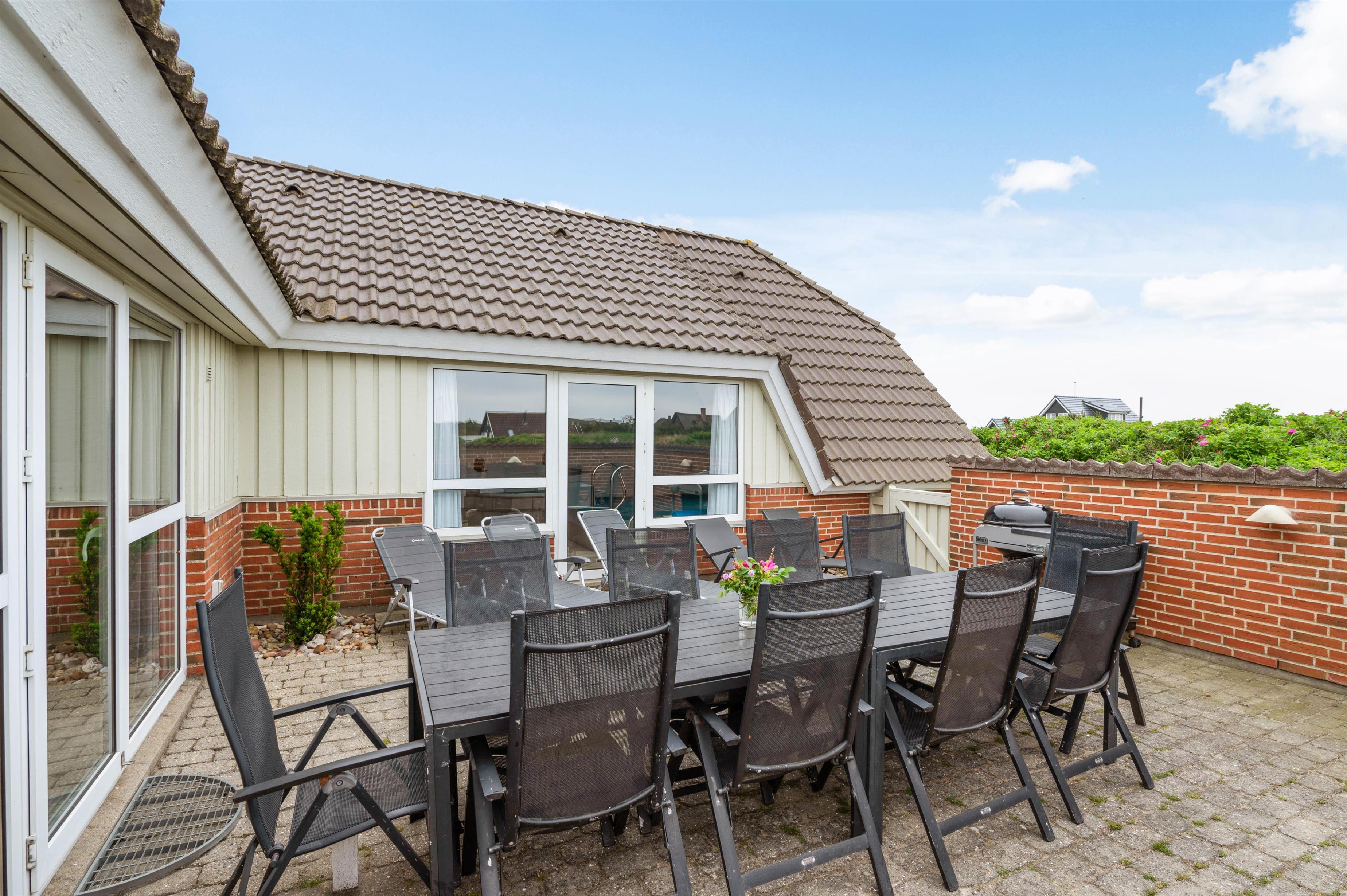 Sommerhuset ligger på en stor naturgrund kun 450 meter fra Vesterhavet. Den friske havluft kan også nydes på den sydvendte terrasse, som er lukket. Her kan hunden gå frit rundt, mens I spiser et lækkert grillmåltid i det gode vejr. Midt på dagen kan I også lægge jer til rette i liggestolene og læse en god bog.