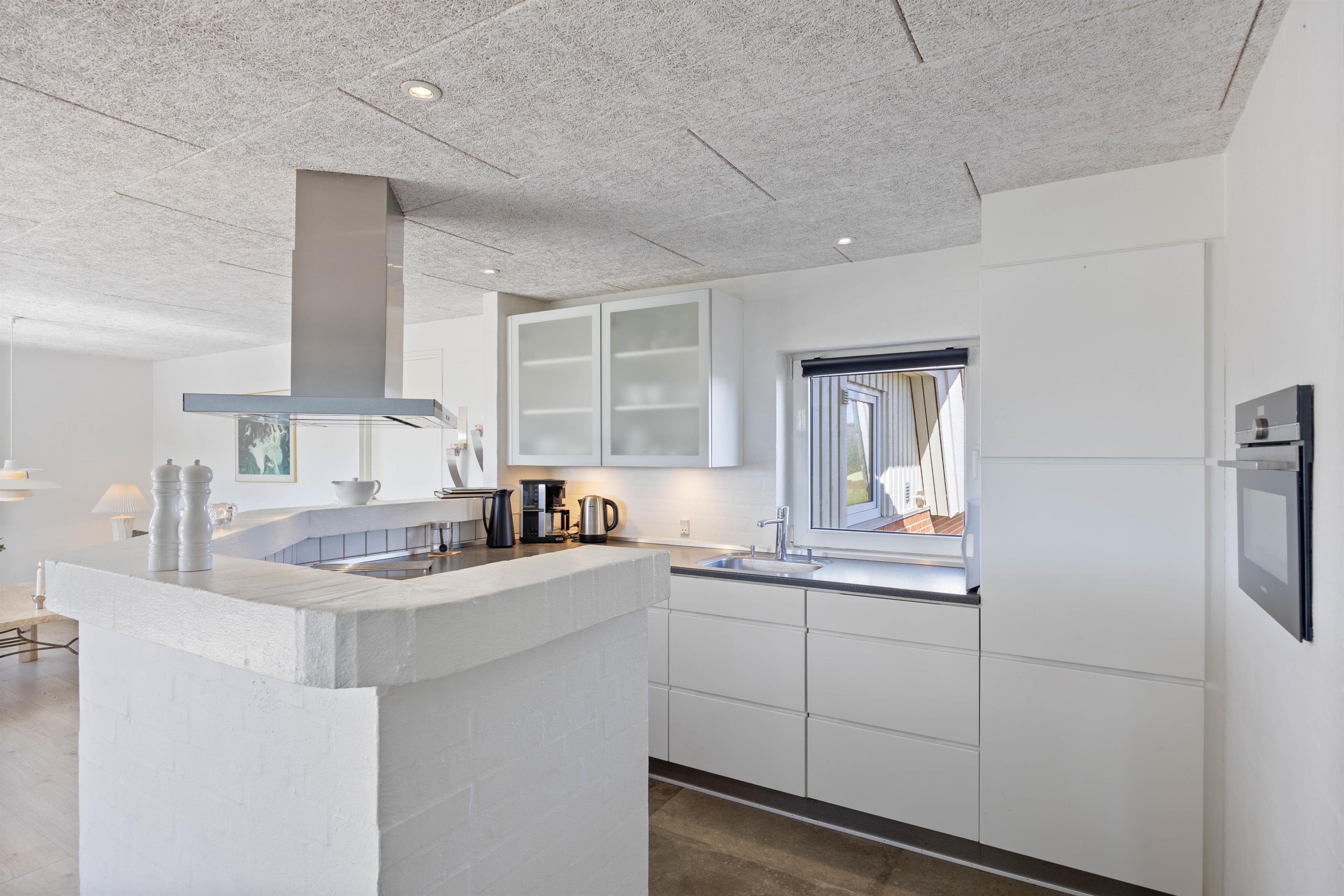 Køkkenet ligger i åben forbindelse med stuen, hvor der er plads til hele familien. Her kan I samles til en hyggelig aften, hvor brændeovnen sørger for varme og ekstra feriestemning. Trænger I til en afslappende filmaften på sofaen, så er der danske tv-kanaler i sommerhuset.