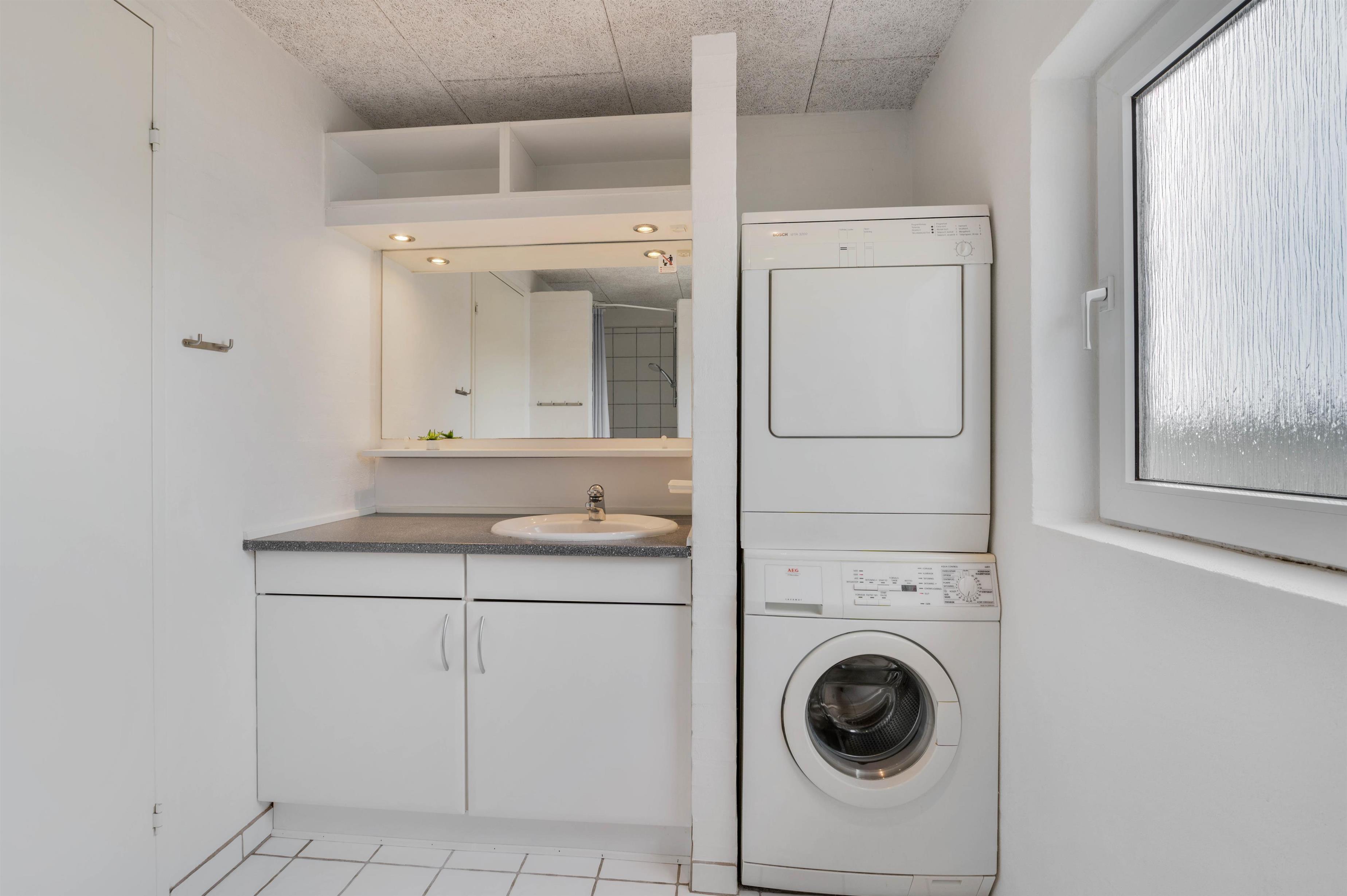 Sommerhuset har 2 badeværelser, som begge er udstyret med gulvvarme. Her er også vaskemaskine og tørretumbler, så I kan vaske tøj under ferien.