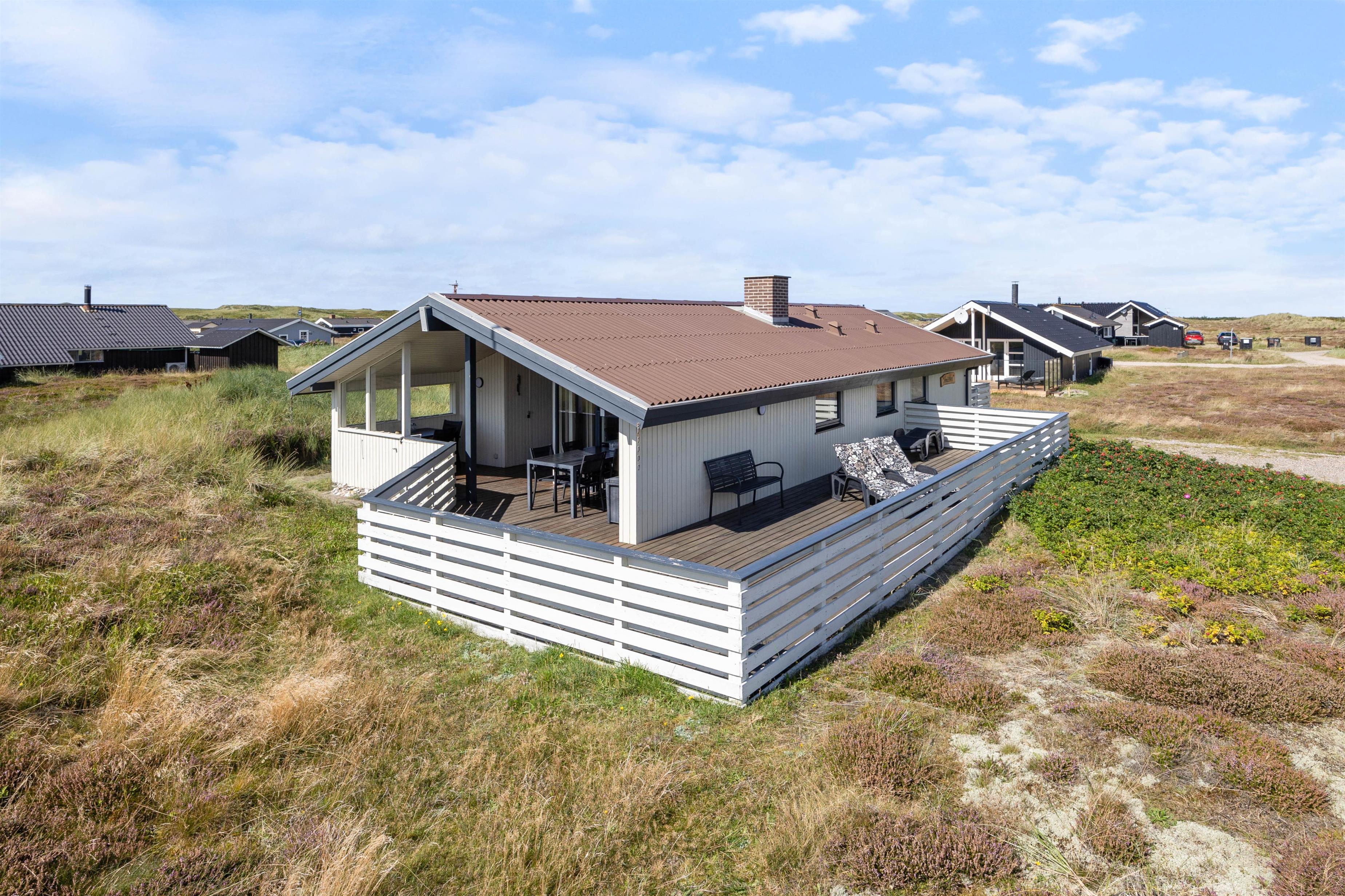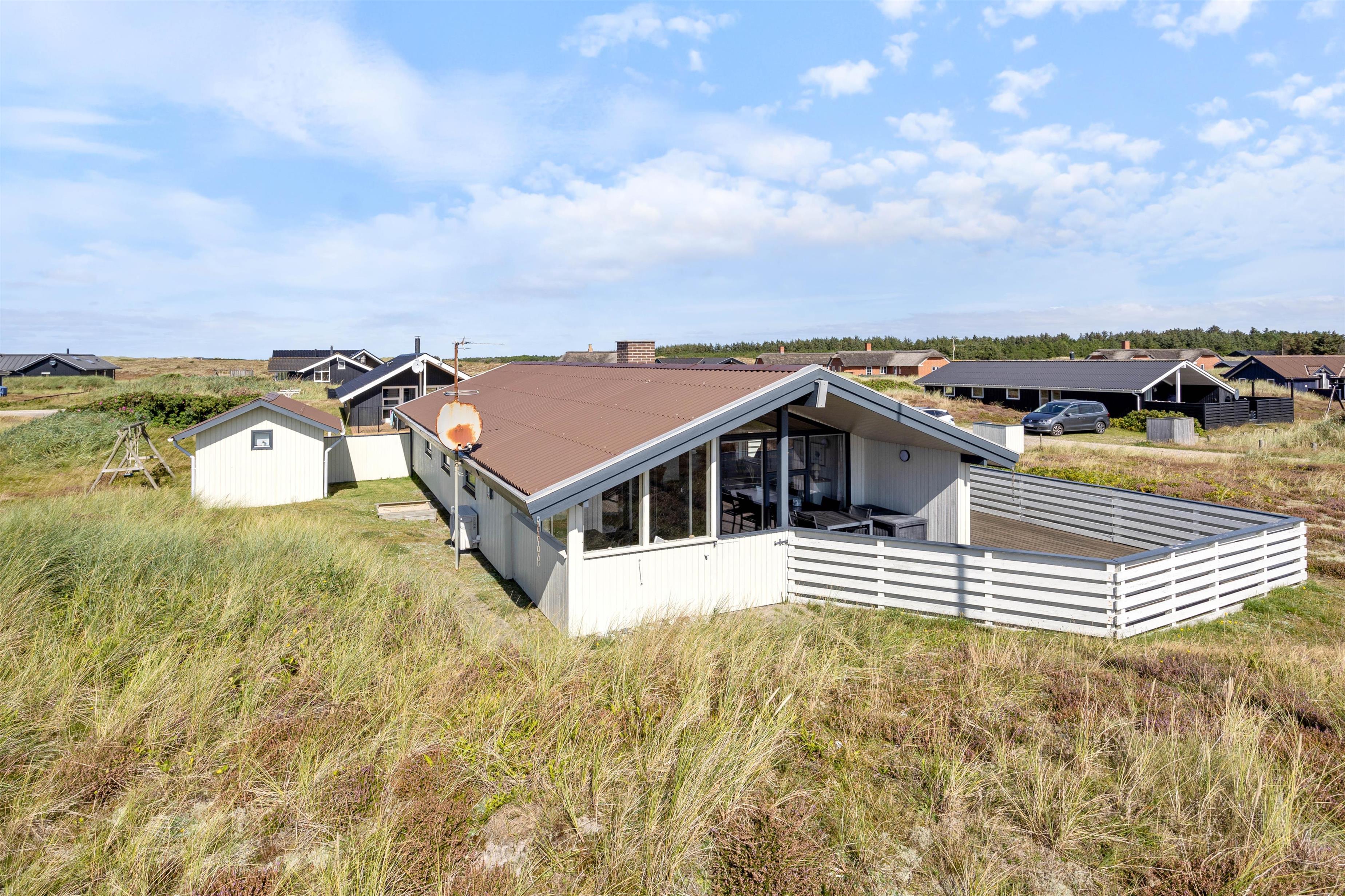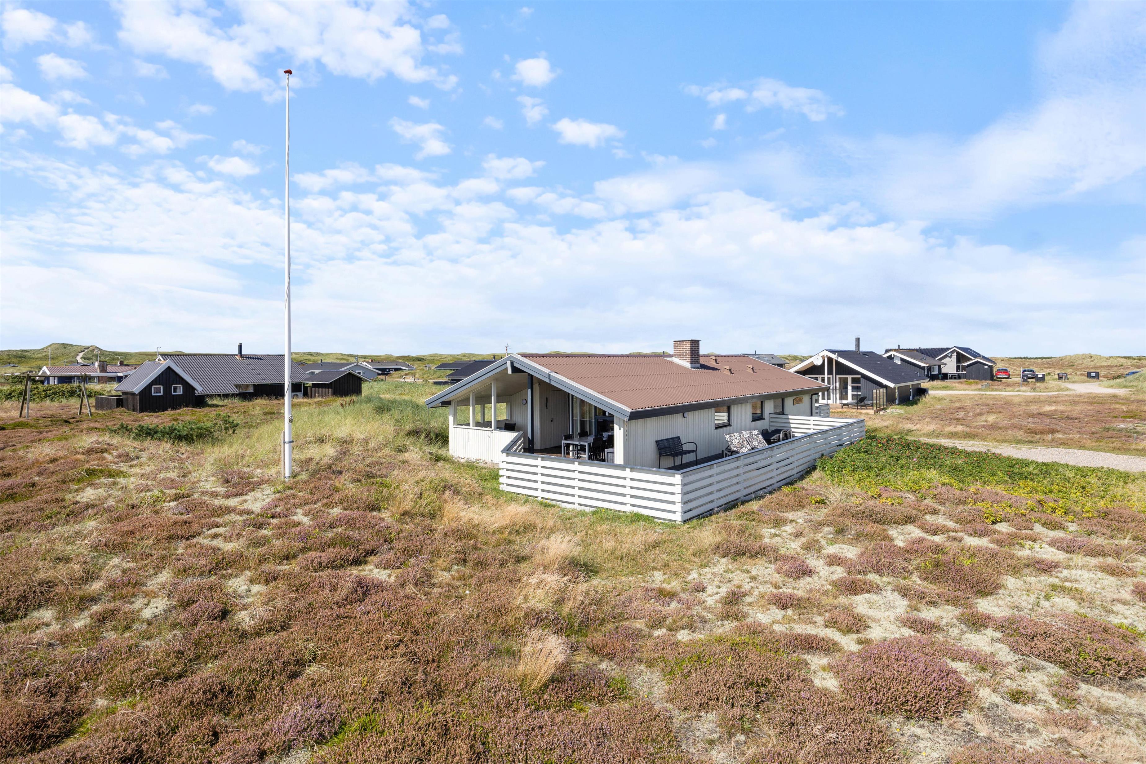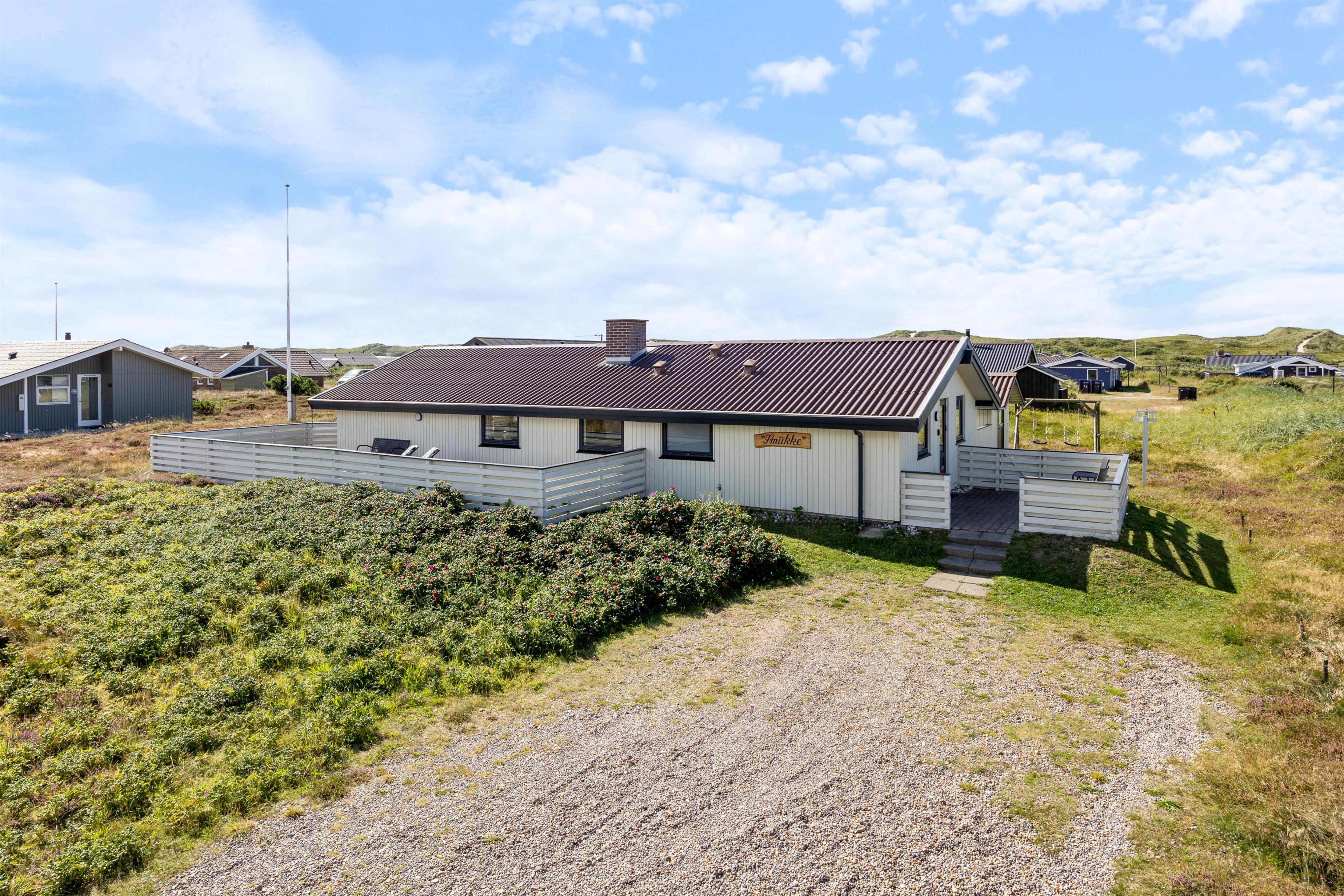 Sommerhuset ligger blot 300 meter fra Vesterhavet, og den strandnære beliggenhed indbyder til gåture med familien og hunden langs vandet. I kan også bygge sandslotte, flyve med drage eller tage picnickurven med hertil – mulighederne er mange.