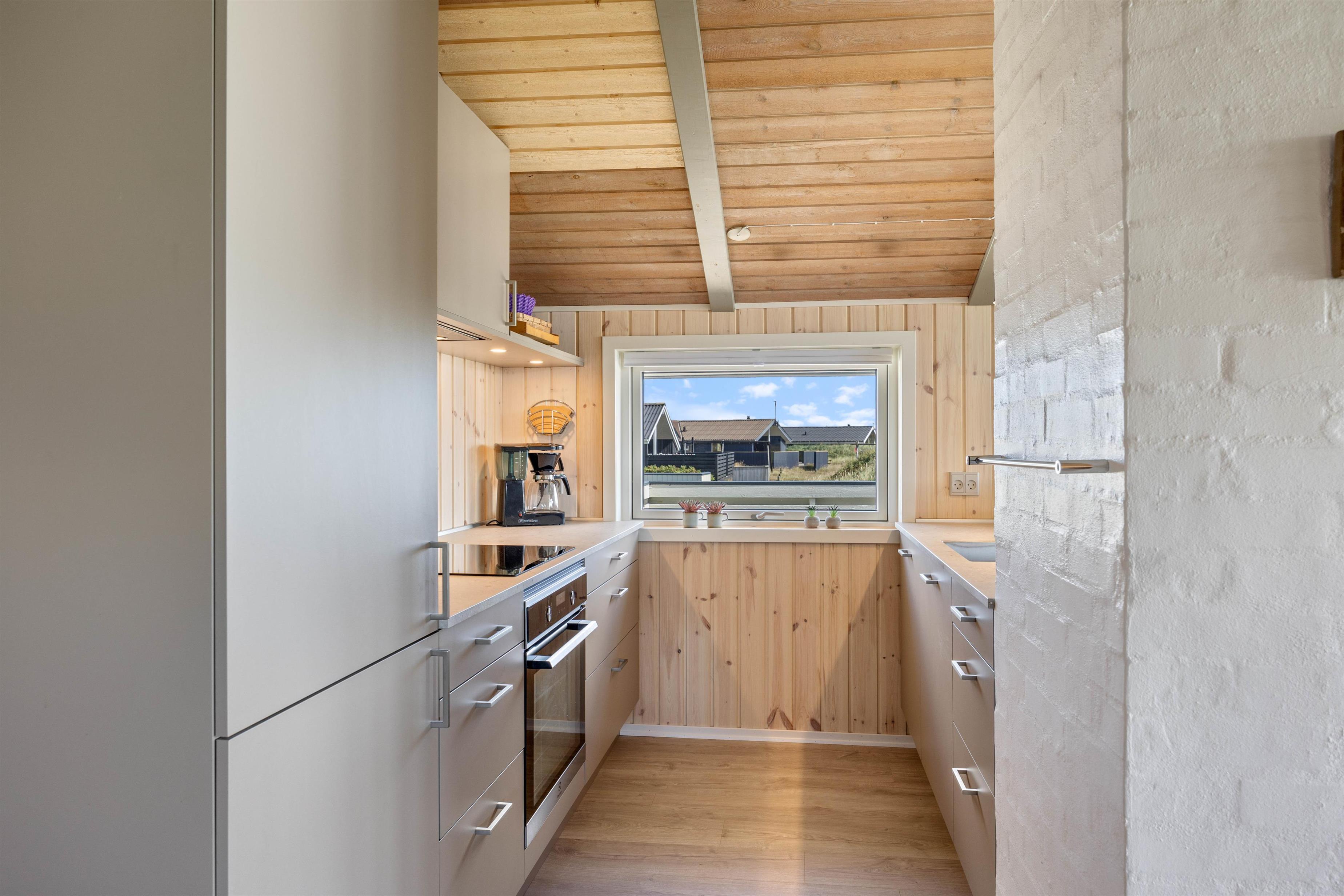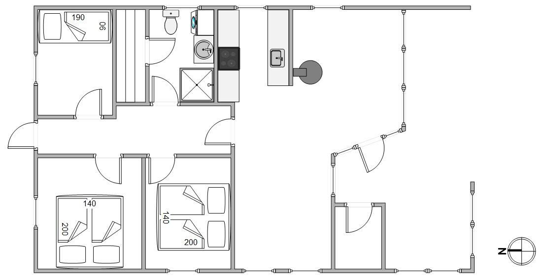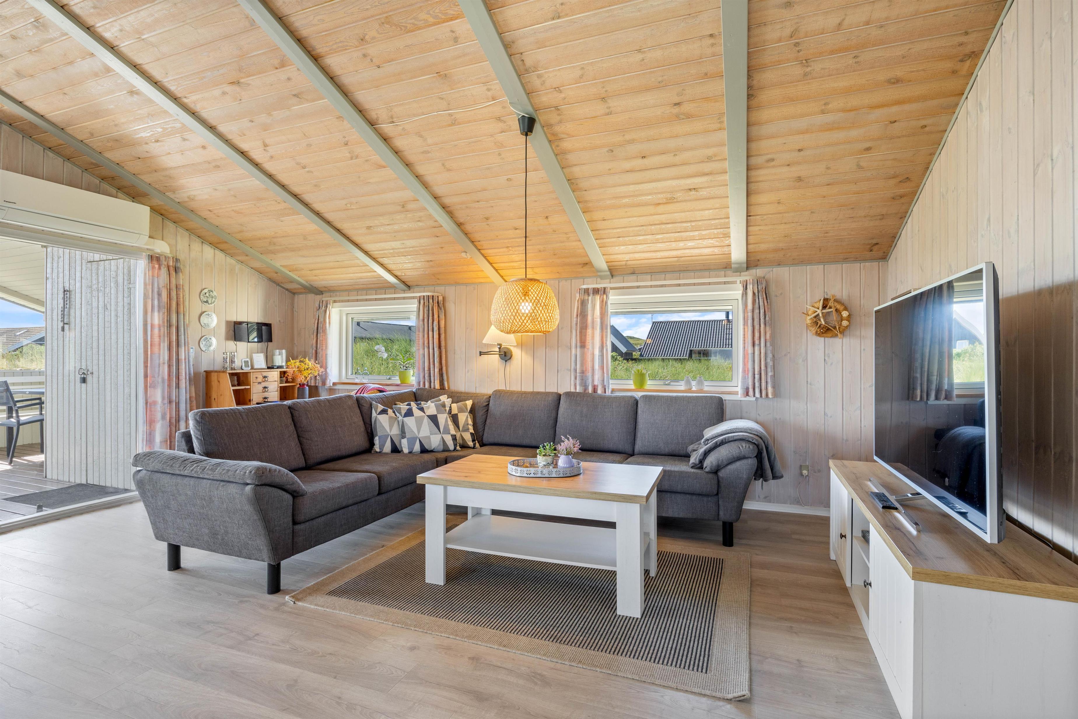 Sommerhusets hjerterum er alrummet, hvor køkken, spiseplads og stue ligger i åben forbindelse. Rummet indbyder til mange hyggelige stunder med hele familien, selv når nogle er i køkkenet, mens andre slapper af på sofaen. Tænd op i brændeovnen og nyd varmen, mens I streamer jeres yndlingsfilm via. chromecasten. Sommerhuset har også danske tv-kanaler, og som et ekstra plus er der en energibesparende varmepumpe.
