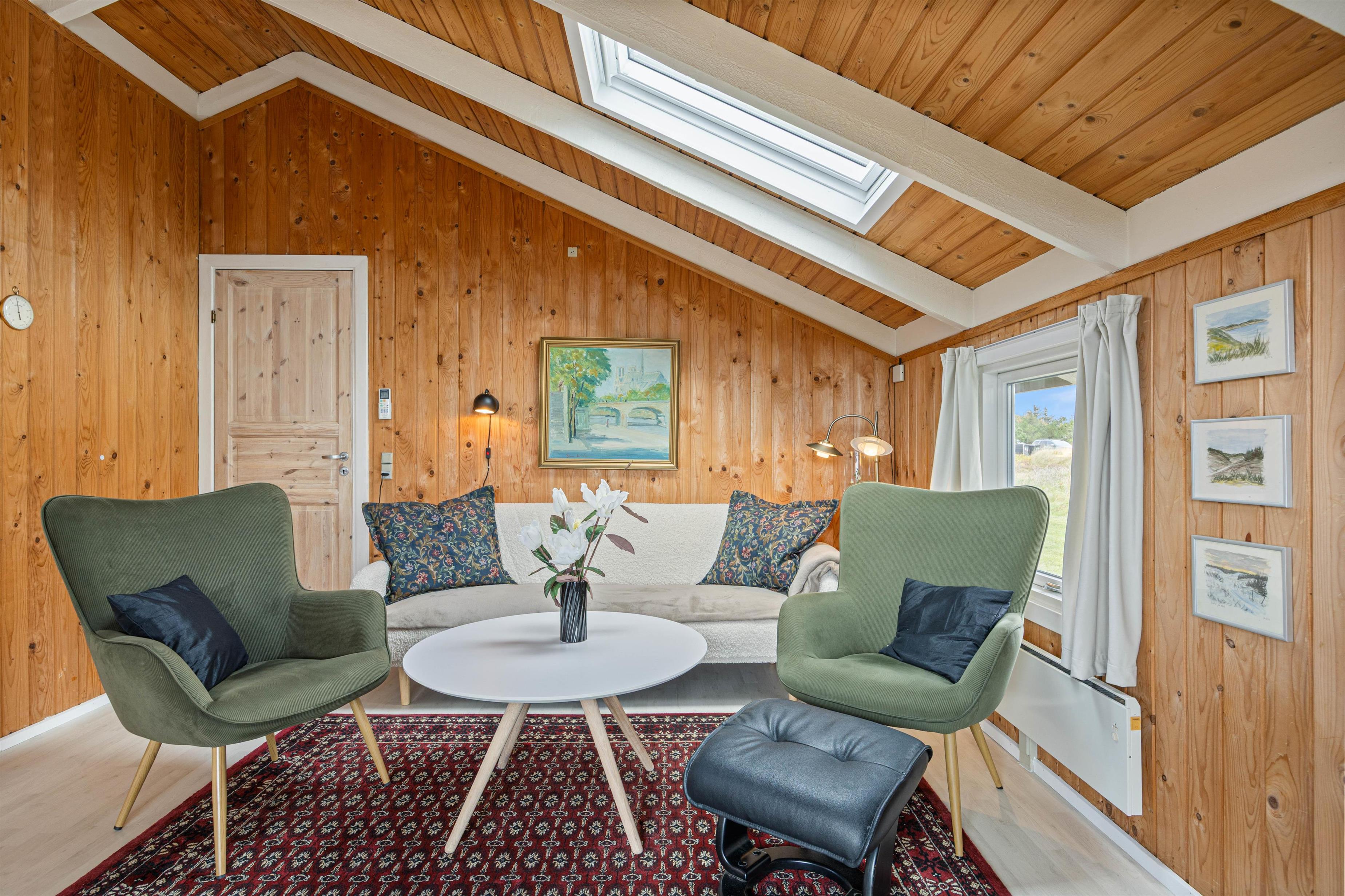 Også udenfor byder sommerhuset i Bjerregård på flere muligheder for at nyde den friske luft fra Vesterhavet. Der er et afskærmet- og et overdækket terrasseafsnit, samt en lukket terrasse, som tilbyder et lunt sted at være på alle tider af døgnet. Møblerne indbyder til at slappe af og nyde livet – hvad enten det er til morgenmad i morgensolen eller en rolig aften i det fri.