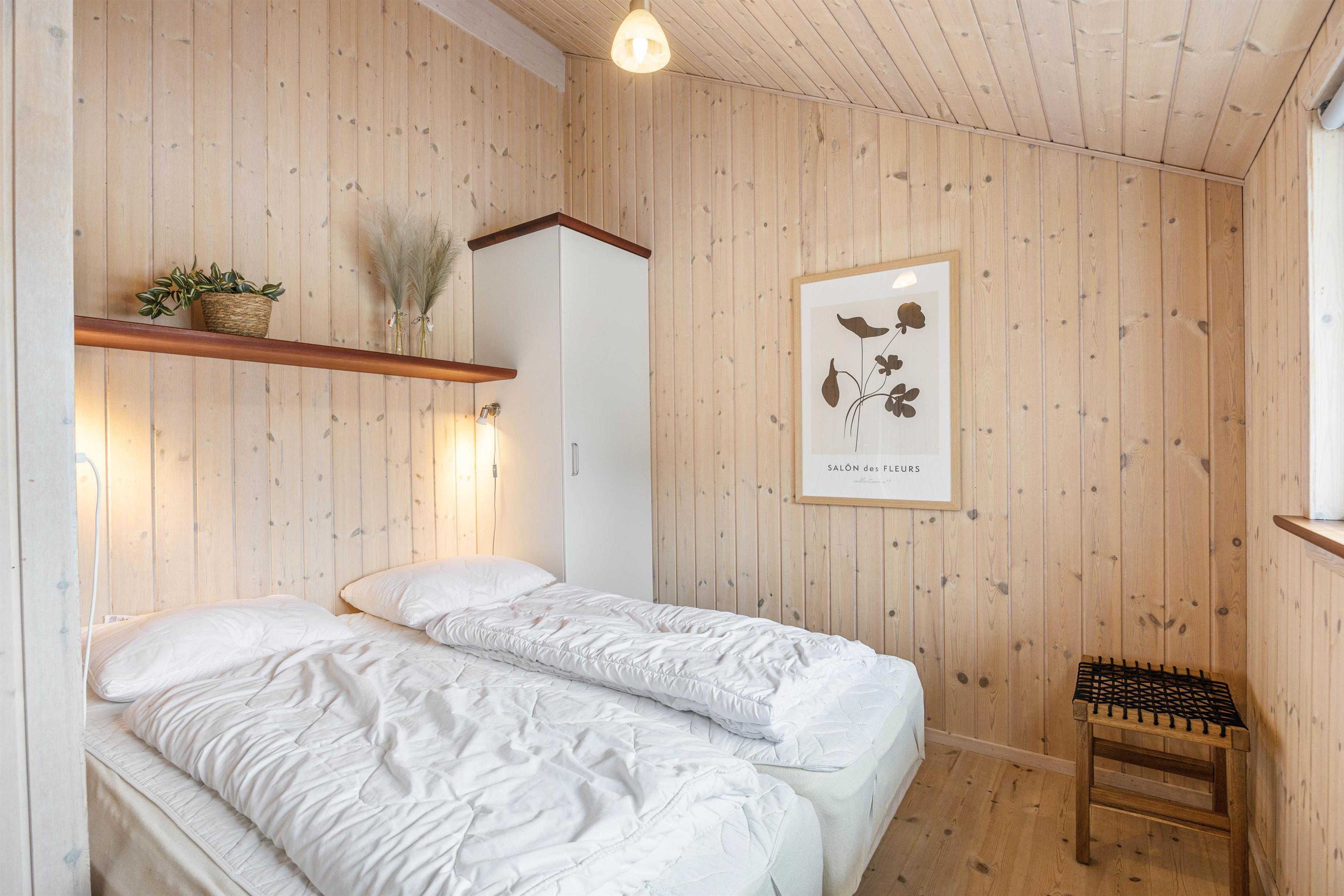Sommerhuset er indrettet med 4 soveværelser, alle med komfortable dobbeltsenge. Praktisk er her 2 badeværelser med gulvvarme, så I undgår morgenkøen. På det ene badeværelse finder I både spabad og sauna, hvor I kan blive varmet godt igennem – også helt perfekt efter en tur ved Vesterhavet.