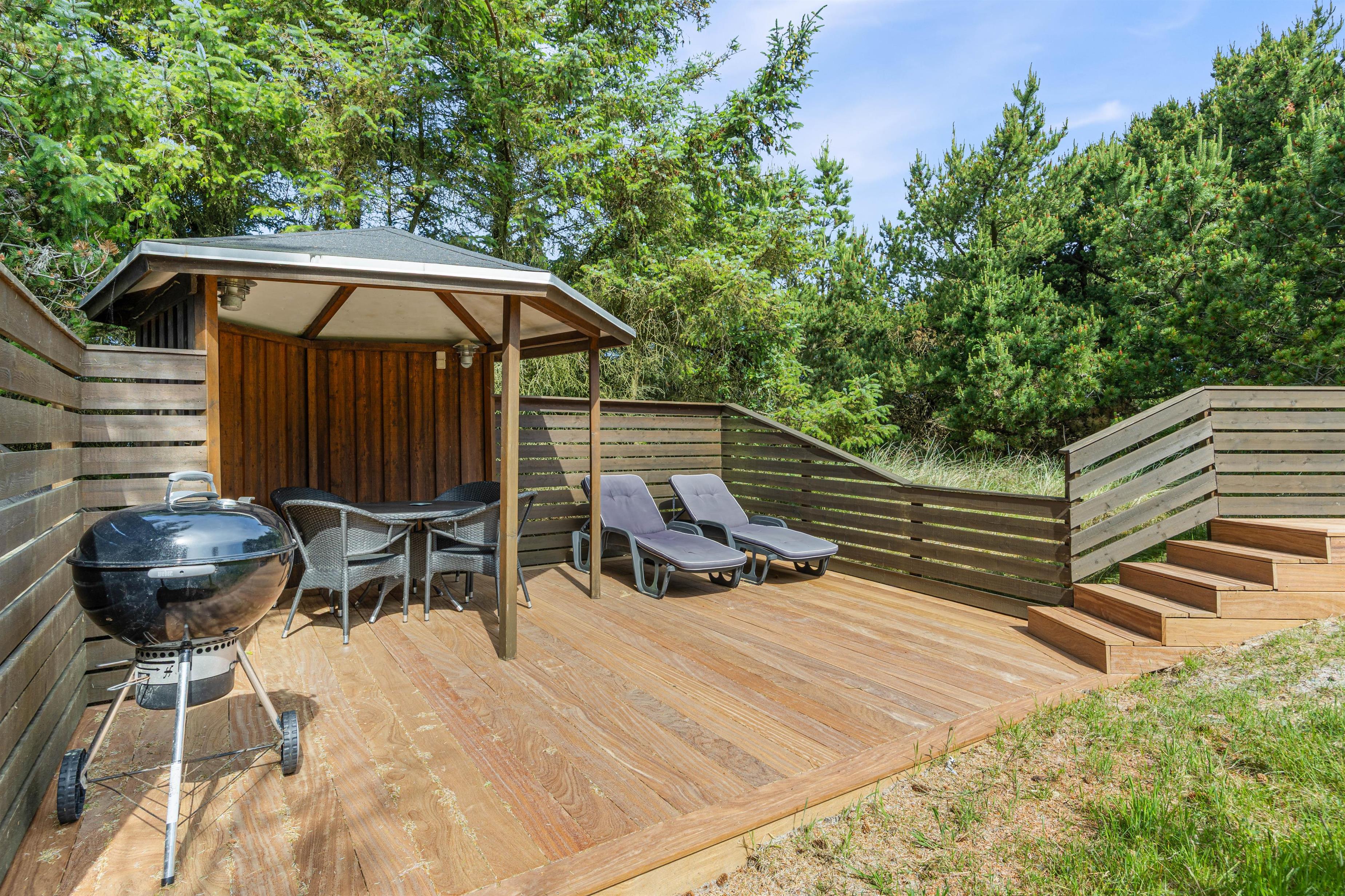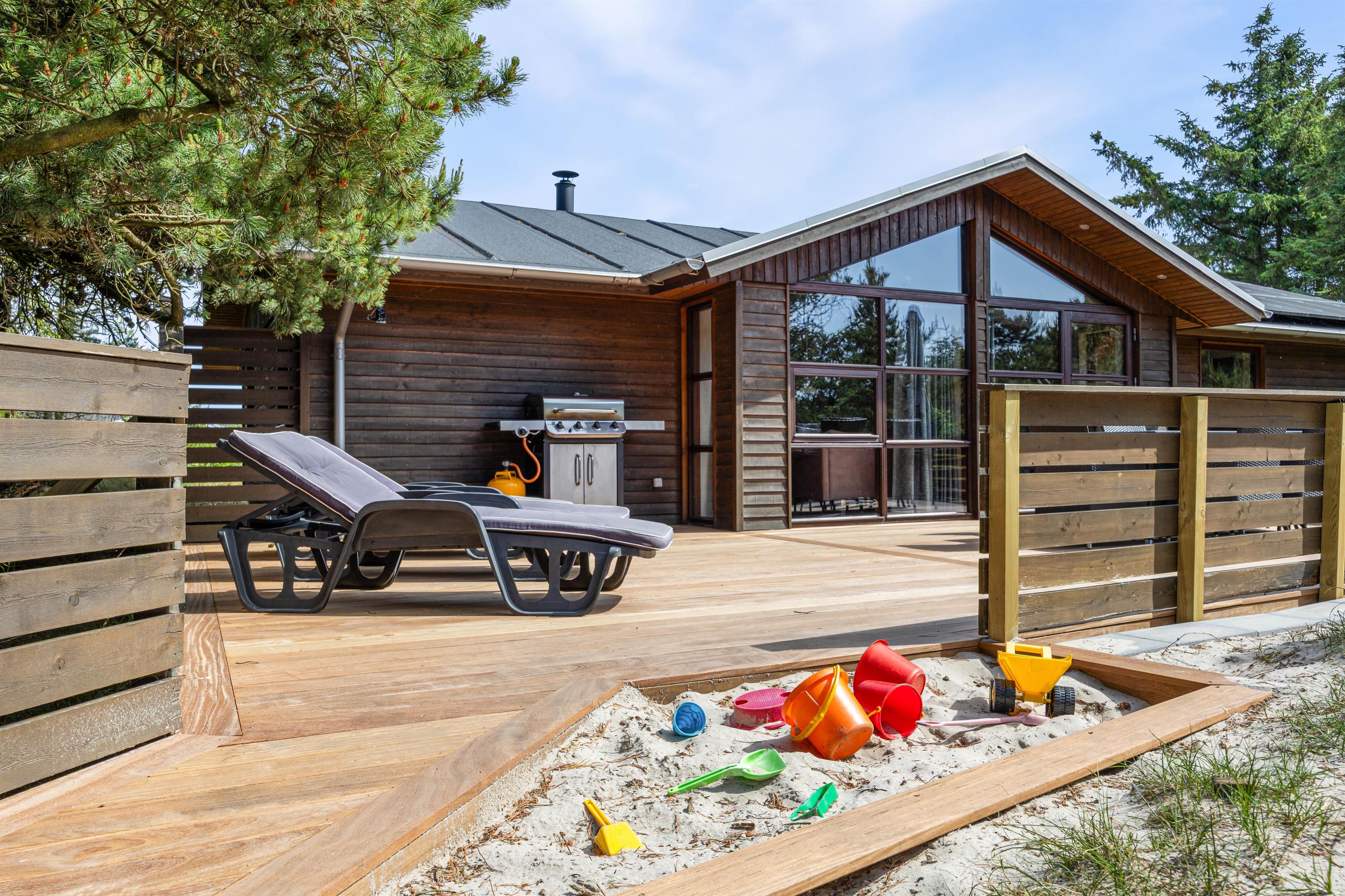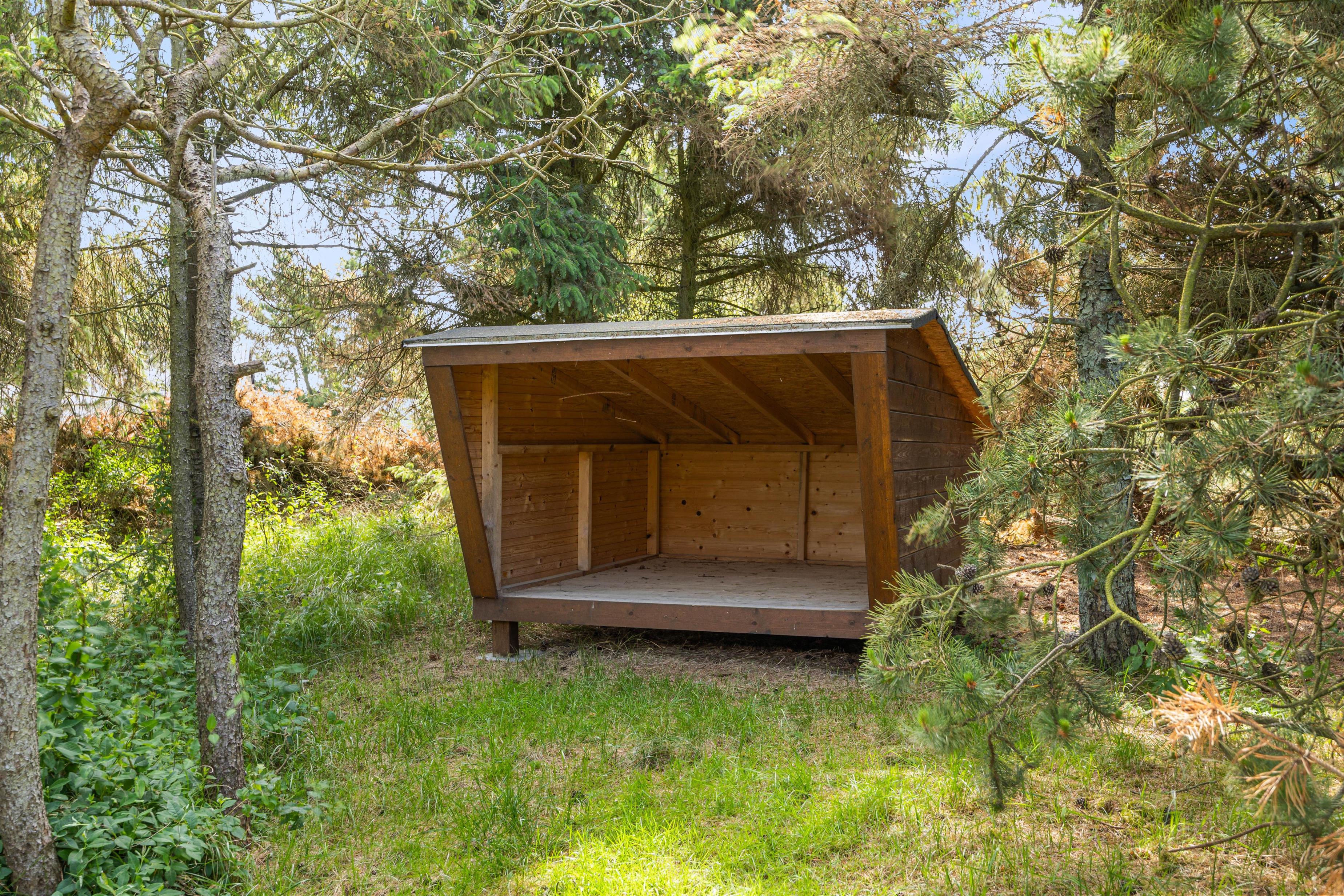 For børnene er der både en sandkasse og en gynge, ligesom den lukkede terrasse er ideel for både mindre børn og hunde. Som et ekstra plus er der en shelter ved sommerhuset, så I kan sove ude i den friske havluft på en lun sommernat.