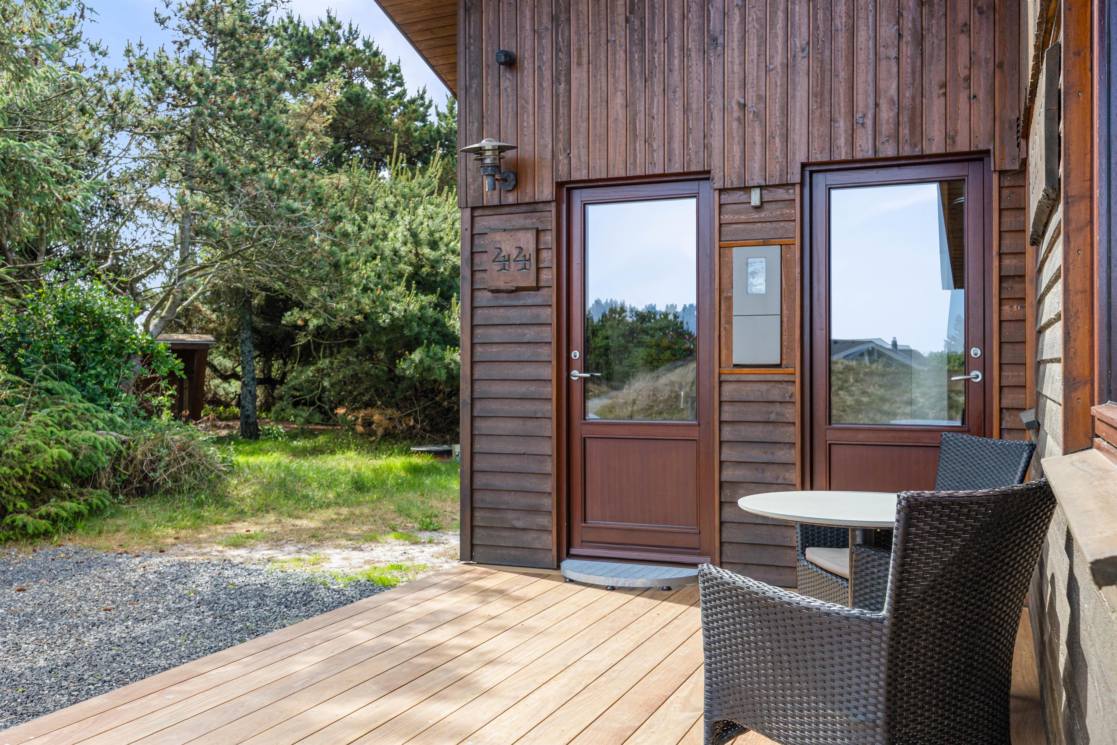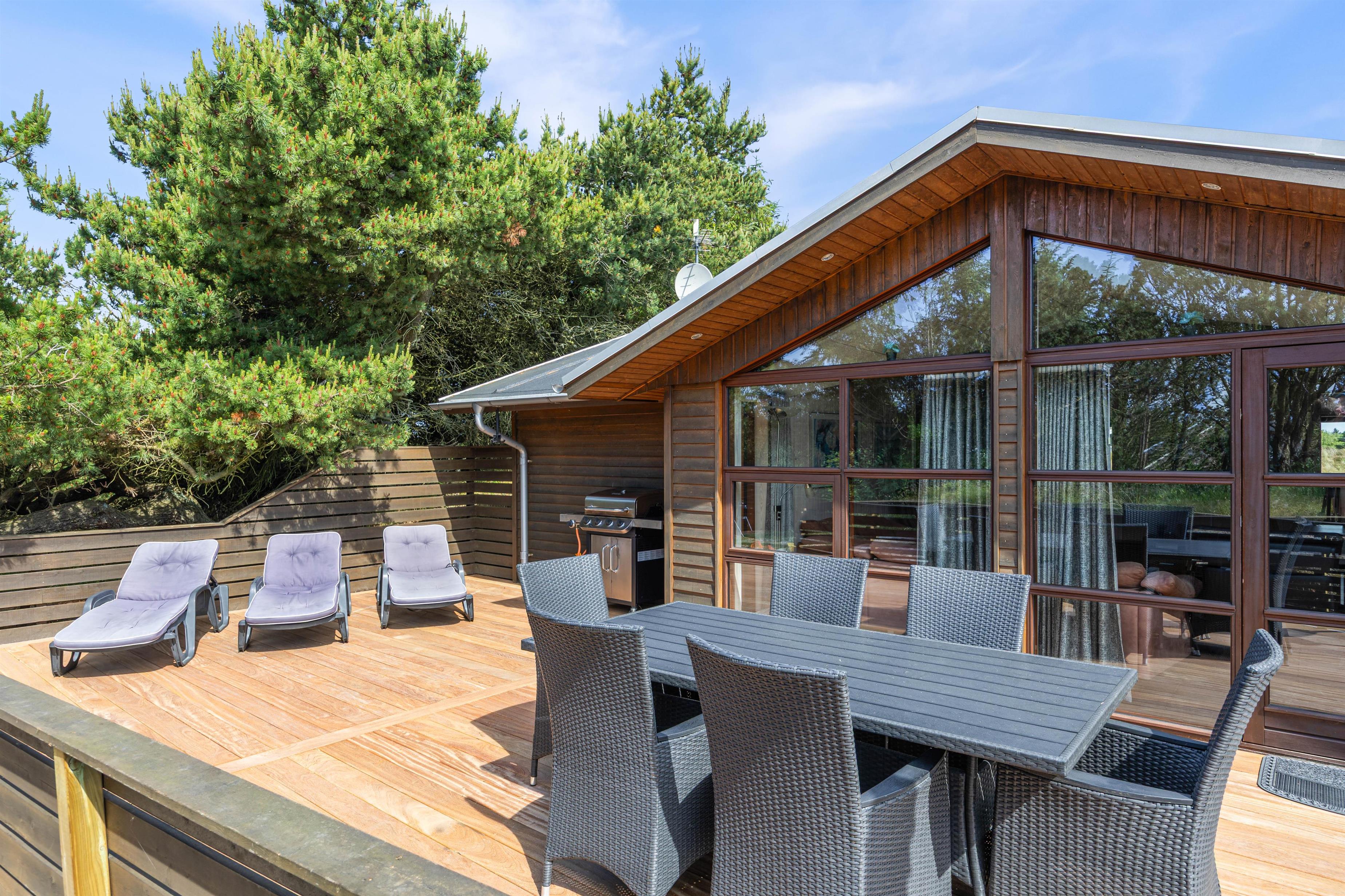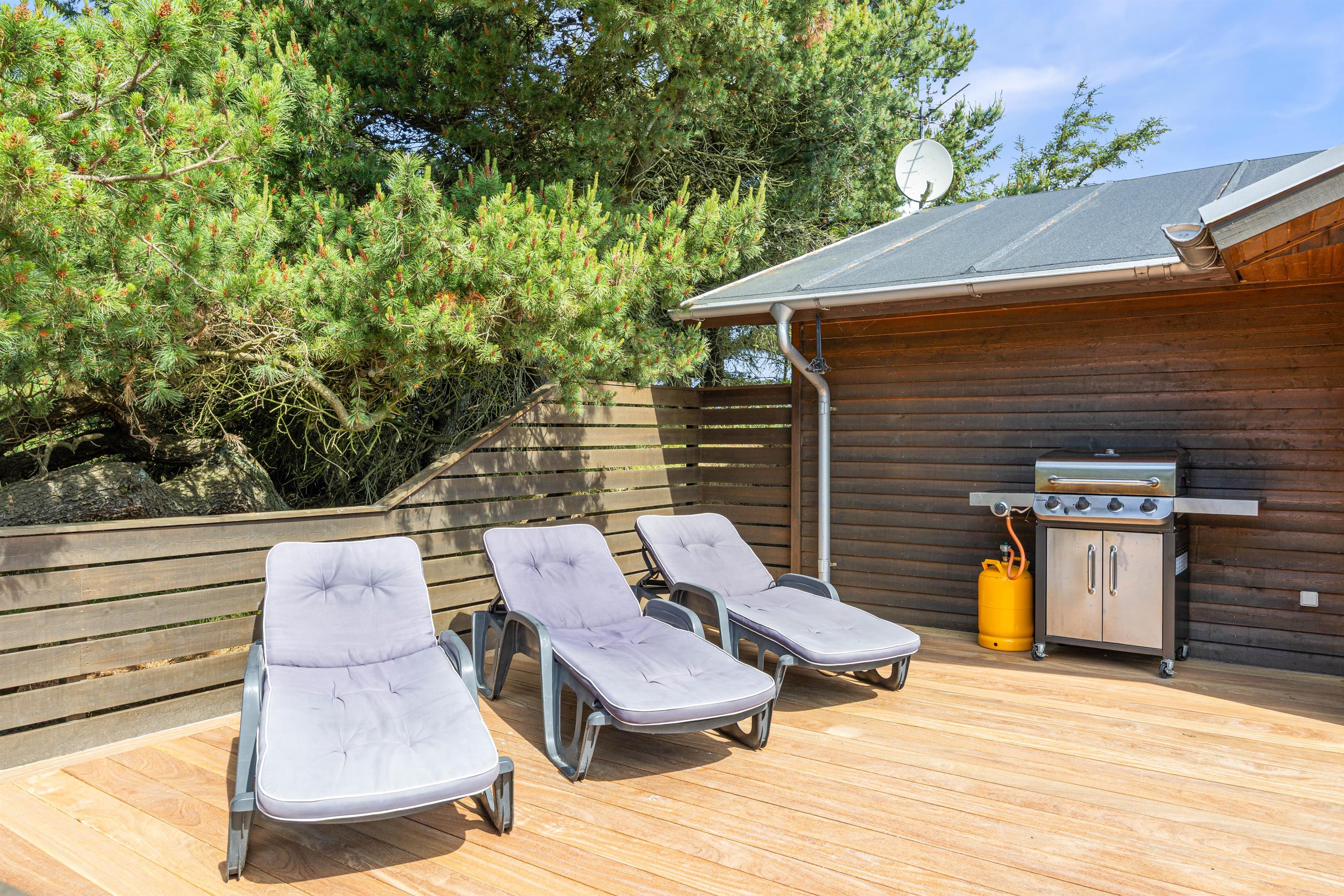 For børnene er der både en sandkasse og en gynge, ligesom den lukkede terrasse er ideel for både mindre børn og hunde. Som et ekstra plus er der en shelter ved sommerhuset, så I kan sove ude i den friske havluft på en lun sommernat.