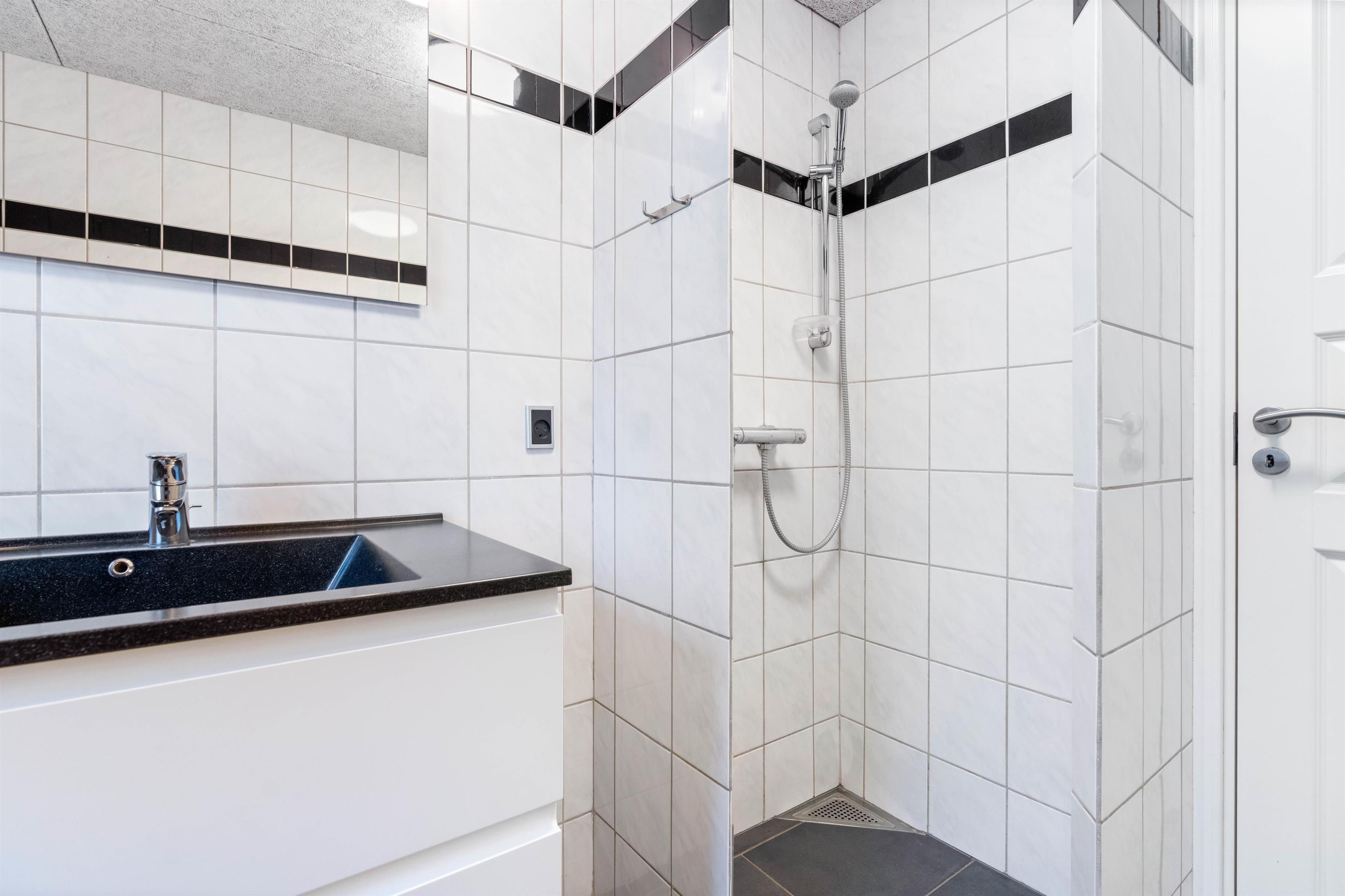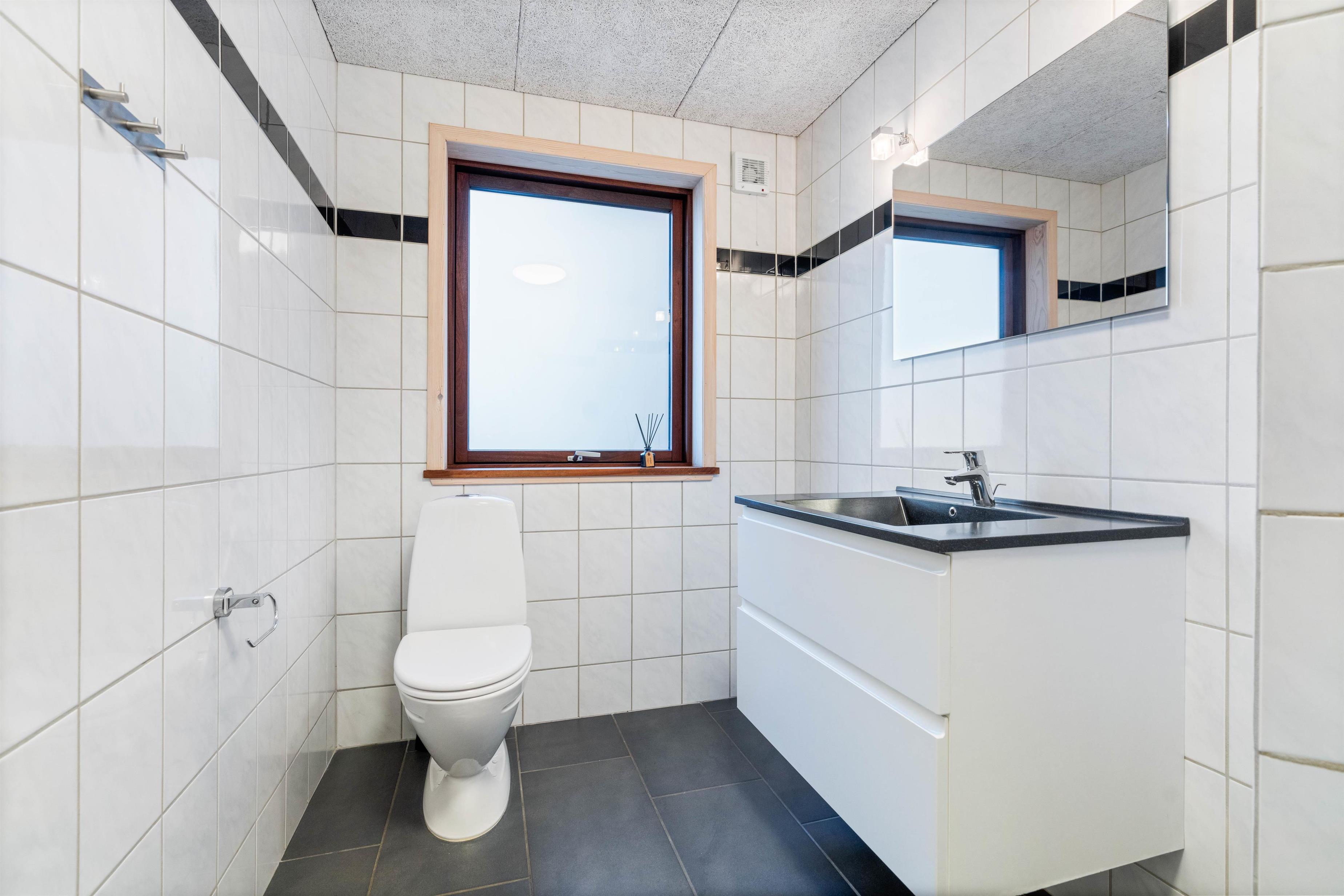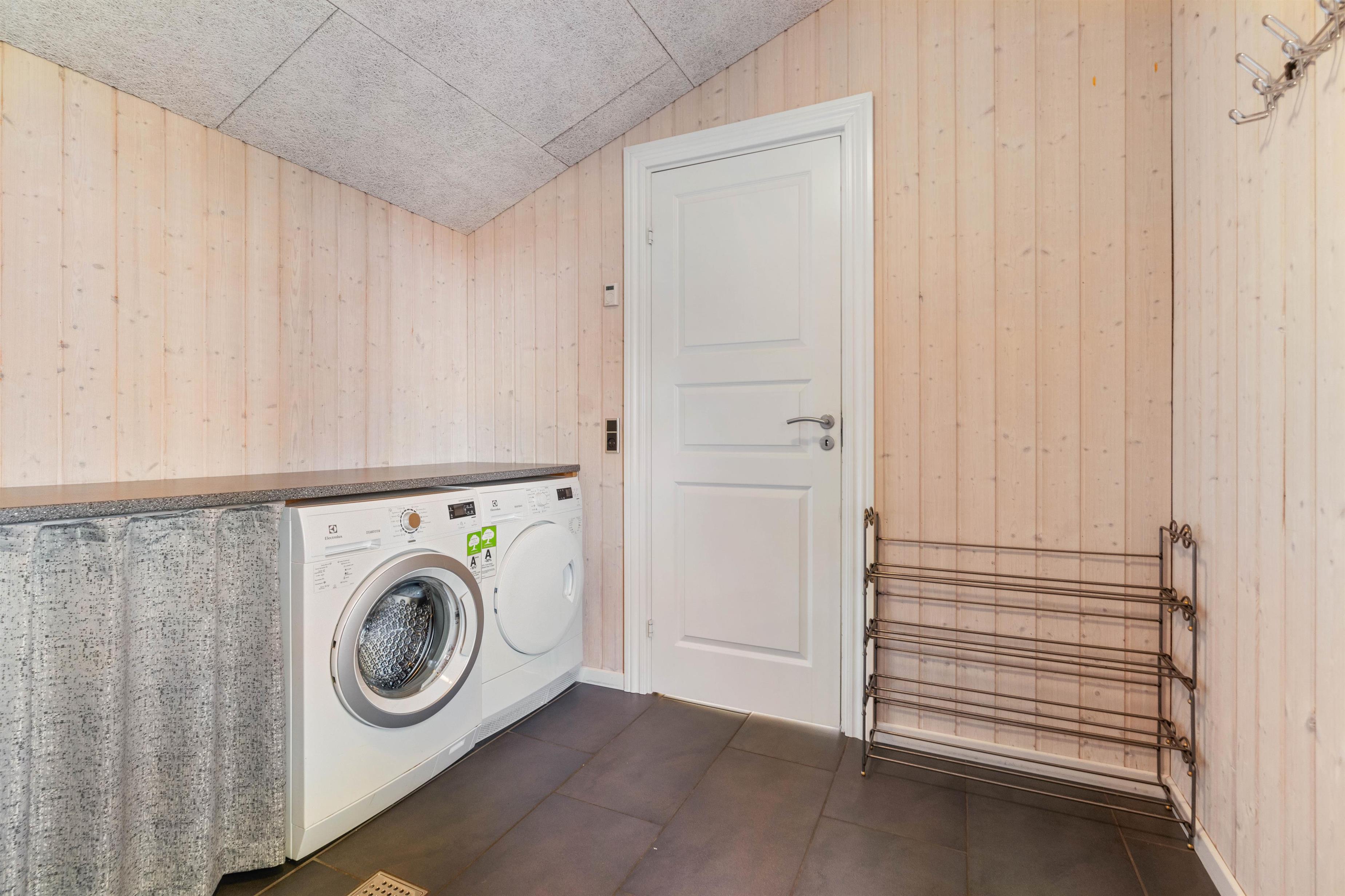 Huset er 120 m2, og der er klinkegulve med gulvvarme overalt. Indgangspartiet er husets brygges, hvor der er plads til overtøjet. Her findes også husets vaskemaskine og tørretumbler.