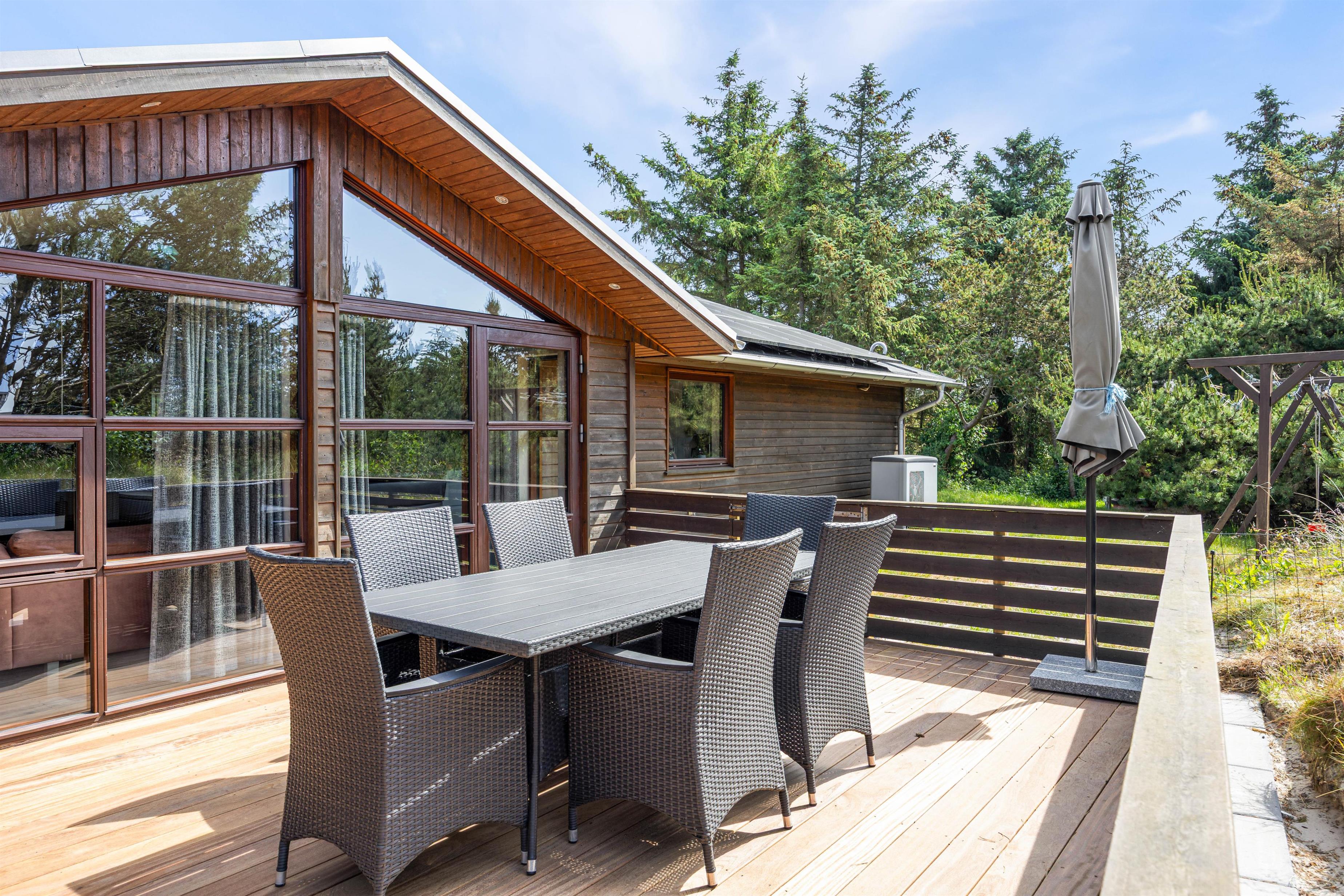Super flot og velbeliggende sommerhus med masser af udstyr og komfort. Ferieuset ligger roligt og uforstyrret på en stor og naturlig afskærmet grund. Her er en stor skøn lukket terrasse, perfekt til grill og afslapning. Gratis internet og 2 hunde tilladt. Gratis varme.