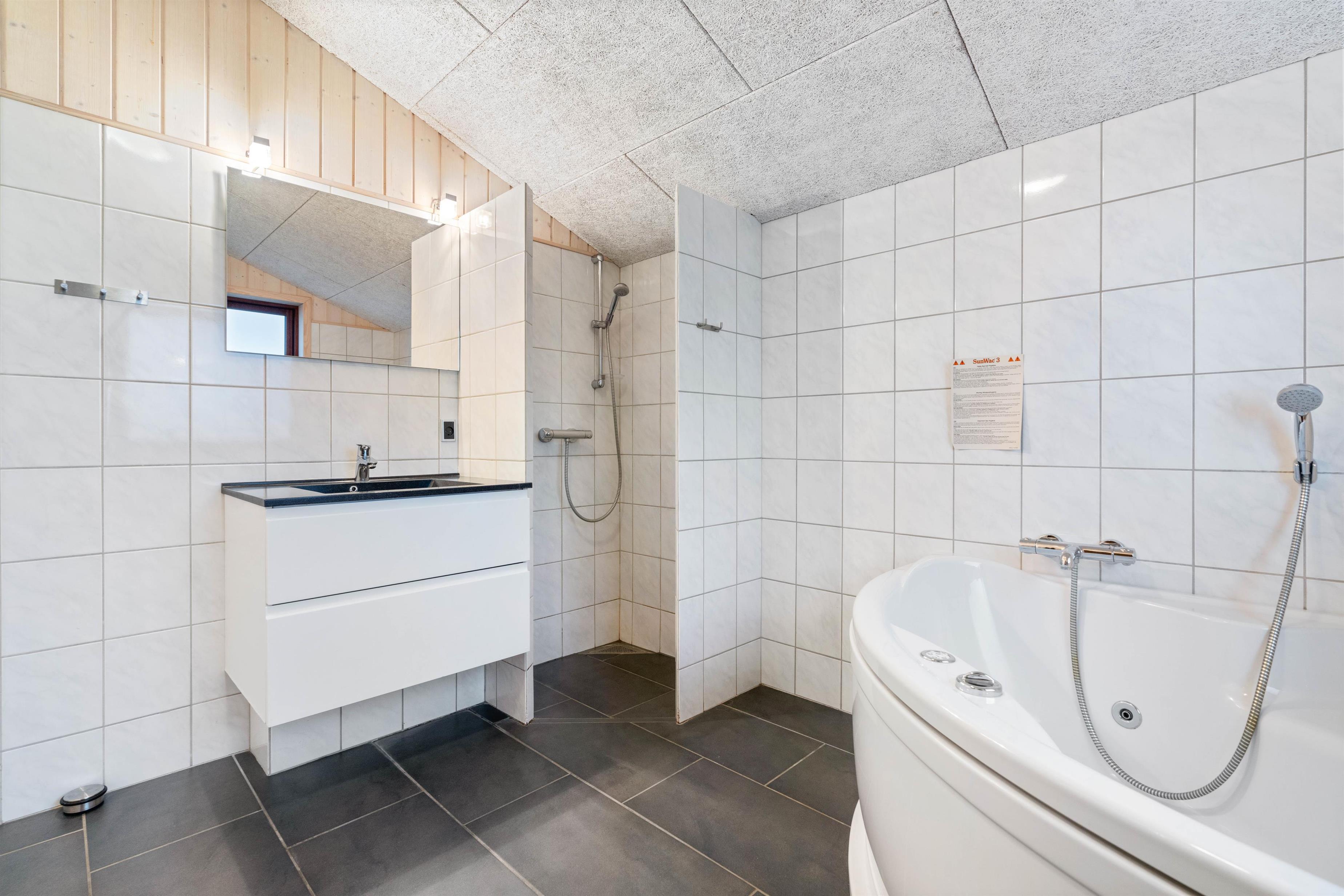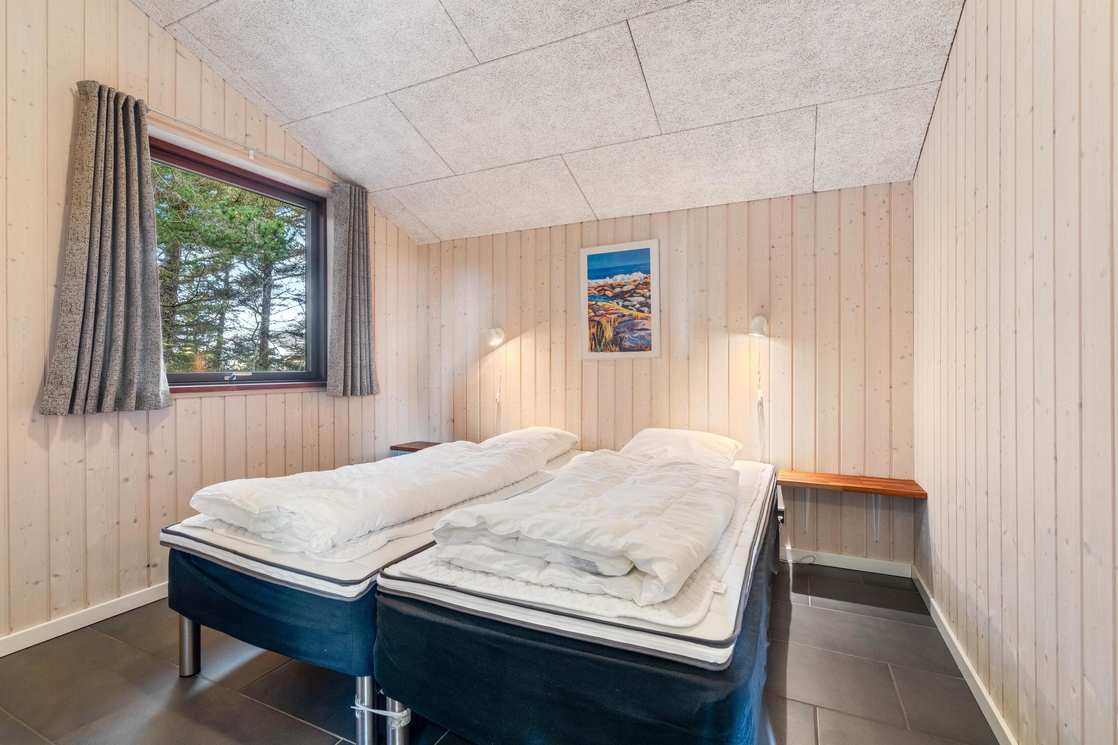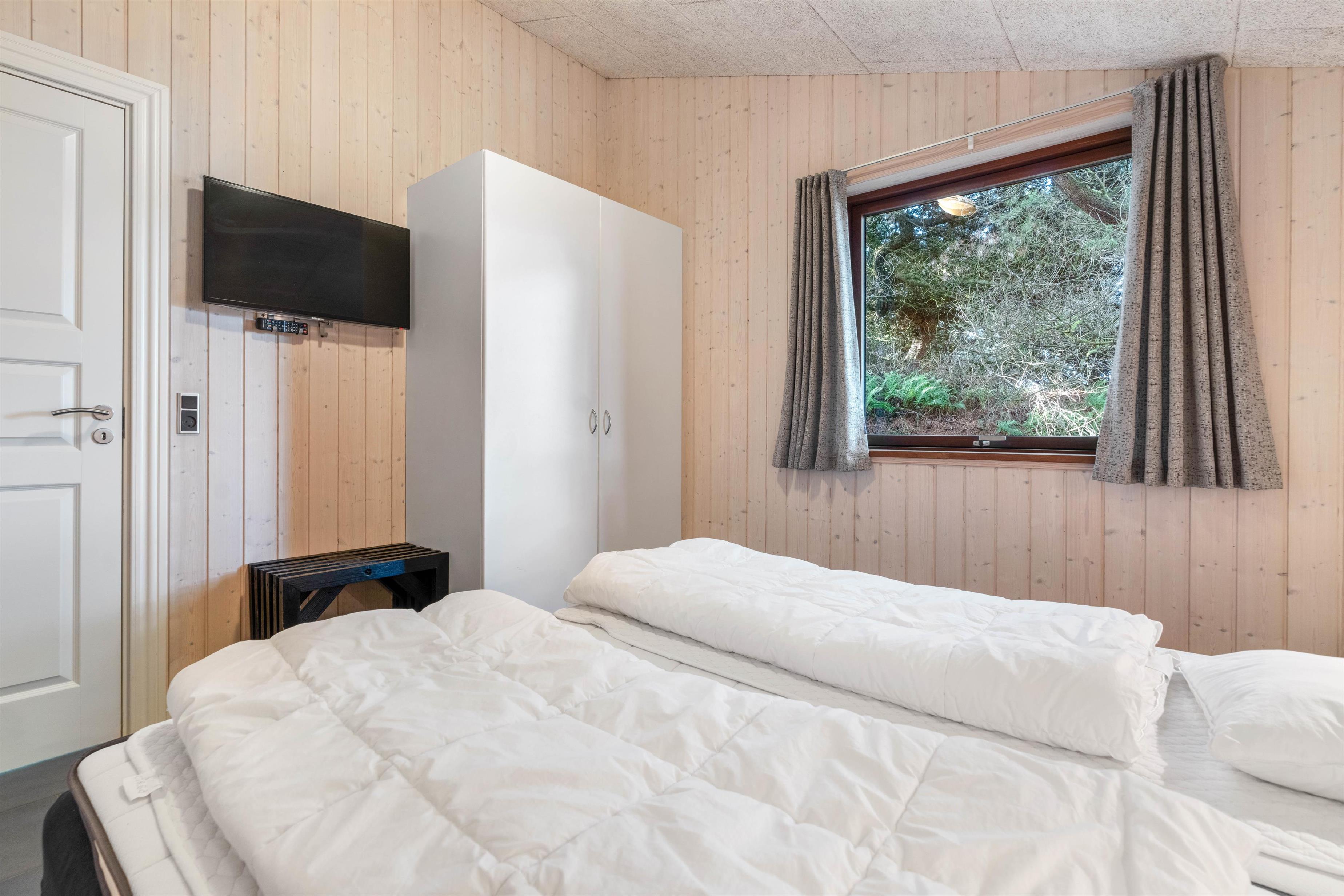 Der er 4 soveværelser, 2 af værelserne har dobbelt senge og fladskærm og de 2 sidste har hver 2 enkelt senge. Der er 2 badeværelser, begge med bruseniche. Det store badeværelse har endvidere en 2 pers. hjørnespa og en sauna.
