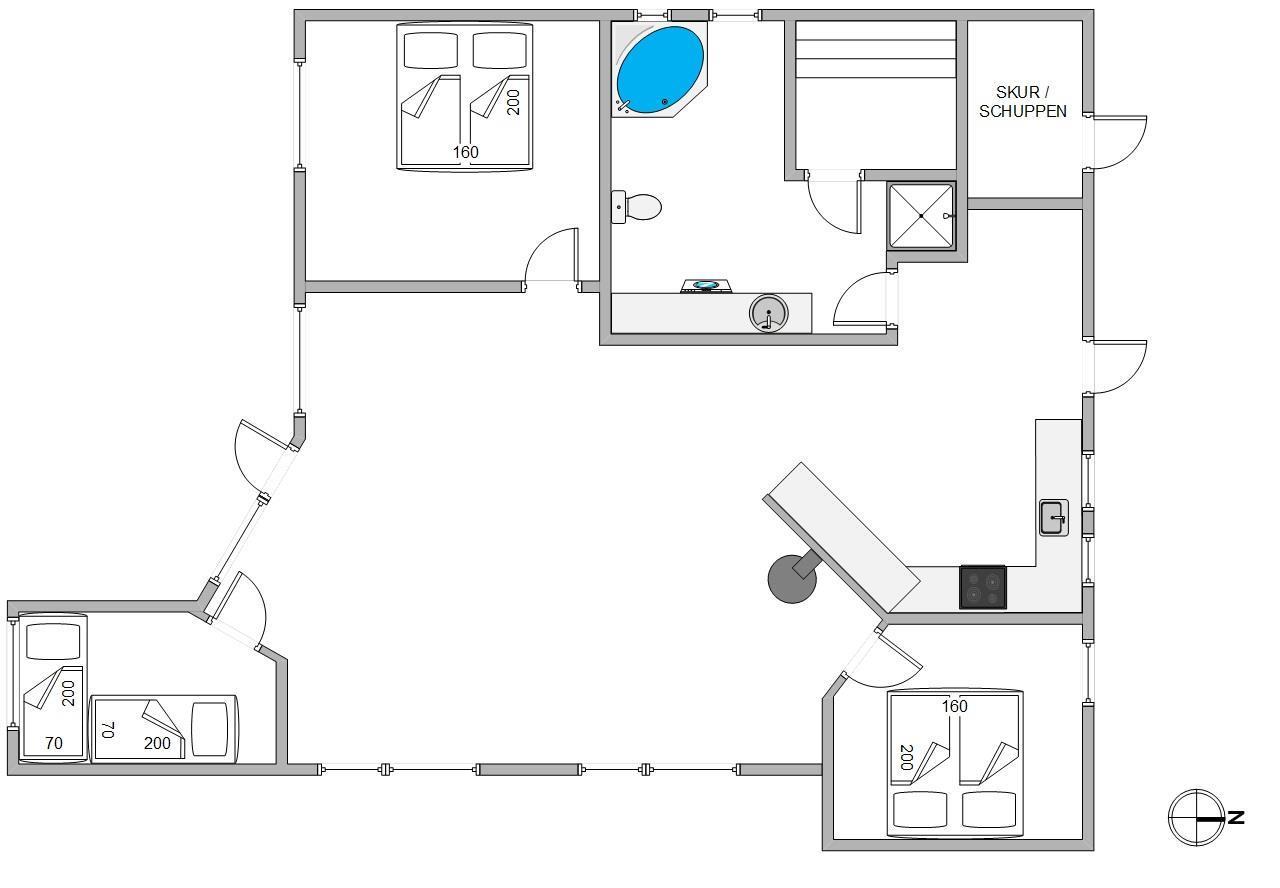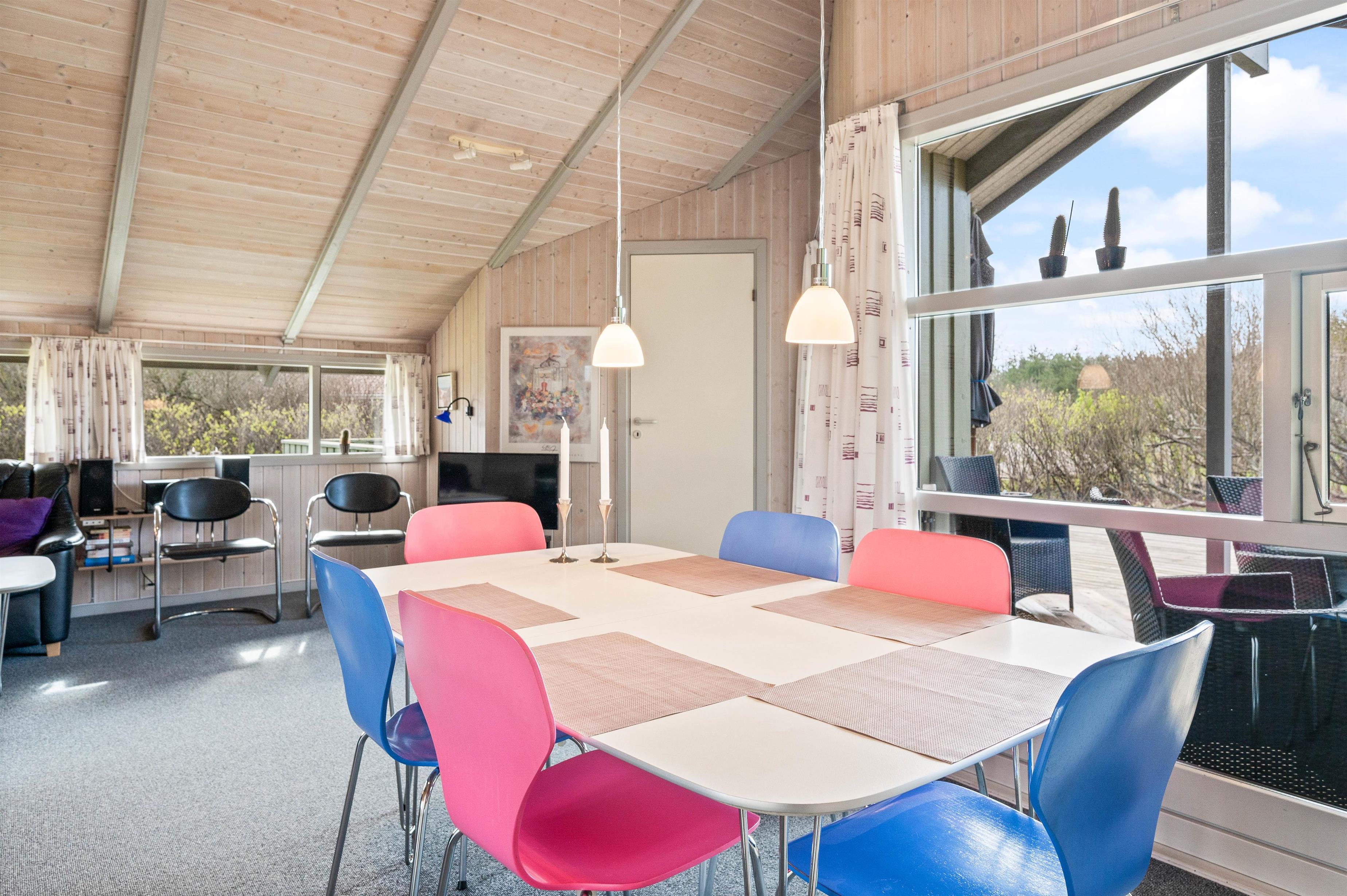 I vil føler jer hjemme, straks I træder ind ad døren på Humlegårdsvej 4 O. Det fine lysindfald gennem vinduespartierne og de glade farver medvirker til den varme velkomst. I sofagruppen kan I slappe af og eventuelt se en film sammen via chromecast – eller du kan trække dig tilbage med en god bog. Ilden i brændeovnen varmer også ved spisebordet, hvor I indtager måltiderne eller hygger jer med et brætspil. Det praktisk indrettede køkken indeholder alt, hvad I behøver for at forkæle hinanden med lækre hjemmelavede måltider. I badeværelset kan I arrangere en lille wellnessaften med sauna og spa. Der er også vaskemaskine til rådighed for jer, så I kan få frisket håndklæderne op i løbet af ferien. De 3 soveværelser er placeret i hver sit hjørne, så I alle kan nyde en uforstyrret nattesøvn i den friske vesterhavsluft.