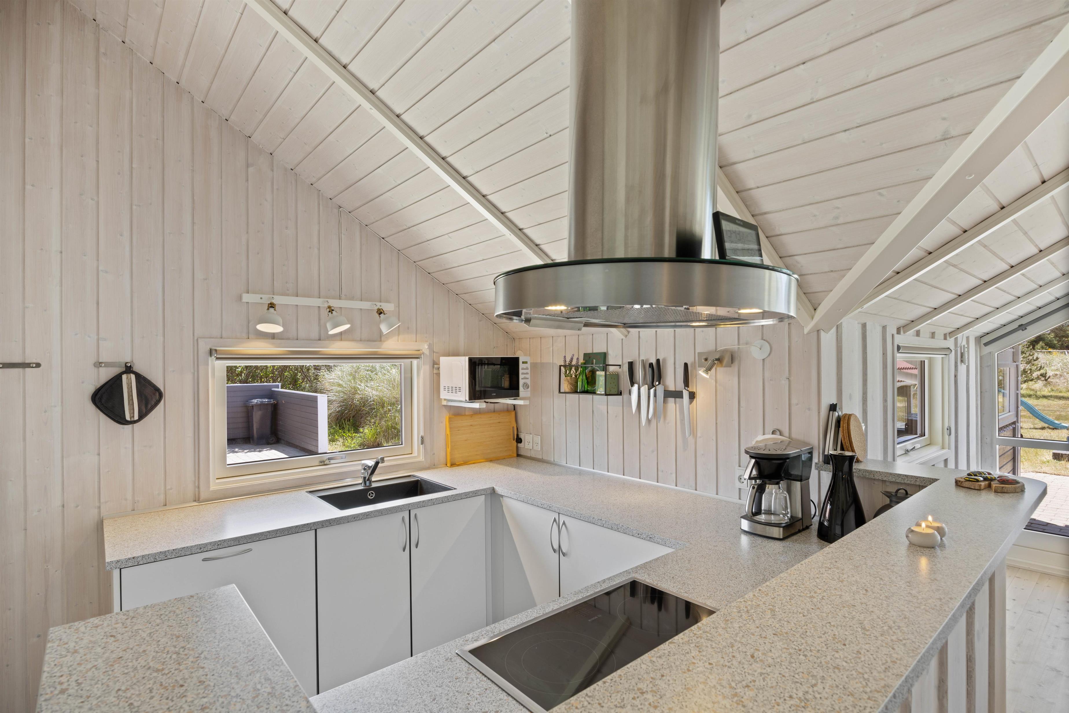 I det åbne køkken er alt, hvad I behøver for at tilberede lækre måltider, bl.a. induktionskomfur, mikrobølgeovn og opvaskemaskine. I den separate fryser på 60 l kan I opbevare en fisk eller to, hvis I dyrker lystfiskeri på ferien.