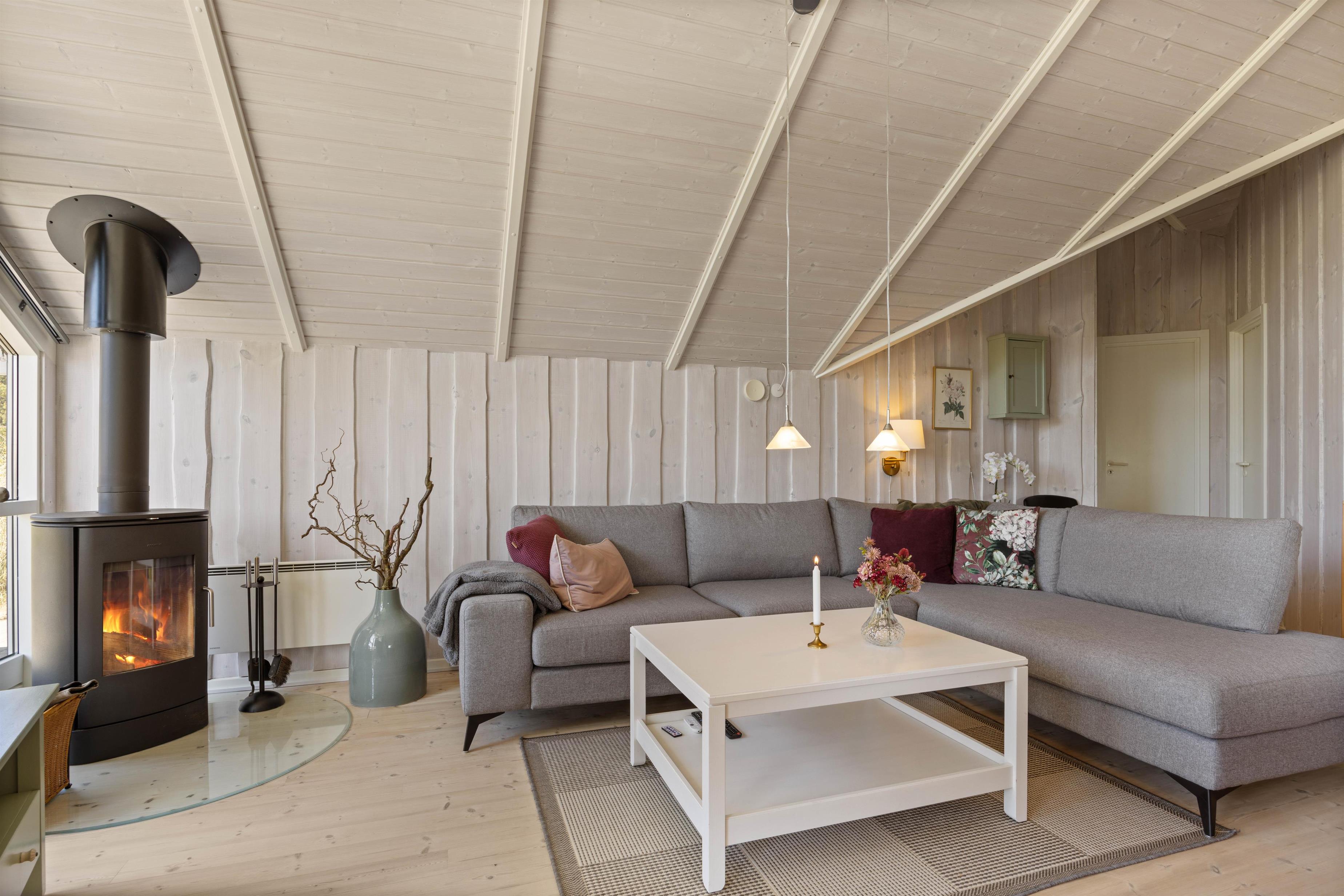 I dette lyst og venligt indrettede feriehus er der tænkt på alle familiemedlemmer. I opholdsstuen kan I gøre jer det behageligt og se en film sammen i sofaen – husk at sætte popcorn frem. Fælles spilleaftener ved spisebordet er også et hit. Den knitrende ild i brændeovnen skaber en hyggelig atmosfære, og sætter lige prikken over i’et i forhold til feriestemningen.