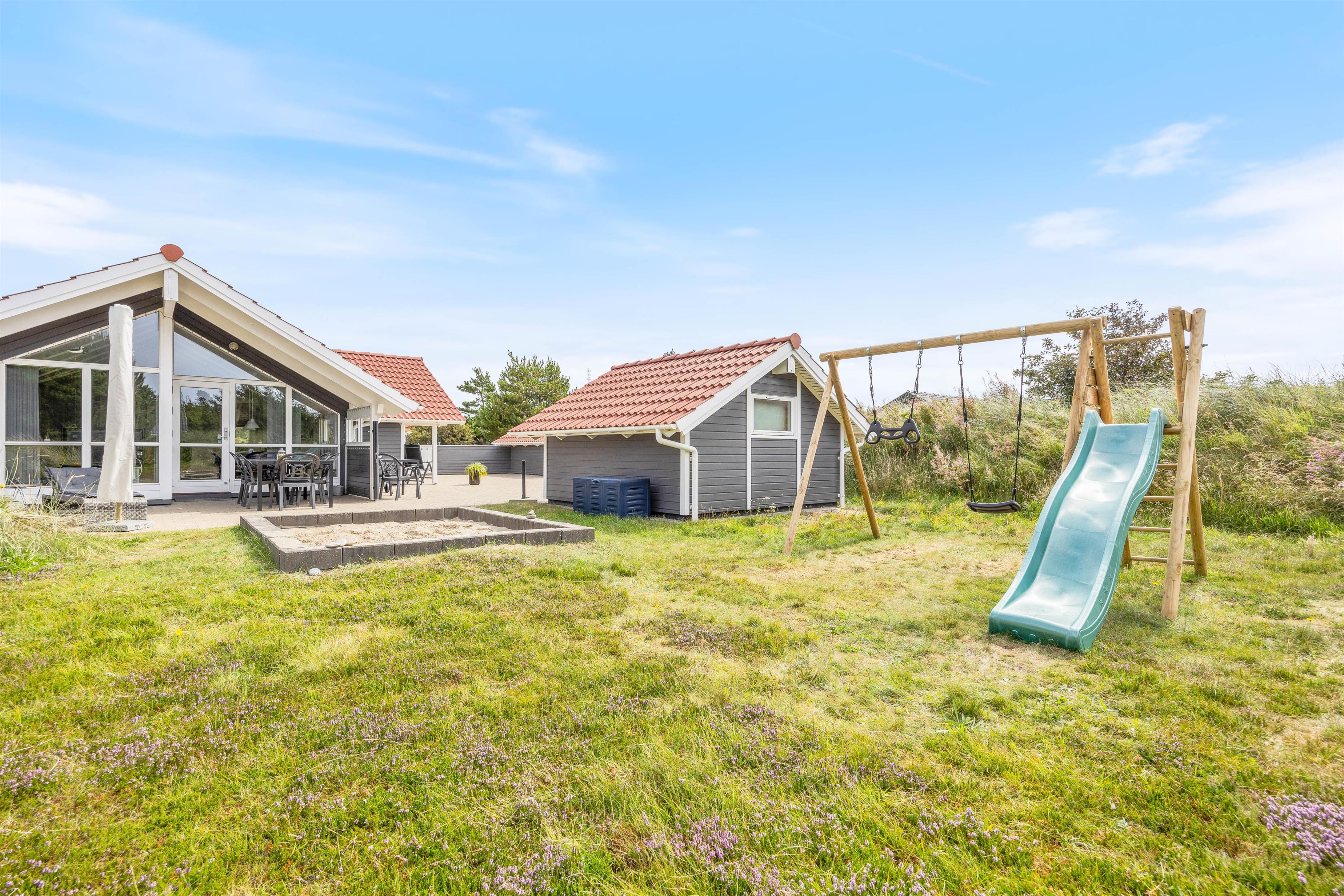 Søger I et familievenligt sommerhus, hvor I kan tage hunden med, så kan Bjerregårdsvej 114 være det helt rigtige for jer. Her er gynger, rutsjebane og sandkasse til børnene og indendørs er der wellness i form af sauna og spa.