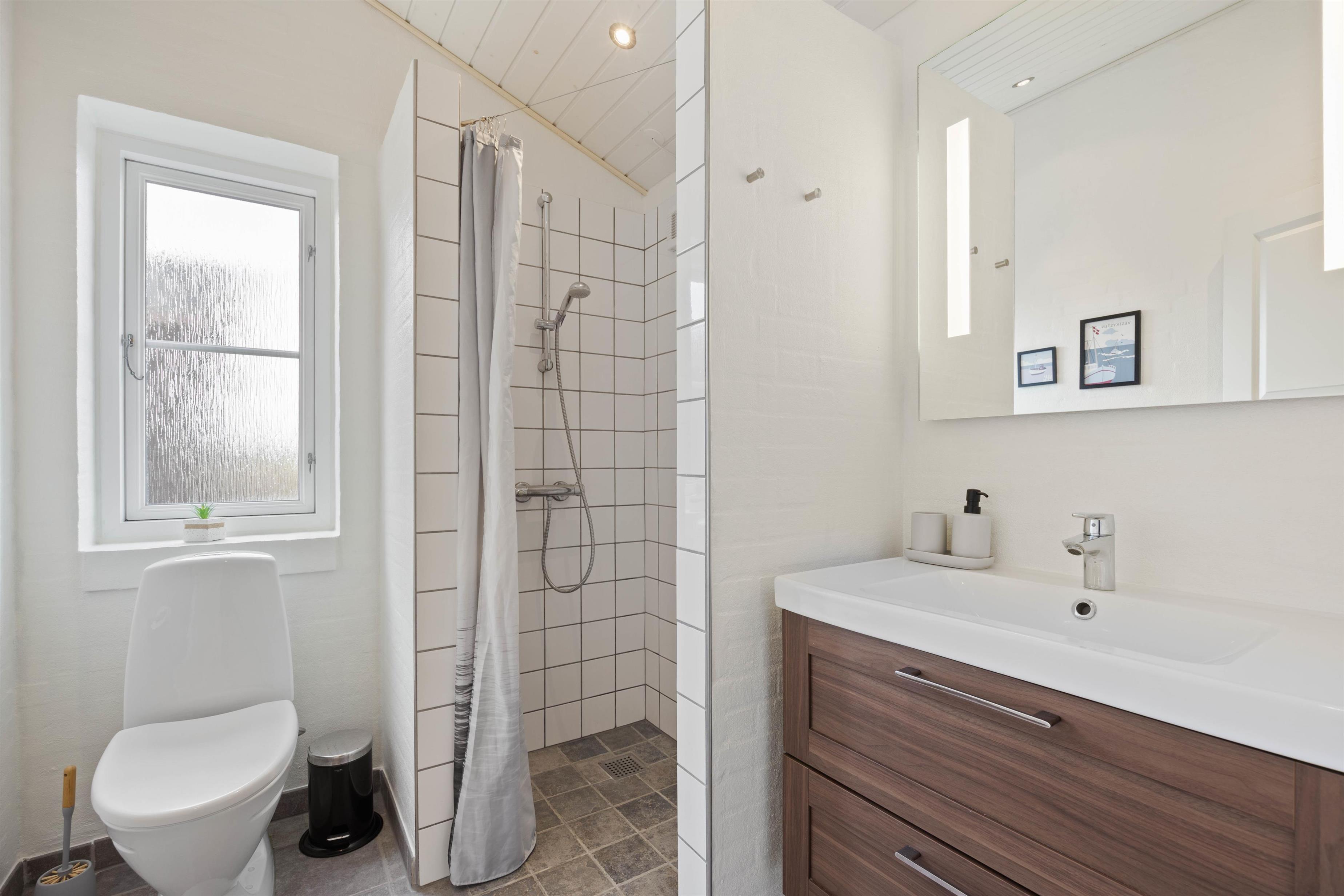 Dette smukke, velindrettede luksushus ligger midt i den skønne natur i Bjerregård. Kun 350 meter til stranden og et stenkast fra et stort ubebygget hedeområde, som indbyder til lange gåture eller blot kan nydes fra terrassen. Rundt om huset er der nemlig en fliseterrasse, hvor aftensolen kan nydes under et måltid, som er blevet tilberedt på grillen. Imens de voksne nyder et glad vin, kan hundene løbe frit rundt på den indhegnede terrasse og børnene hygge sig i sandkassen eller ved det lille legetårn, der er få skridt fra huset.