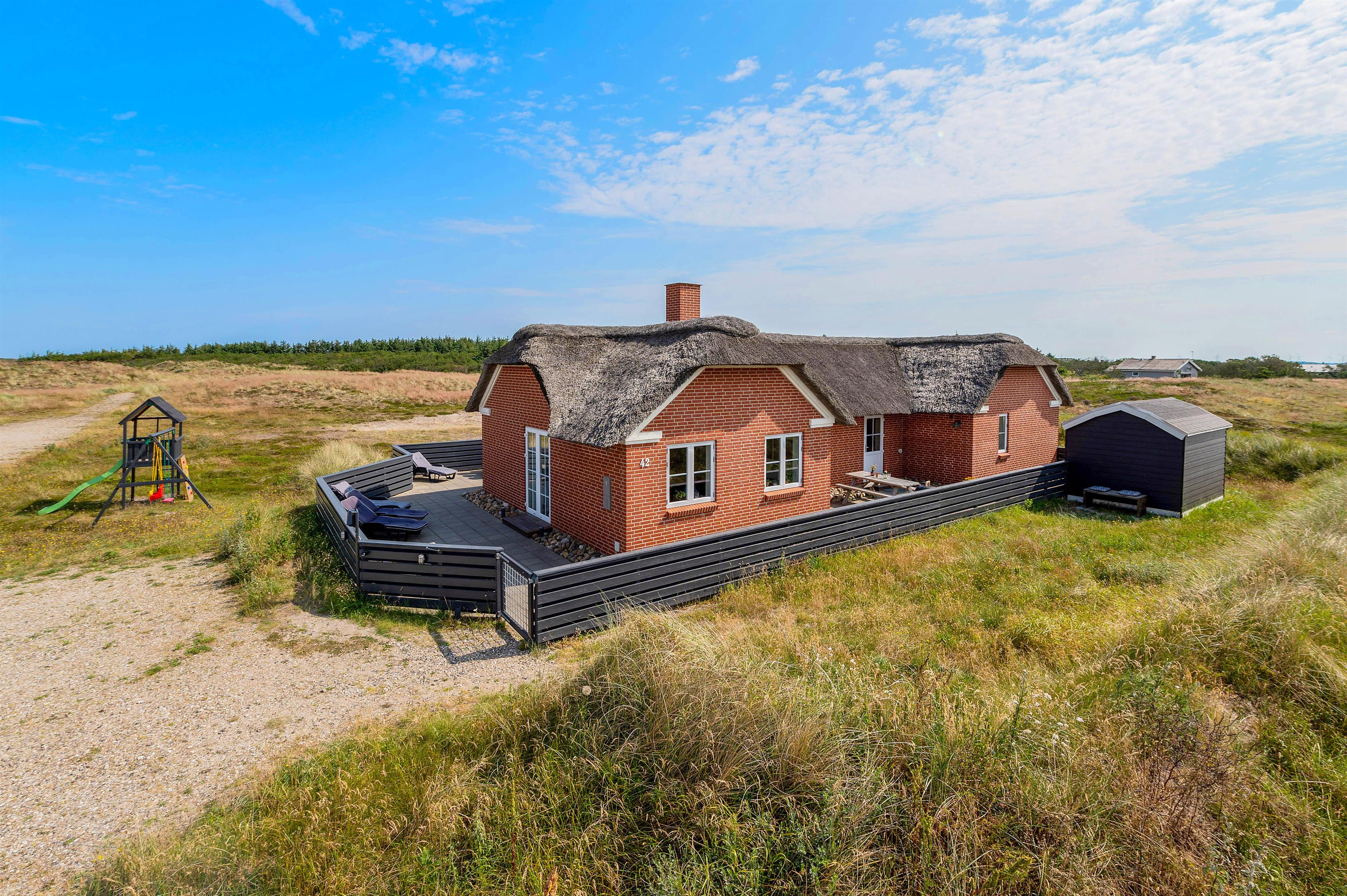 Et smukt og velindrettet luksushus, som kan danne rammen om den perfekte ferie. Huset er bygget i klassisk sommerhusstil, har et stort og luftigt opholdsområde og er smagfuldt møbleret i lys og venlig stil. Huset ligger dejligt nær Vesterhavet og et stort hedeområde i Bjerregård.