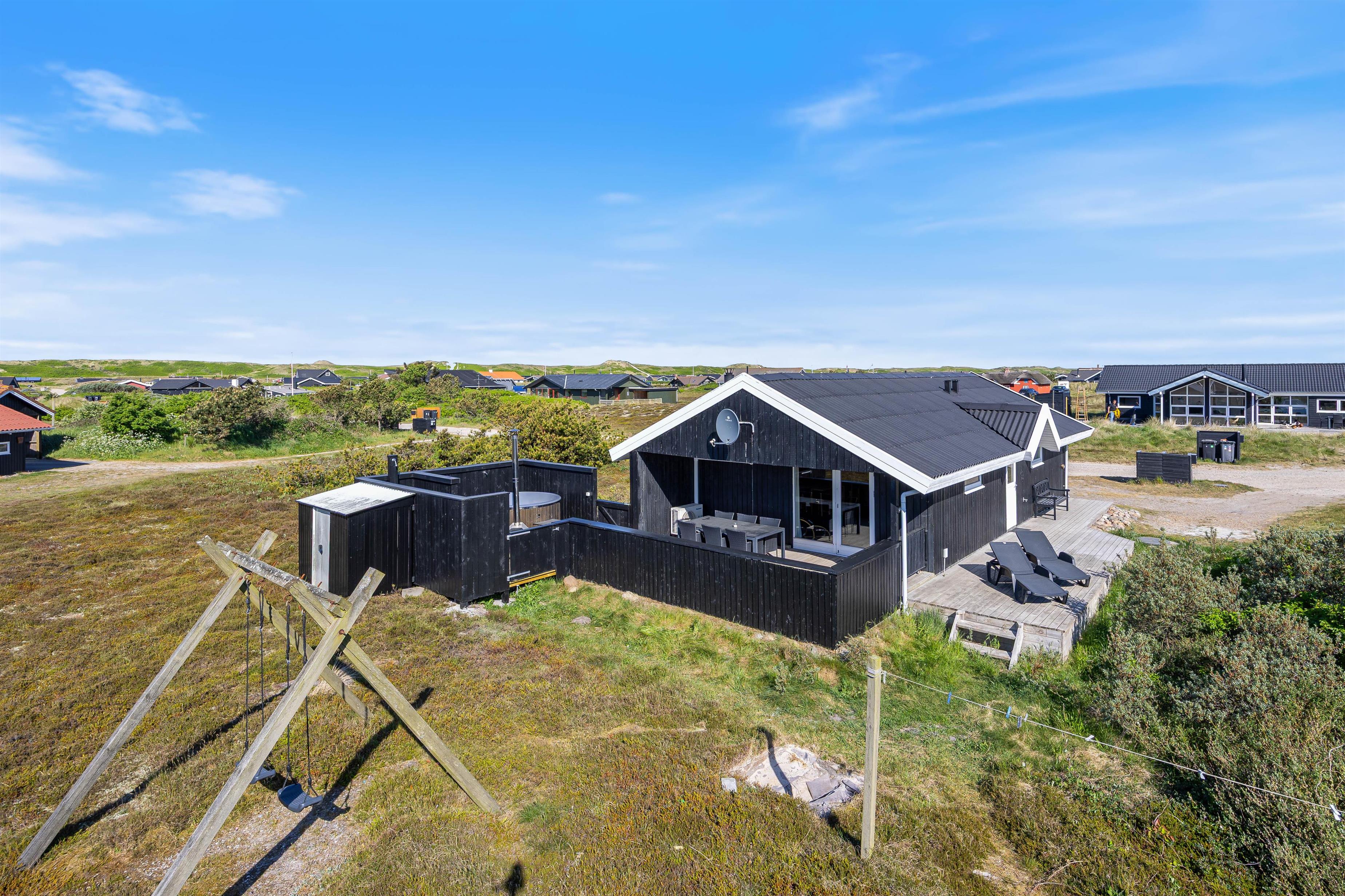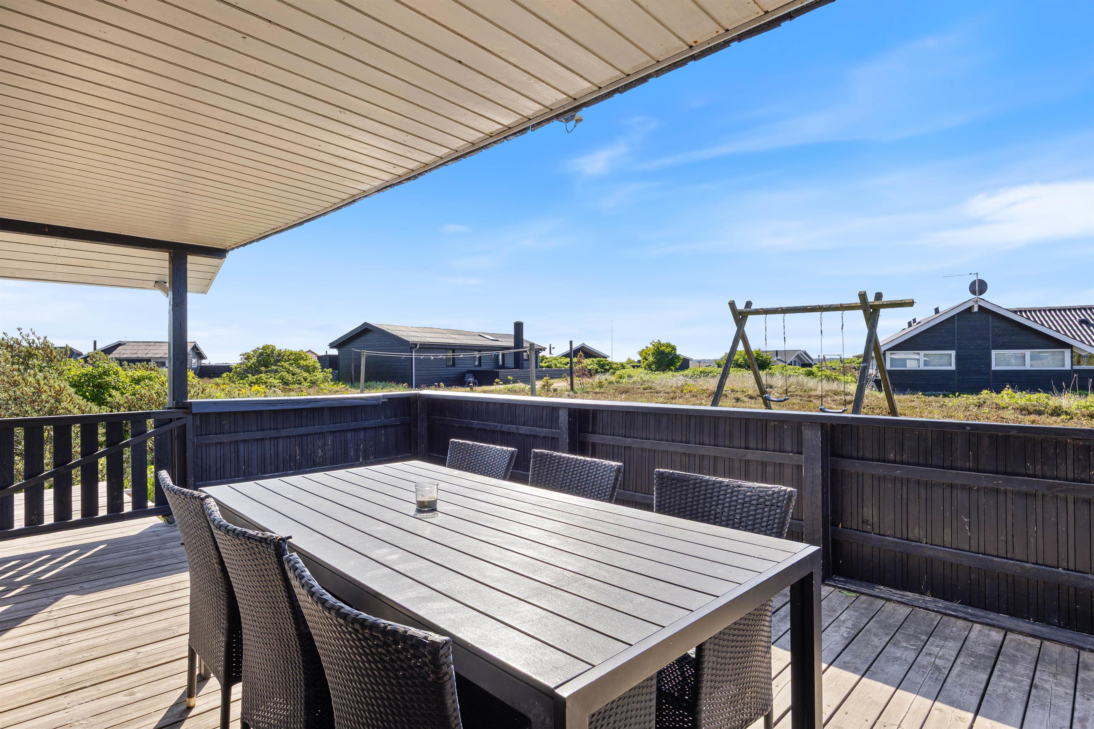 Muligheden for at lukke terrassen af er specielt ideel, hvis du holder ferie med småbørn eller hund. På den måde kan du nemlig godt lukke øjnene i 5 minutter under solbadningen eller læsning, idet eventuelle eventyrere ikke så let kan slippe af sted på opdagelsesrejse. Til familiens yngste er der både sandkasse og gyngestativ på naturgrunden.