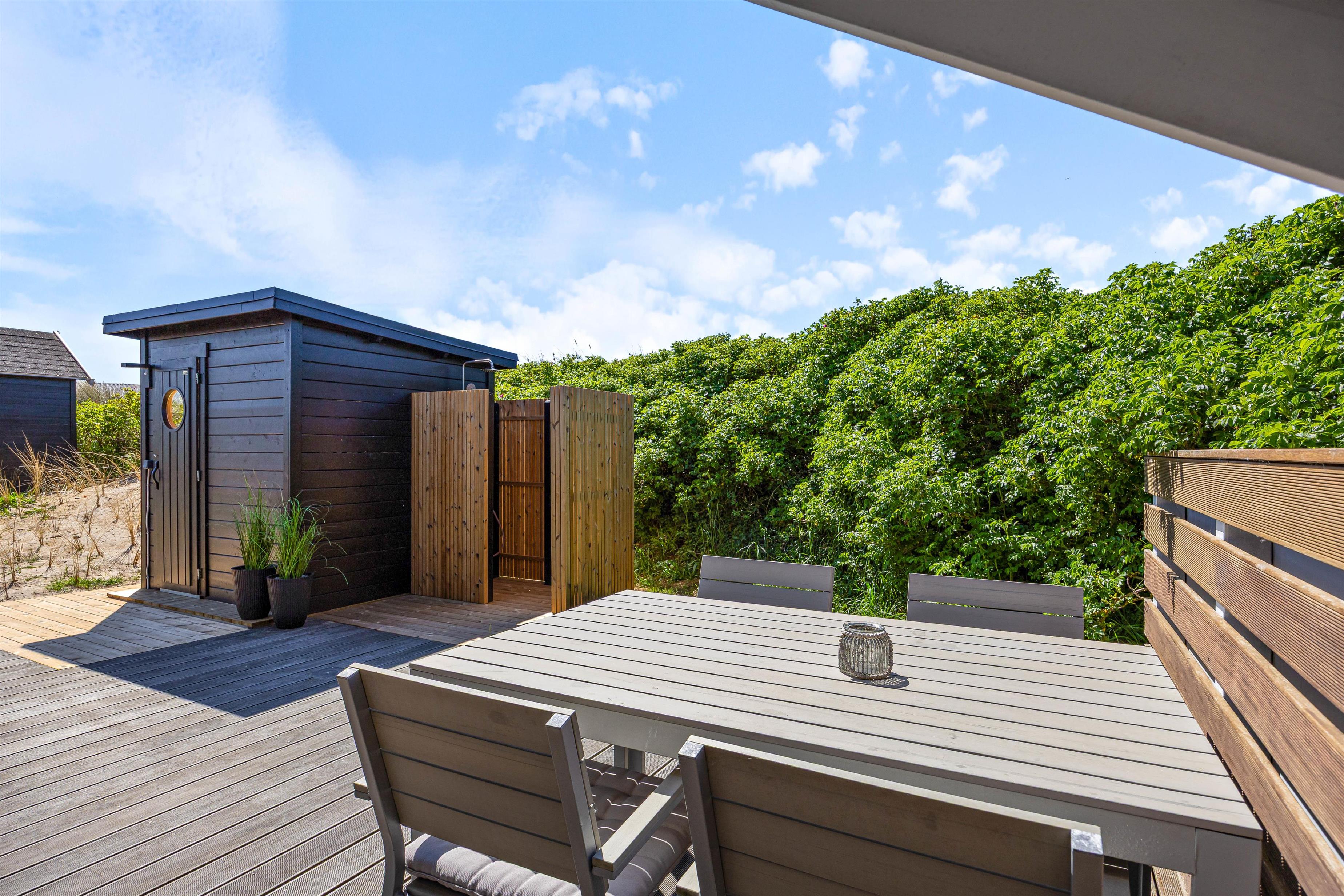 Skøn terrasse med udesauna, udebruser og vildmarksbad