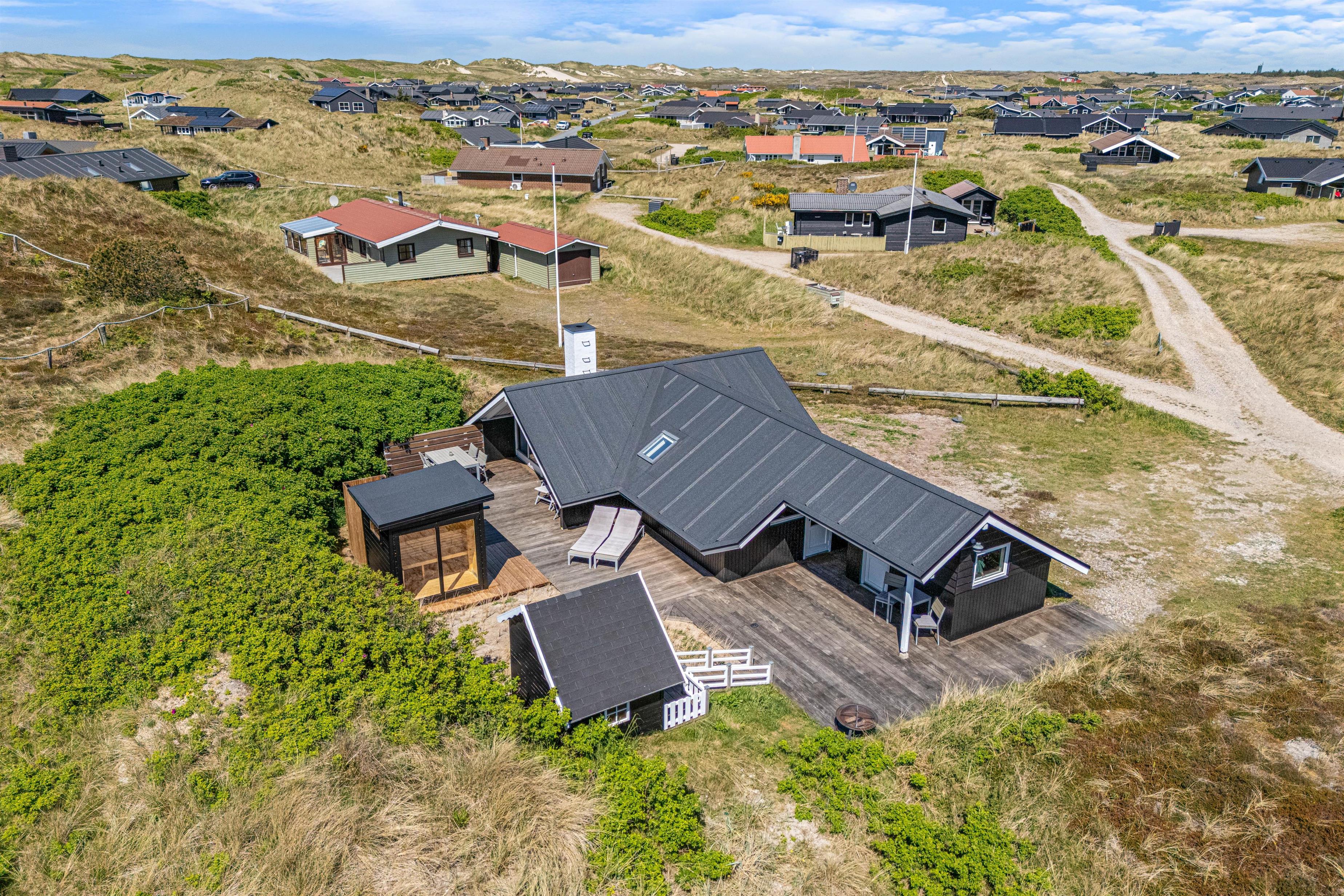 Dette skønne sommerhus til 4 personer på Julianevej 104 fremstår særdeles indbydende efter renoveringen i 2025. Her er der kræset for detaljerne, så I kan nyde ferien i moderne og komfortable rammer midt i den vestjyske natur – kun 400 meter fra stranden. Når I kommer hjem fra en lang gåtur langs havet eller en forfriskende dukkert, kan I skylle jer under udebruseren. Ved sommerhuset er der desuden både et vildmarksbad og en udesauna.