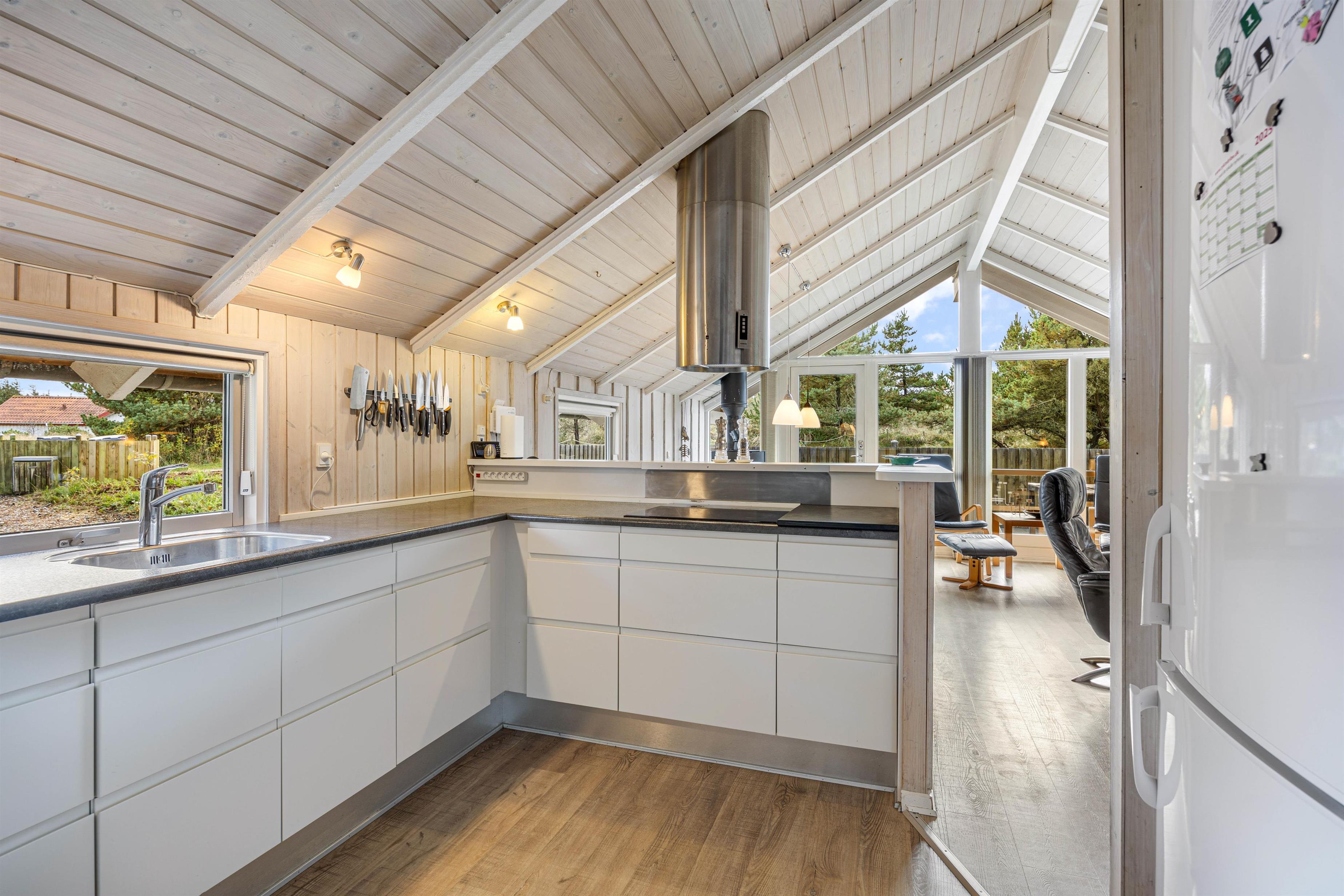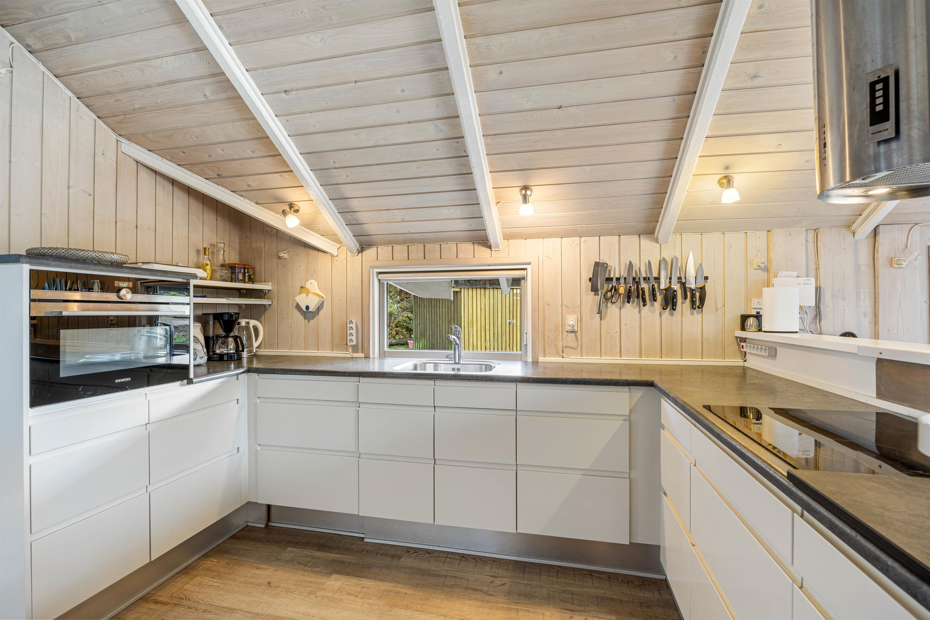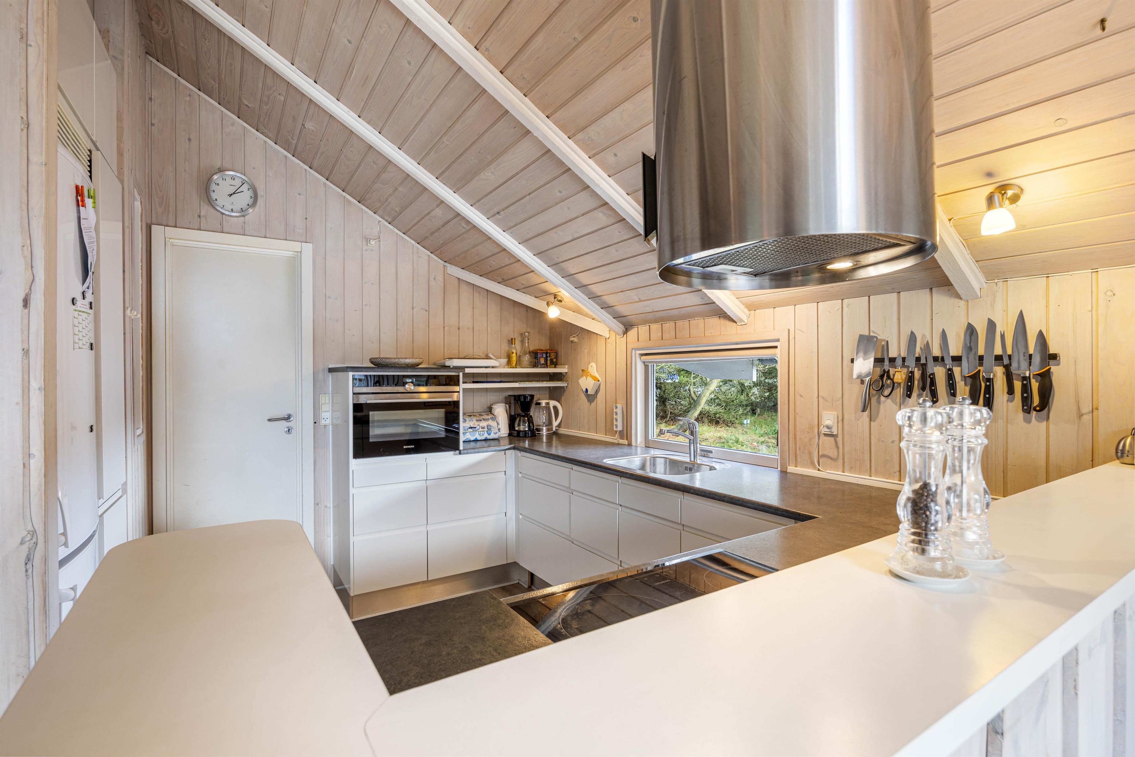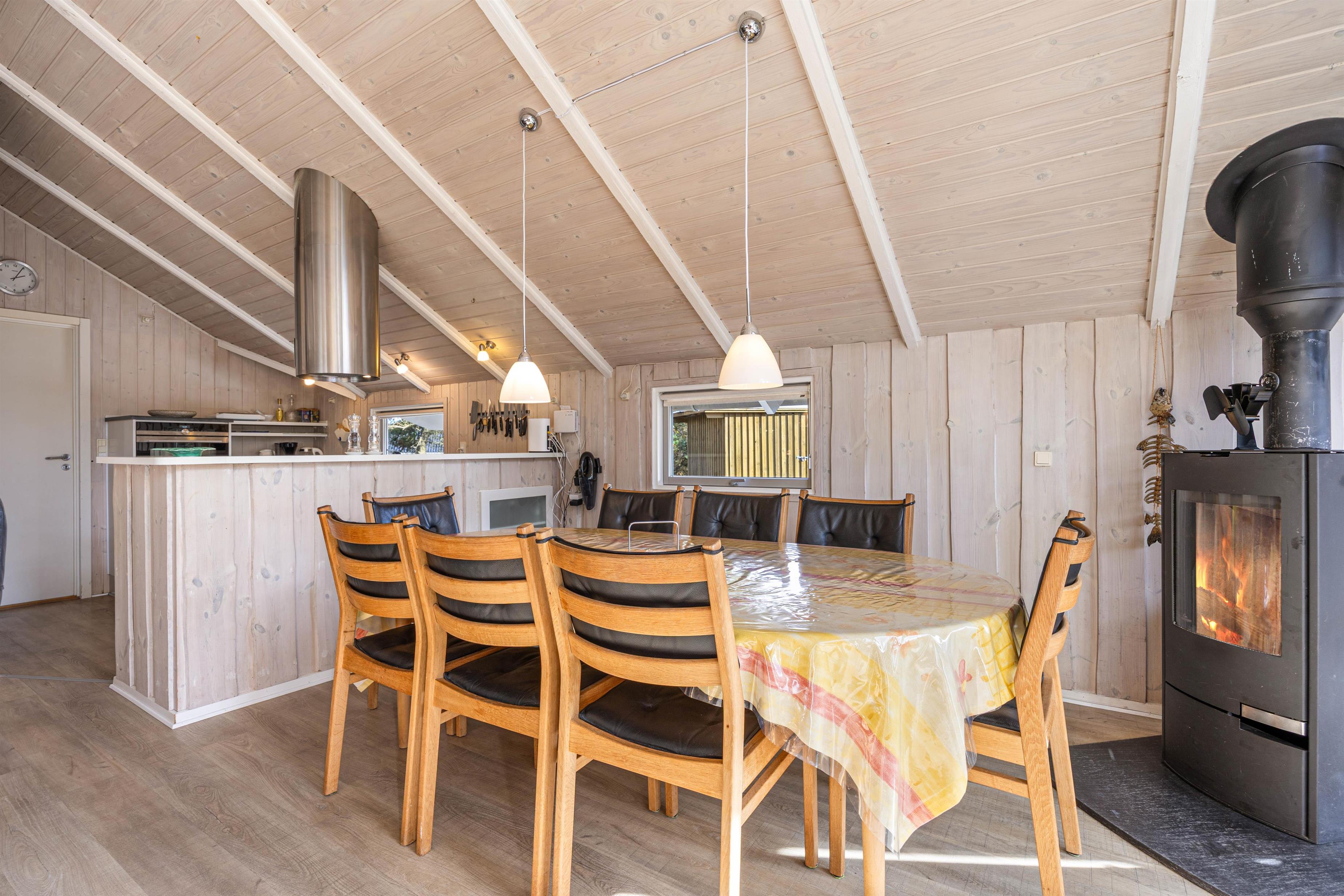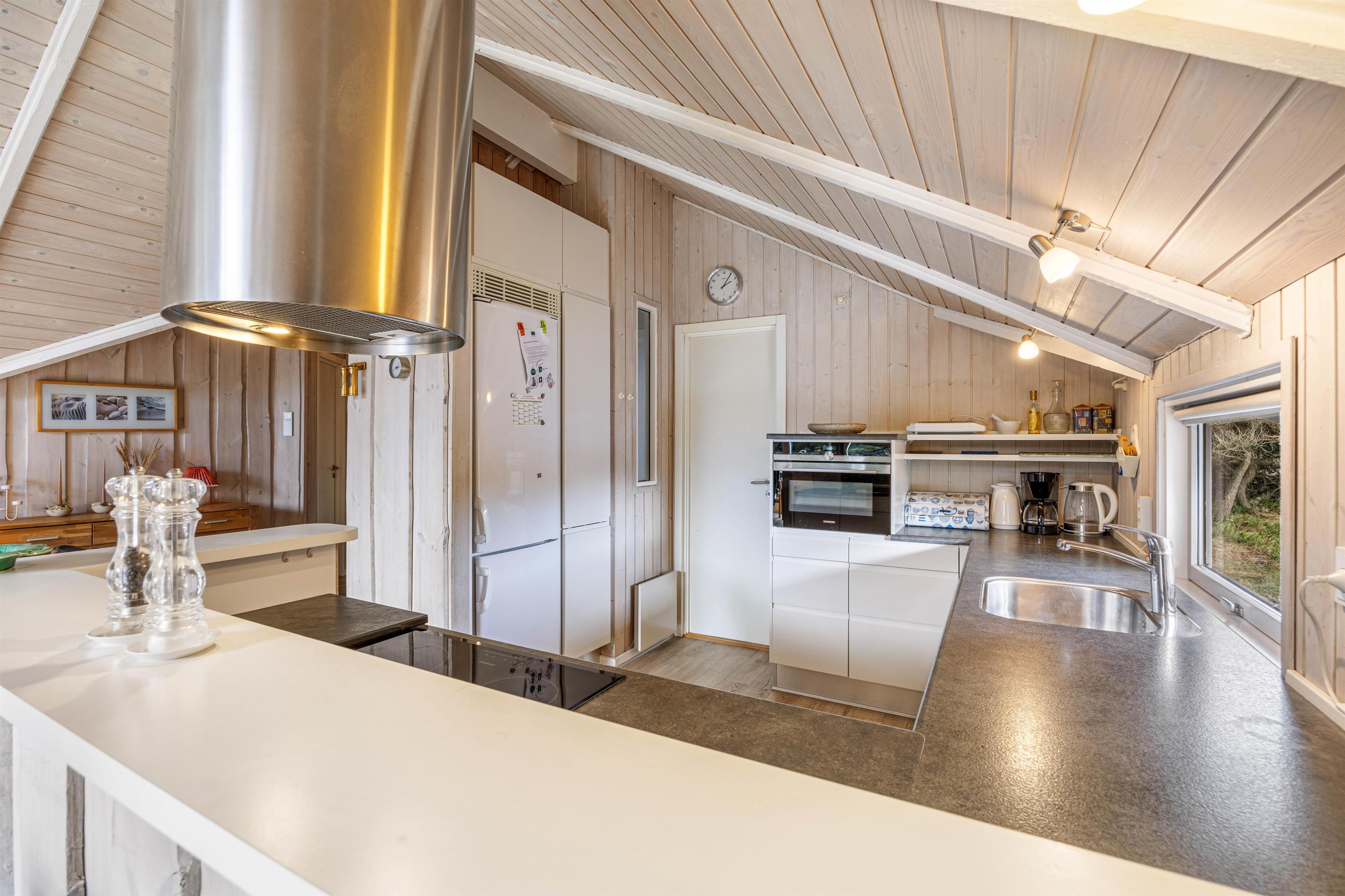 Tænd op i brændeovnen, og lad de knitrende flammer fylde rummet med hygge, mens aftensmaden bliver tilberedt. Samtidig kan I holde øje med de mindste feriegæster, som ser fjernsyn i sofaen, spiller rundt om spisebordet eller slapper af i den hyggelige alkove.