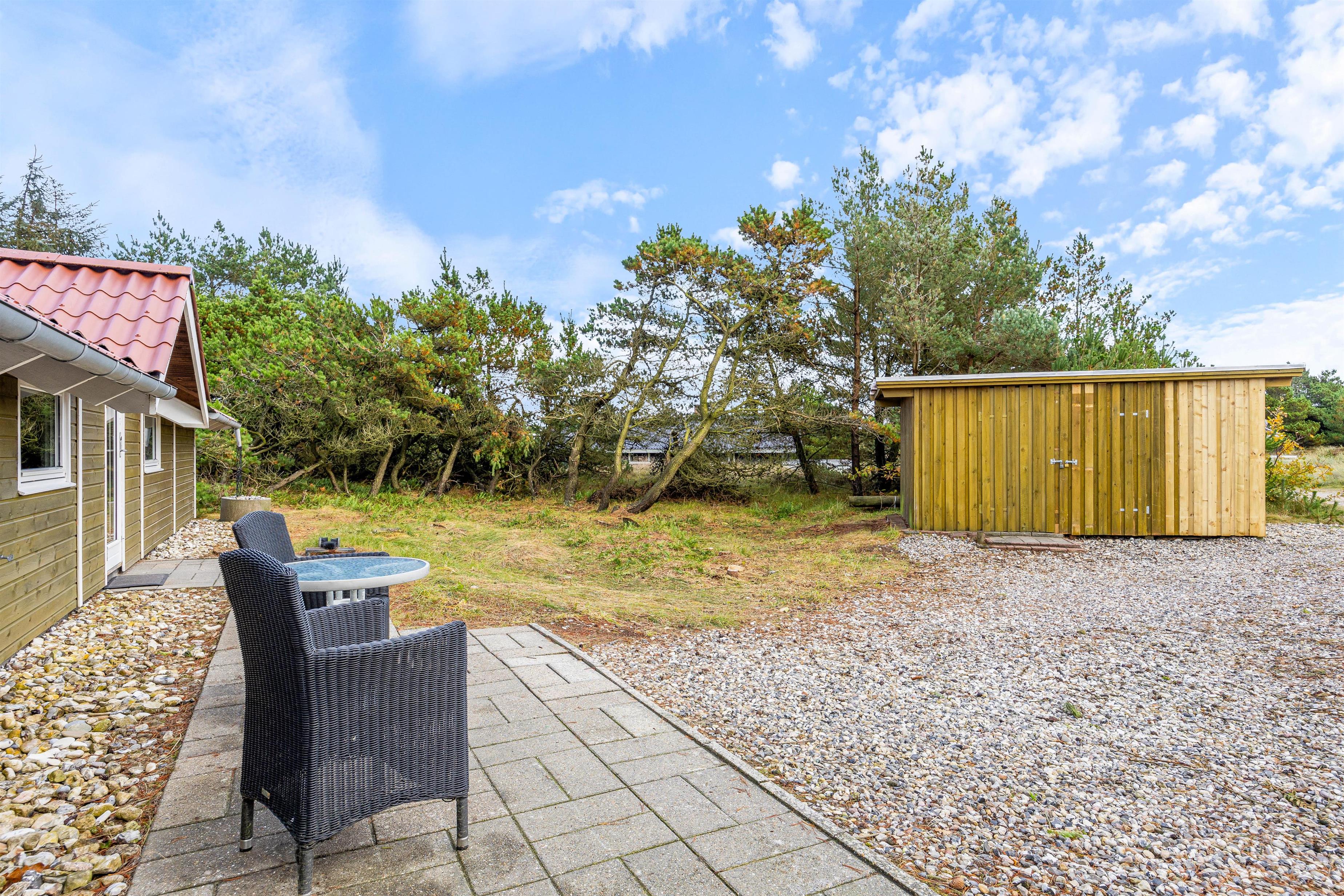På terrassen kan I helt ugeneret nyde dagene, eftersom det meste af grunden er omgivet af træer.