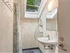 Køkkenalrum og stue er lagt sammen til ét stort rum, hvor samværet kan komme i centrum. Her står brændeovnen, som sørger for god varme året rundt, mens store vinduespartier og ovenlysvinduer giver et herligt lysindfald og udsigt til de naturskønne omgivelser.