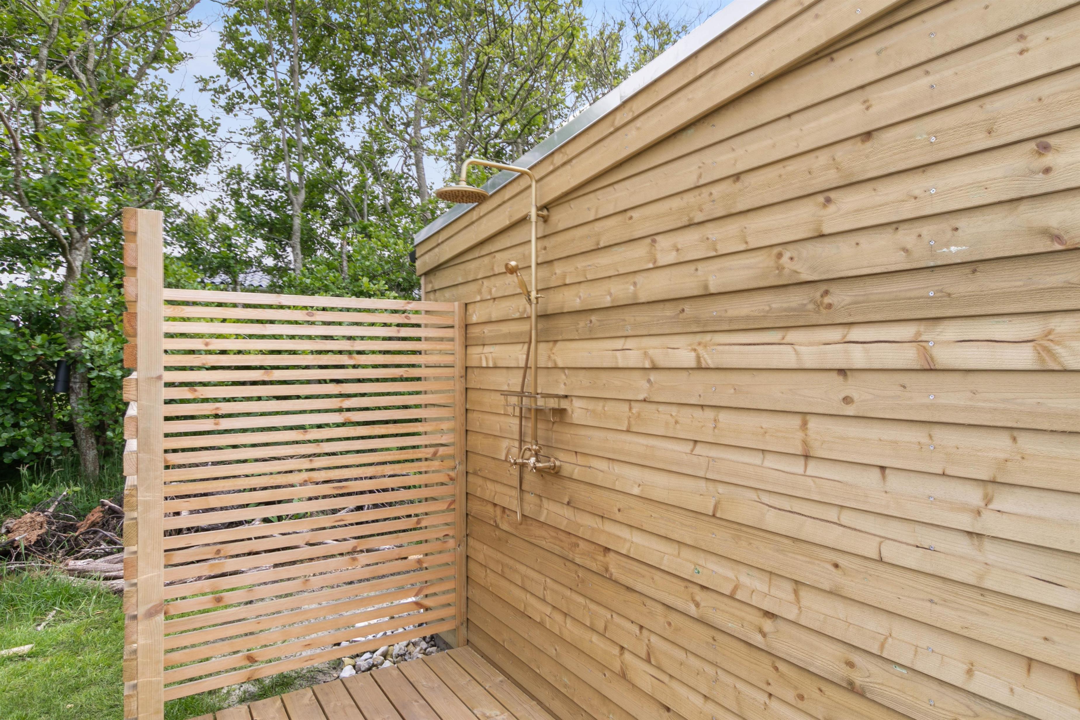 Efter en tur på stranden kan I skylle tæerne under sommerhusets udebruser, der kan benyttes fra april til november.