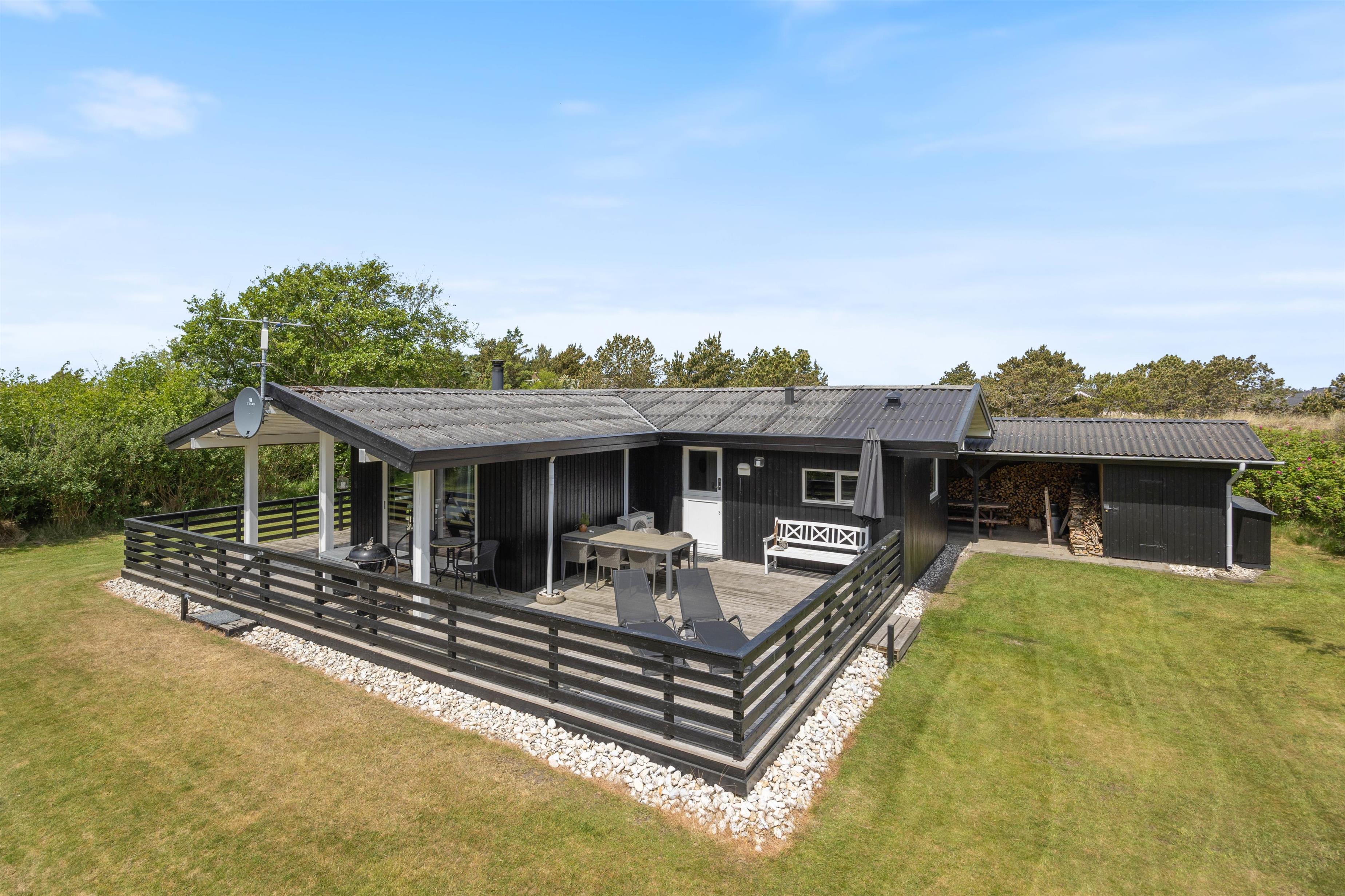Sommerhuset her på Bjerregårdsvej 80 er indbydende og godt indrettet. Her har I alt, hvad I skal bruge for at få en dejlig ferie tæt på Vesterhavet. Og beliggenheden på en stor, afskærmet plænegrund i et roligt område, vil I sikkert også nyde, da I ugeneret kan hygge og grille på terrassen. Imens kan børnene løbe frit rundt.