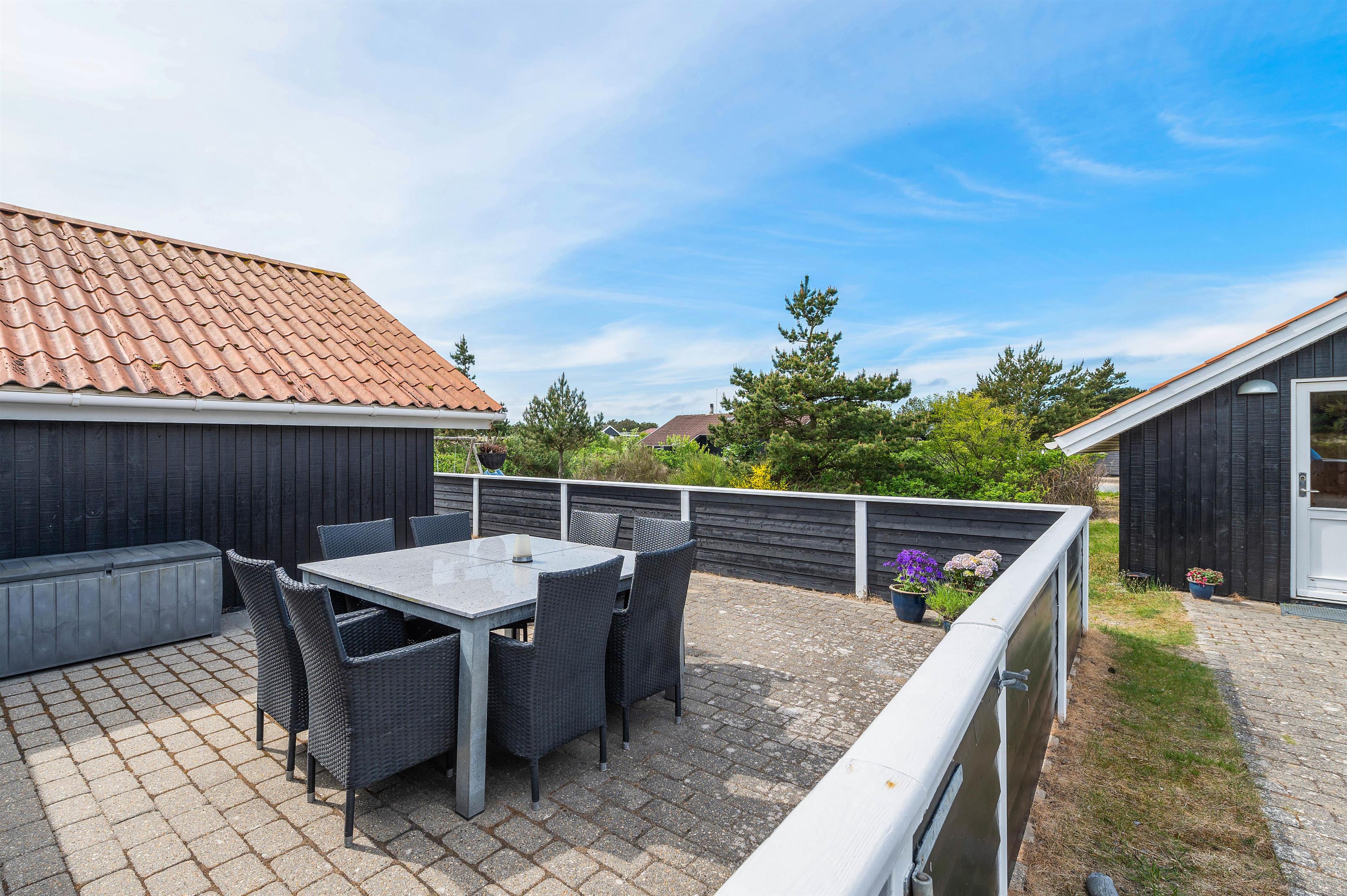 Fra opholdsrummet har I direkte udgang til den vestvendte terrasse, som også strækker sig til den syd- og nordlige side af sommerhuset. Her er der rig mulighed for at nyde dagen, hvor vejret er bedst. Terrassen er desuden lukket, så hunden kan gå frit rundt.