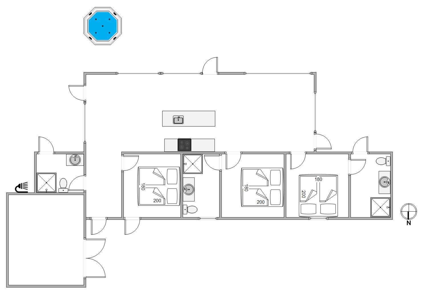 Udeområde med spa og bruser