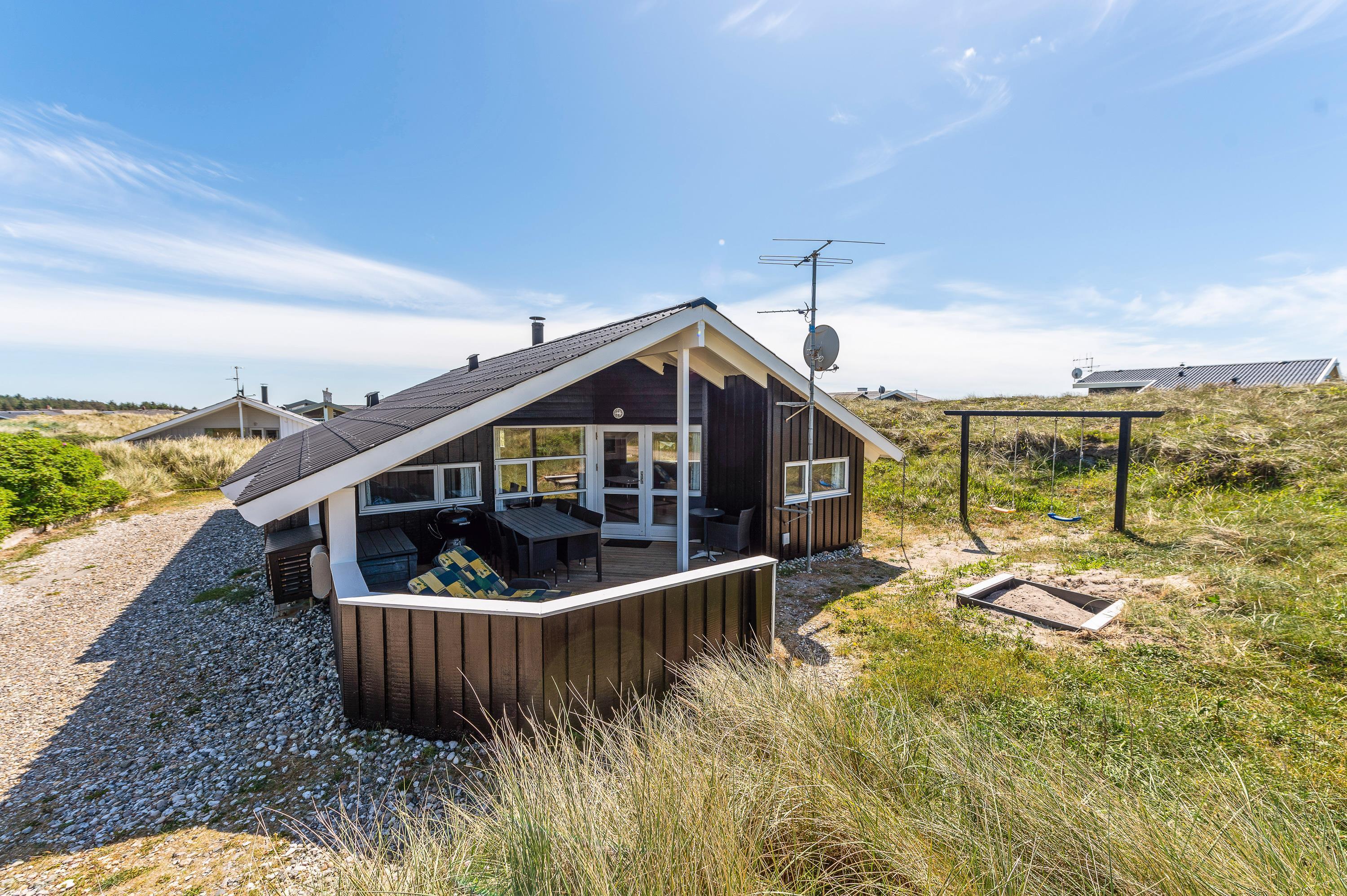 I dette hyggelige feriehus bor familien midt i den storslåede natur på Holmsland Klit kun et stenkast fra stranden med de fantastiske bademuligheder i Vesterhavet. De store fredede hedearealer giver helt sikkert lyst til en travetur med familiens hund. Den store overdækkede og afskærmede terrasse indbyder til afslapning i de gedigne havemøbler og liggestole. Her kan maden tilberedes på sommerhusets grill, mens de mindste leger med sandkasse og gynger.