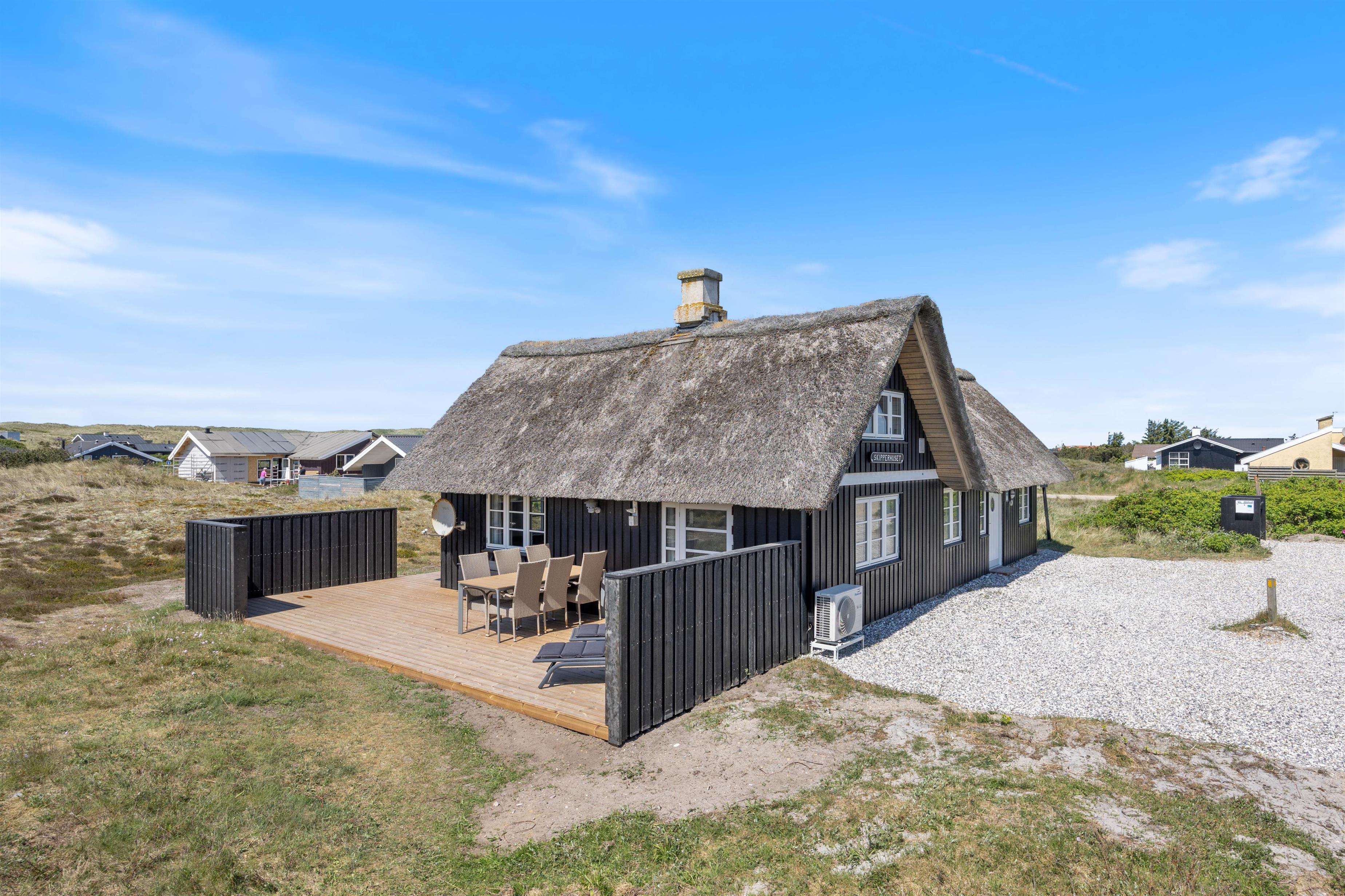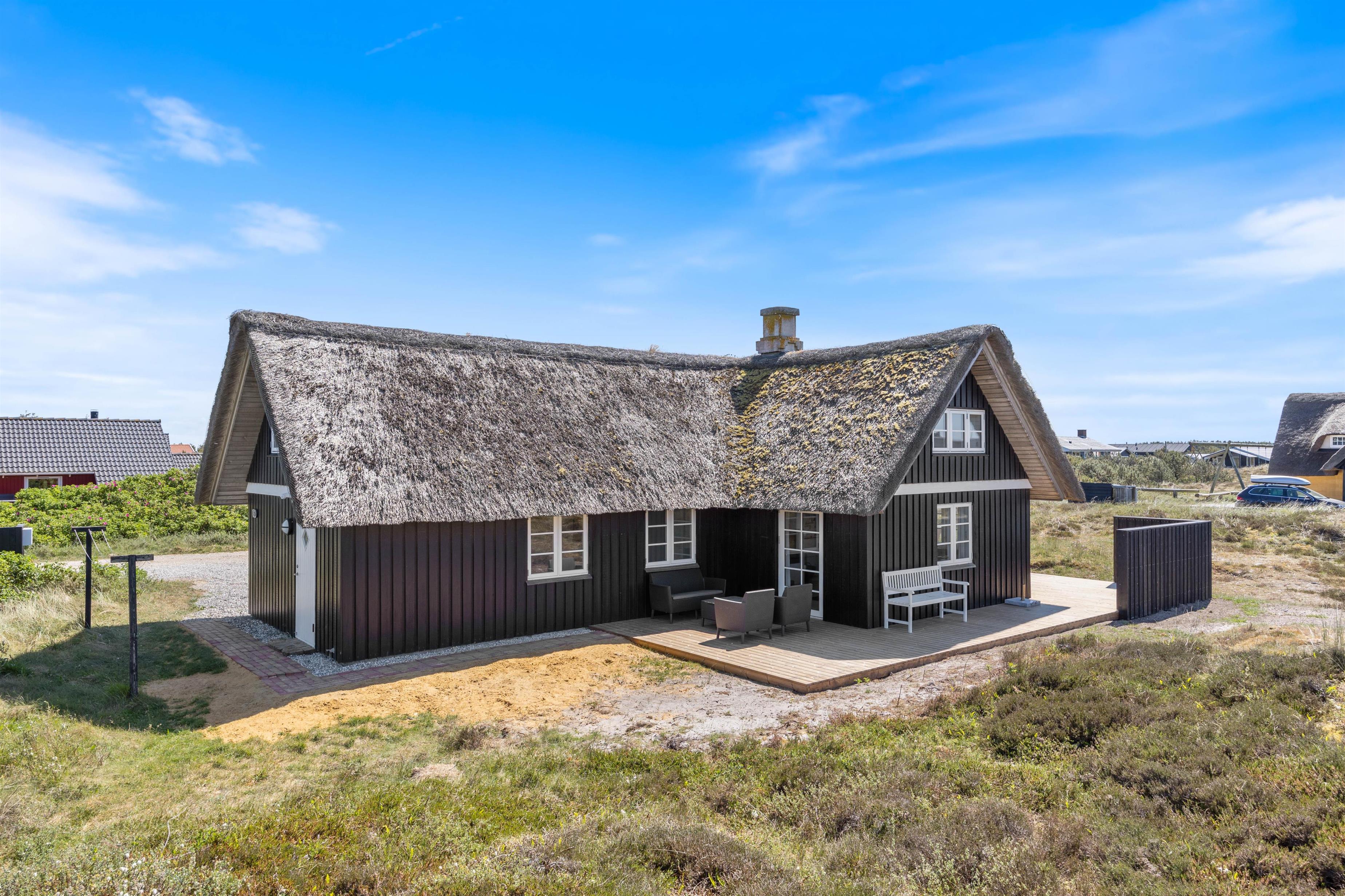 Det hyggelige, stråtækte sommerhus på Dortheasvej 67 er nænsomt renoveret i sin oprindelige stil. Feriehuset er lyst og venligt indrettet med en dejlig sommerhusstemning. Udendørs finder du en fin, afskærmet terrasse mod syd, hvor I kan nyde sommersolen og den friske vesterhavsluft. Hunden er velkommen med på ferien. Ideelt til den lille familie den lille familie eller to par venner, som ønsker at holde ferie sammen.