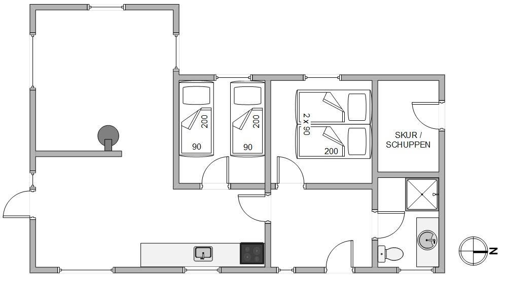 De to soveværelser indeholder henholdsvis en dobbeltseng og to enkeltsenge, hvor I kan hvile godt ud. Læg mærke til, at vesterhavsluften gør noget godt for nattesøvnen. Det moderne badeværelse med gulvvarme indeholder vaskemaskine og tørretumbler, så I kan friske håndklæderne op i løbet af ferien.