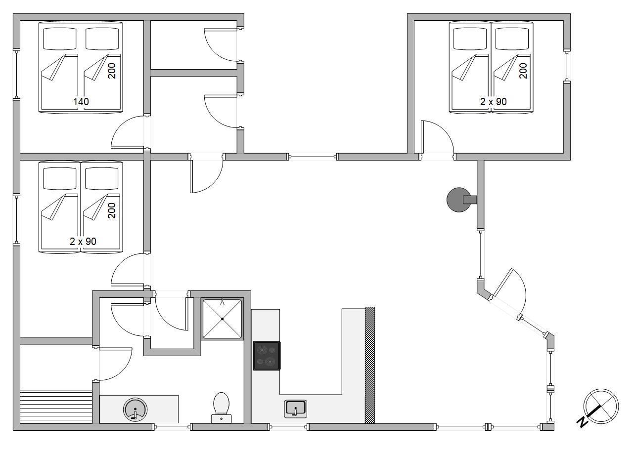 Sommerhuset, der er renoveret i 2018, har 3 fine soveværelser, som alle er indrettet med komfortable dobbeltsenge. Badeværelset er udstyret med gulvvarme, og her er også rig mulighed for afslapning og velvære efter en lang gåtur ved vandet – Sommerhuset har nemlig en sauna.