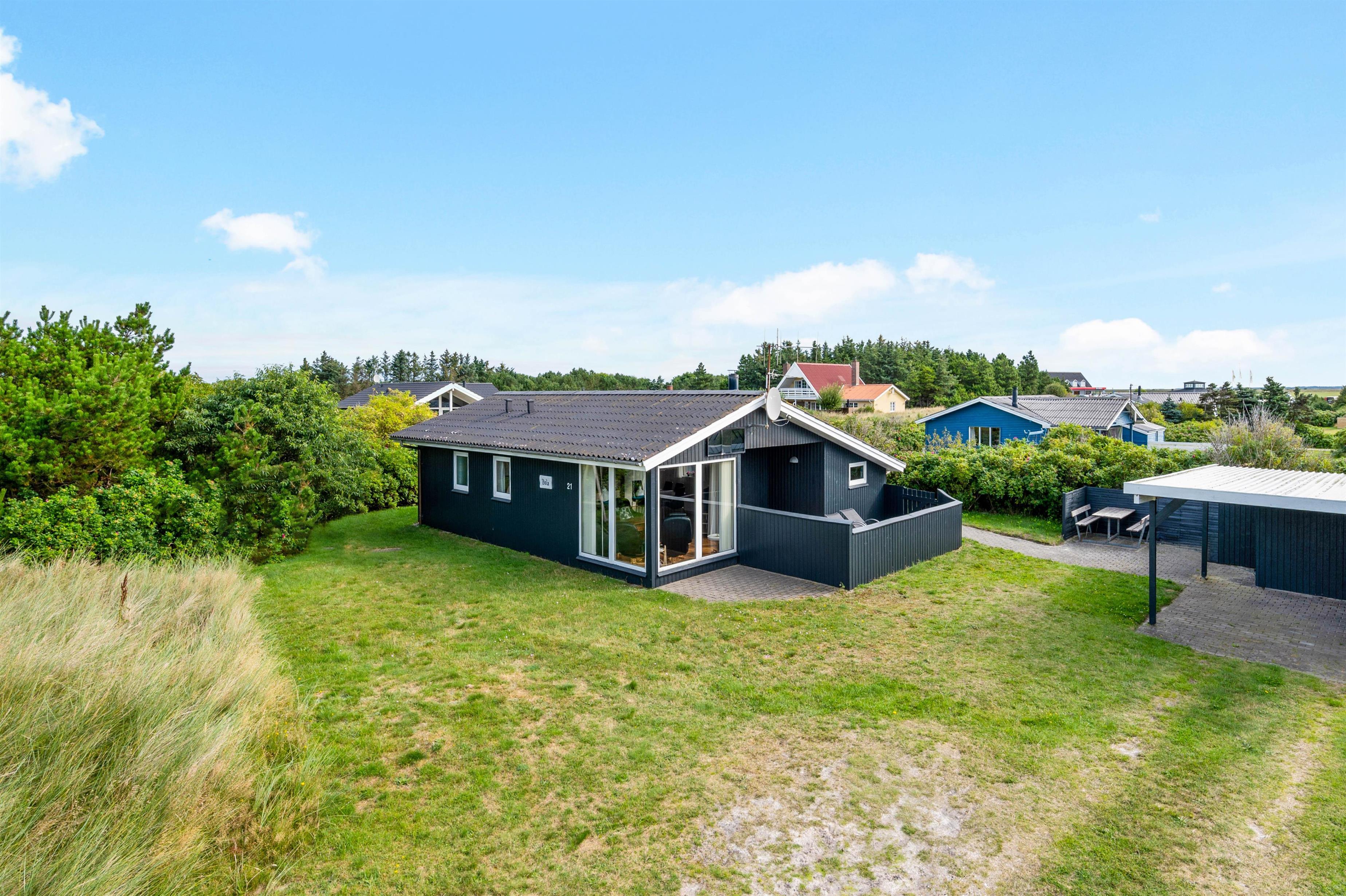 På Bjerregårdsvej 21 står dette dejlige sommerhus klar til jeres næste familieferie. Sommerhuset er beliggende på Holmsland Klit i Bjerregård tæt på både købmand og legeplads samt i gåafstand til stranden. Her er plads til 6 personer og 2 hunde, som kan nyde ferien med afslapning på de skønne terrasser.