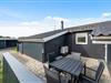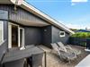 Mod syd og vest har feriehuset en lukket terrasse og også en lille åben terrasse mod vest. Morgenmaden kan nydes på den afskærmede, østvendte terrasse. Ved terrasserne er der komfortable havemøbler, liggestole samt en grill.