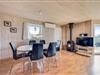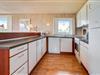 Køkkenet ligger i åben forbindelse med stuen og er praktisk udstyret med opvaskemaskine og mikrobølgeovn. Stuen er pænt møbleret med en komfortabel sofa og en lille hyggekrog i karnappen mod syd. Her er gratis trådløst internet samt varmetilskud i form af solvarme.